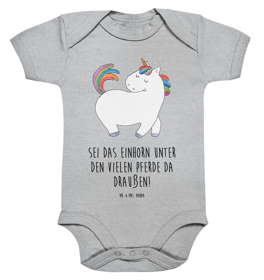 Organic Baby Body Einhorn stolzierend - 1. - 3. Monat - mit Spruch - Heather Grey