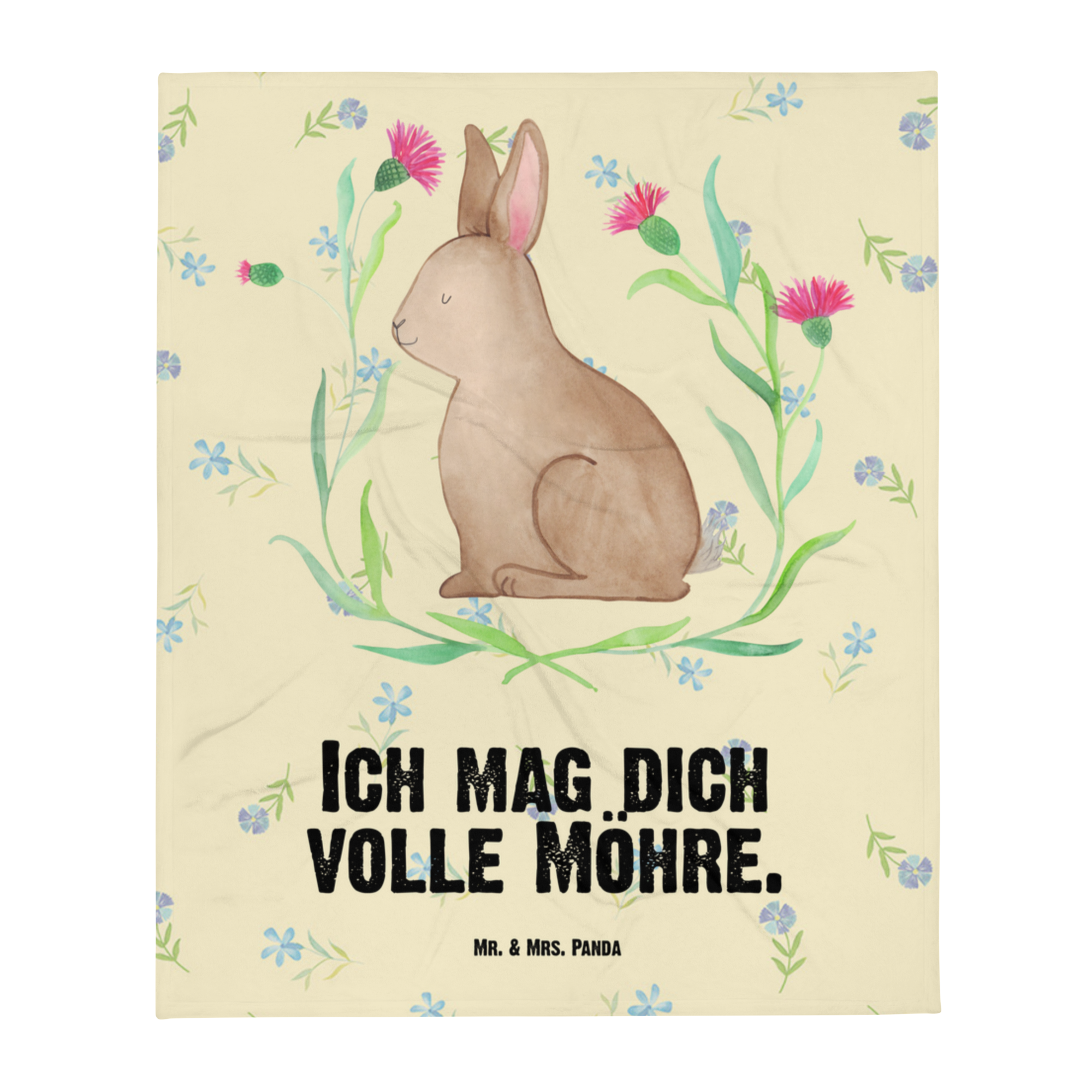 Babydecke Hase sitzend - mit Spruch