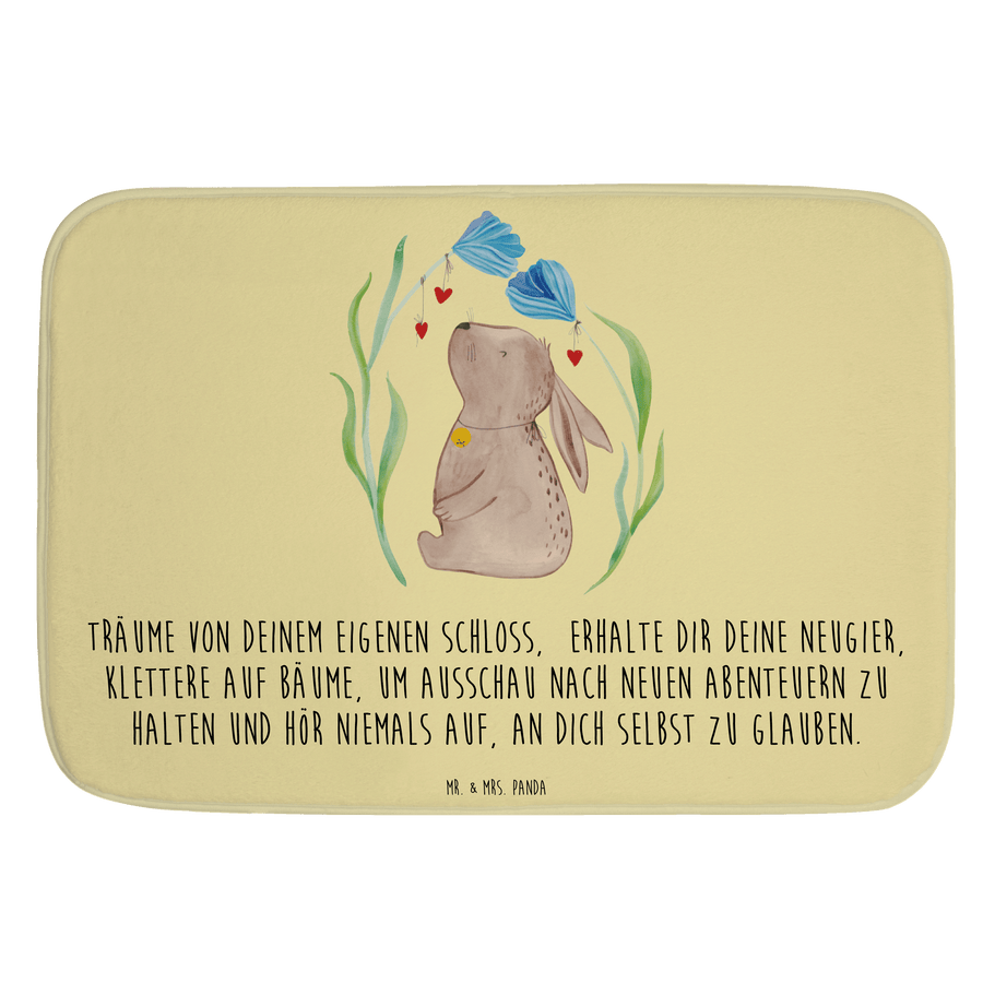 Badvorleger Hase Blume - mit Spruch - Gelb Pastell