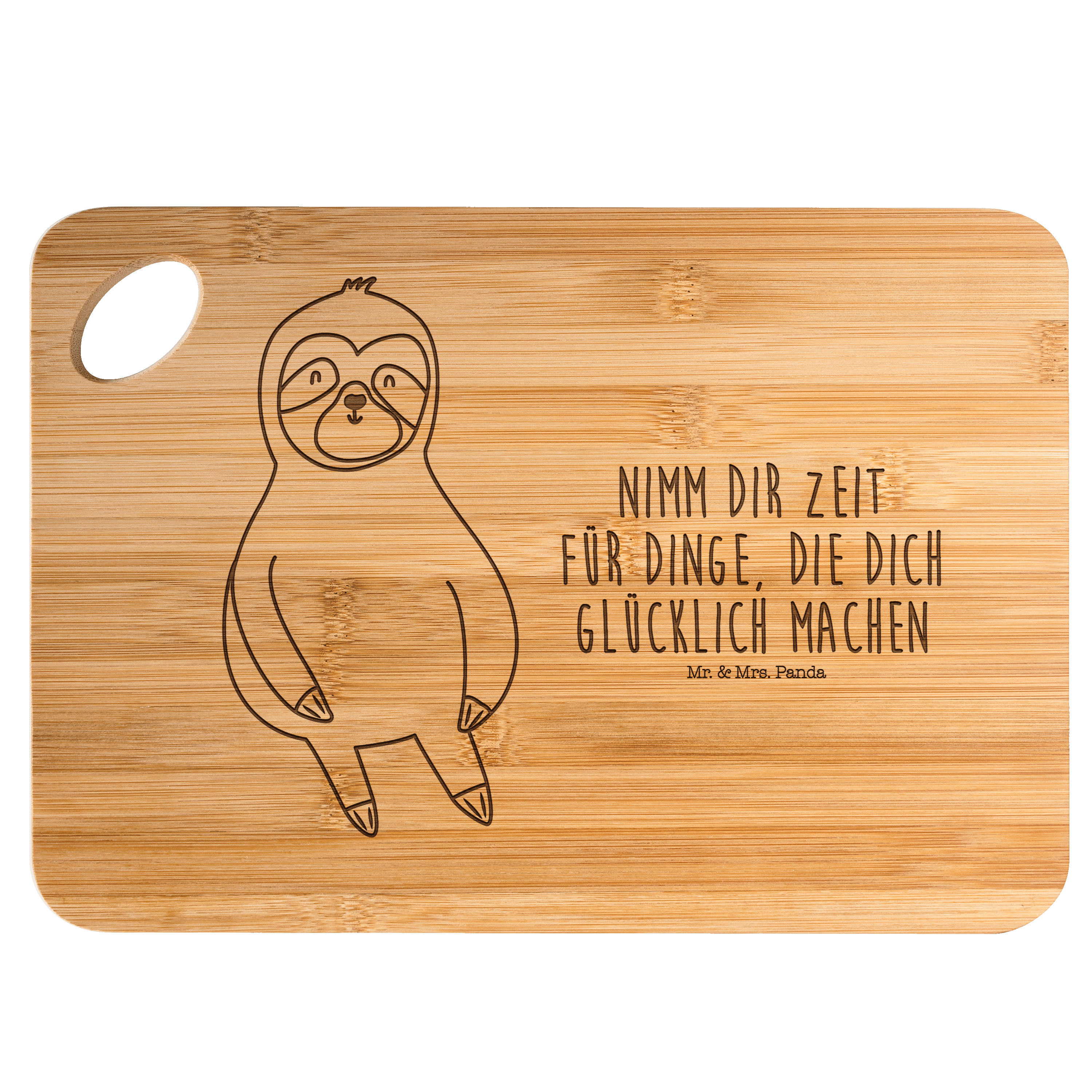 Bambus - Schneidebrett Faultier Zufrieden - mit Spruch