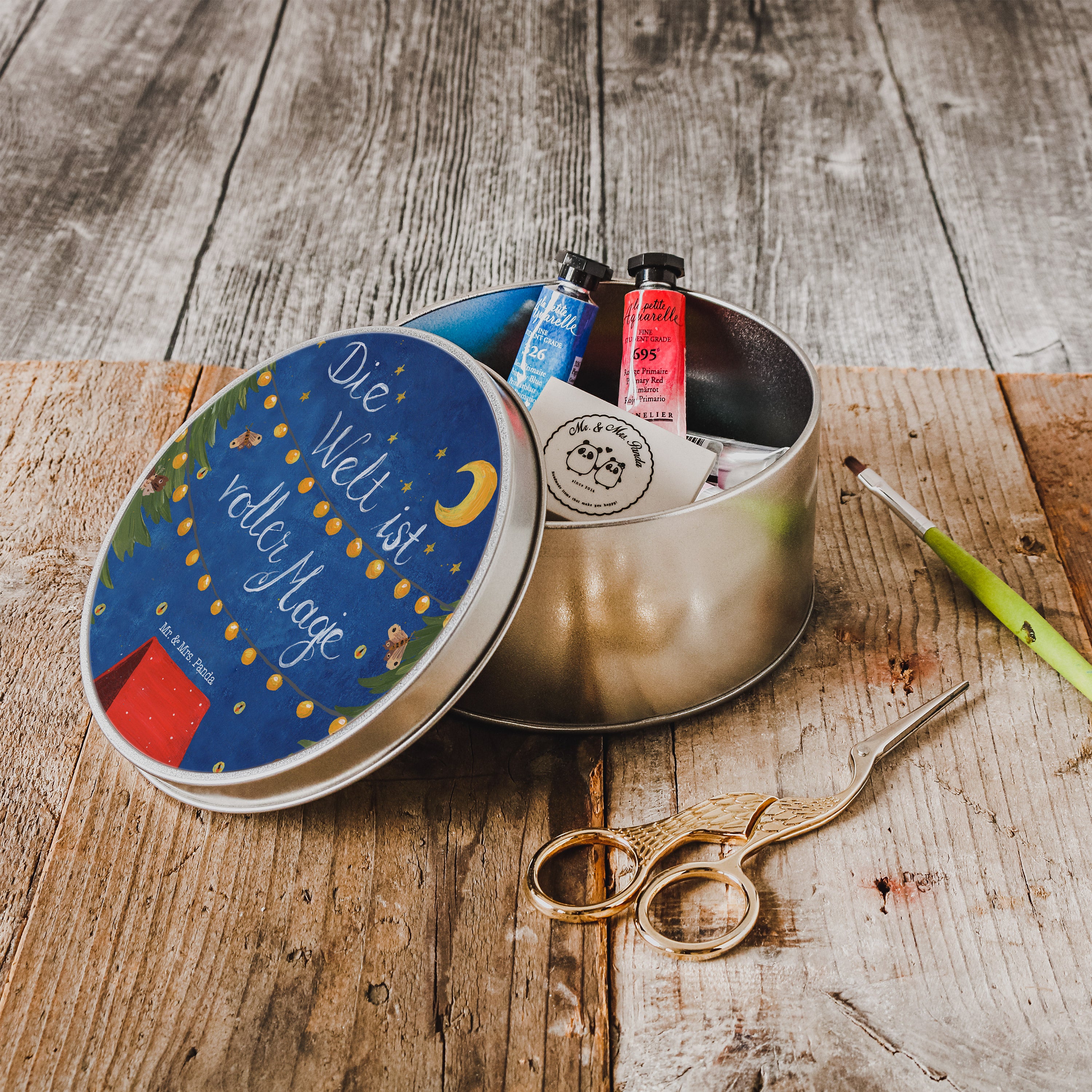 Blechdose rund Die Welt ist voller Magie Metalldose, Keksdose, Dose, Vorratsdose, Geschenkbox, Blumen Deko, Frühlings Deko, Sommer Deko, Dekoration, positive Botschaft, Naturliebhaber, Outdoor, Natur, Abenteuer