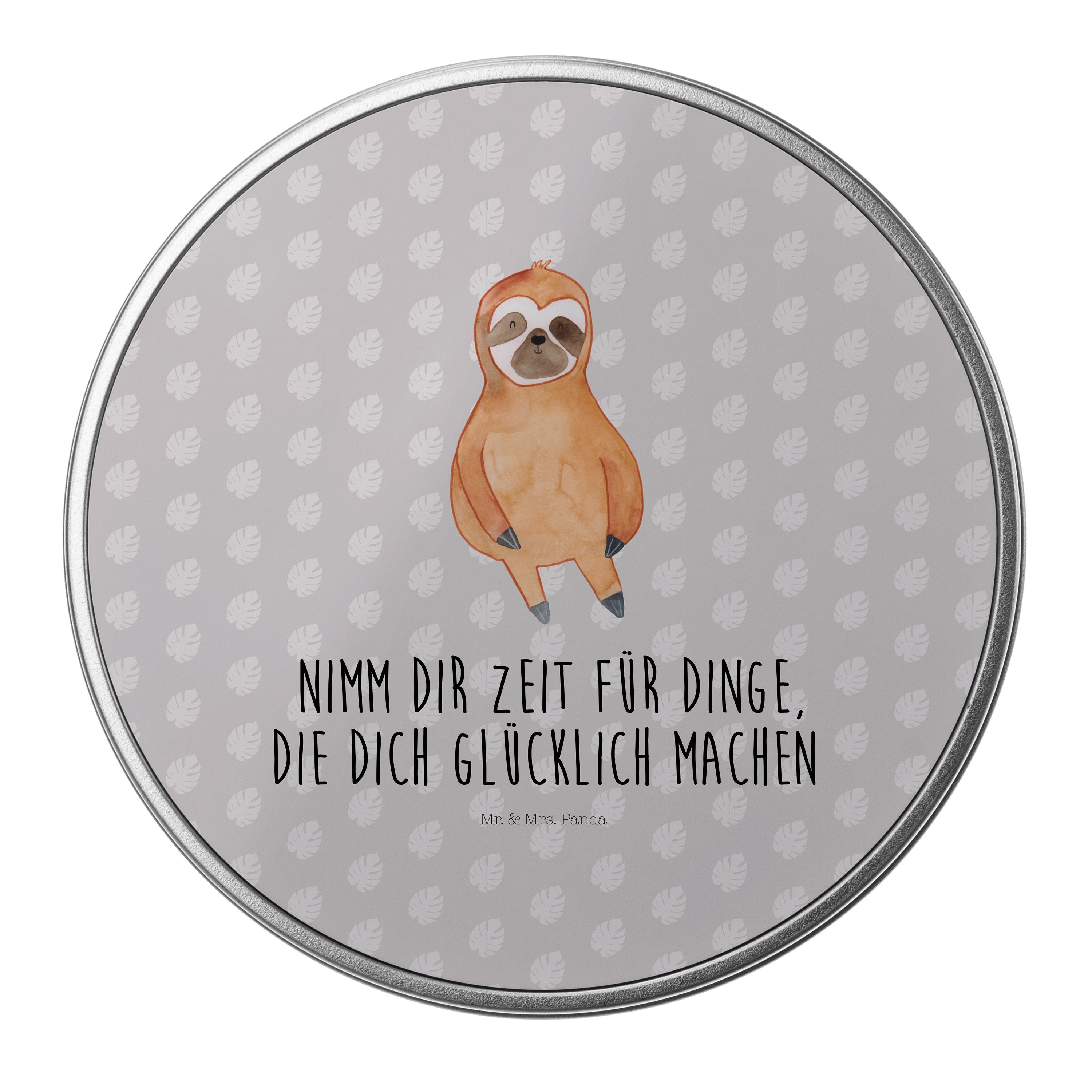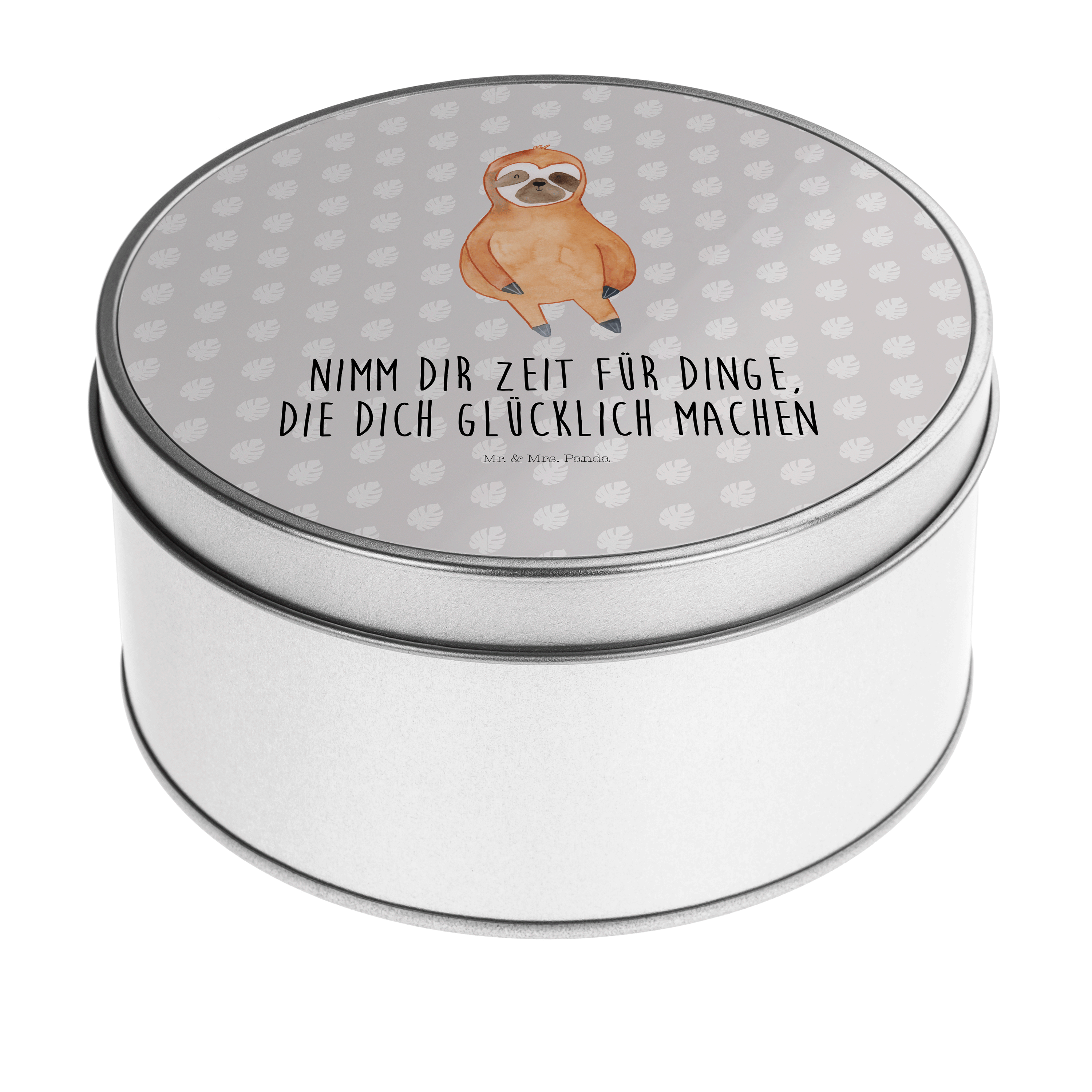 Blechdose rund Faultier Zufrieden Metalldose, Keksdose, Dose, Vorratsdose, Geschenkbox, Faultier, Faultier Geschenk, Faultier Deko, Faultiere, faul, Lieblingstier, Pause, relaxen, Glück, glücklich, zufrieden, happy, Zufriedenheit, Gelassenheit, Ruhe, Frieden