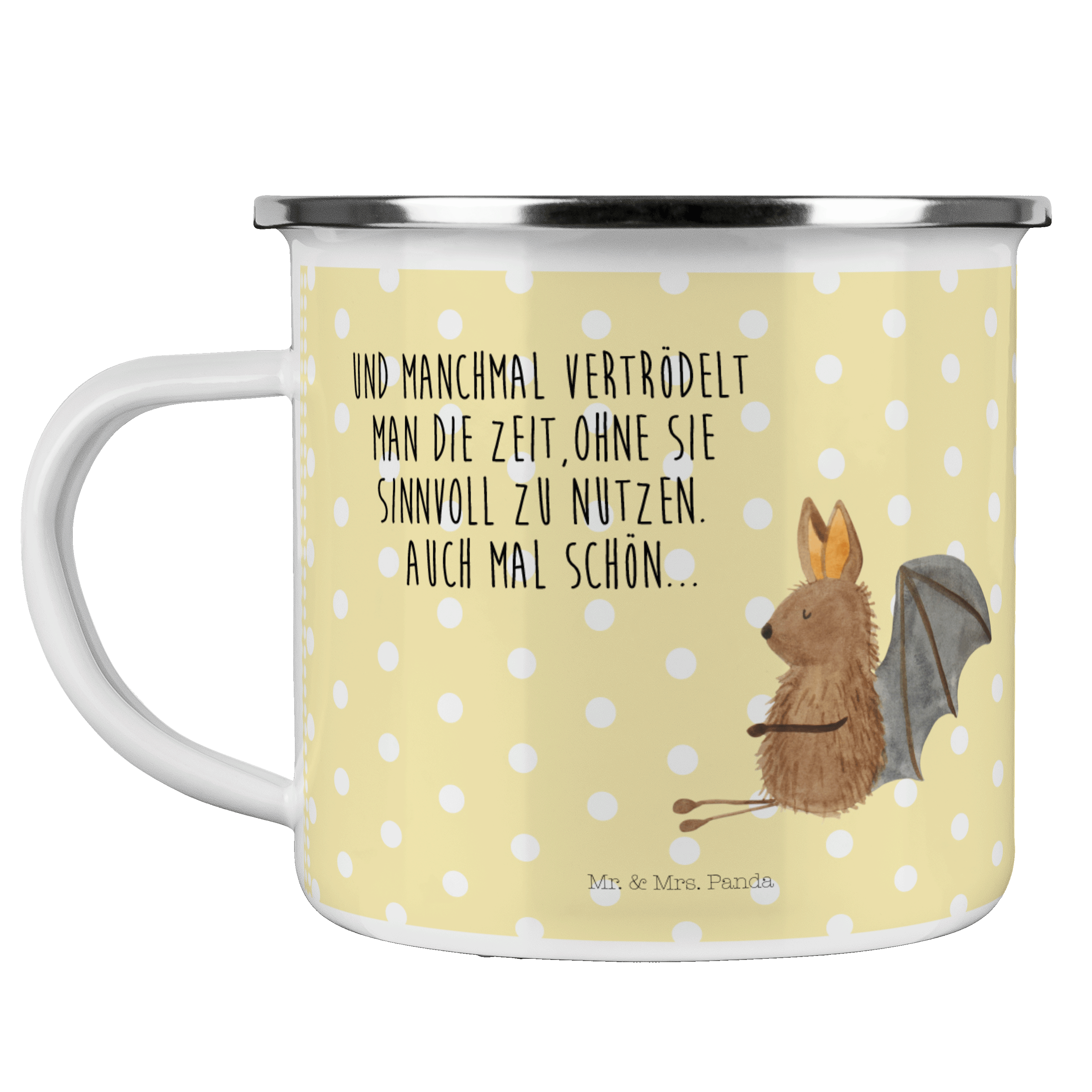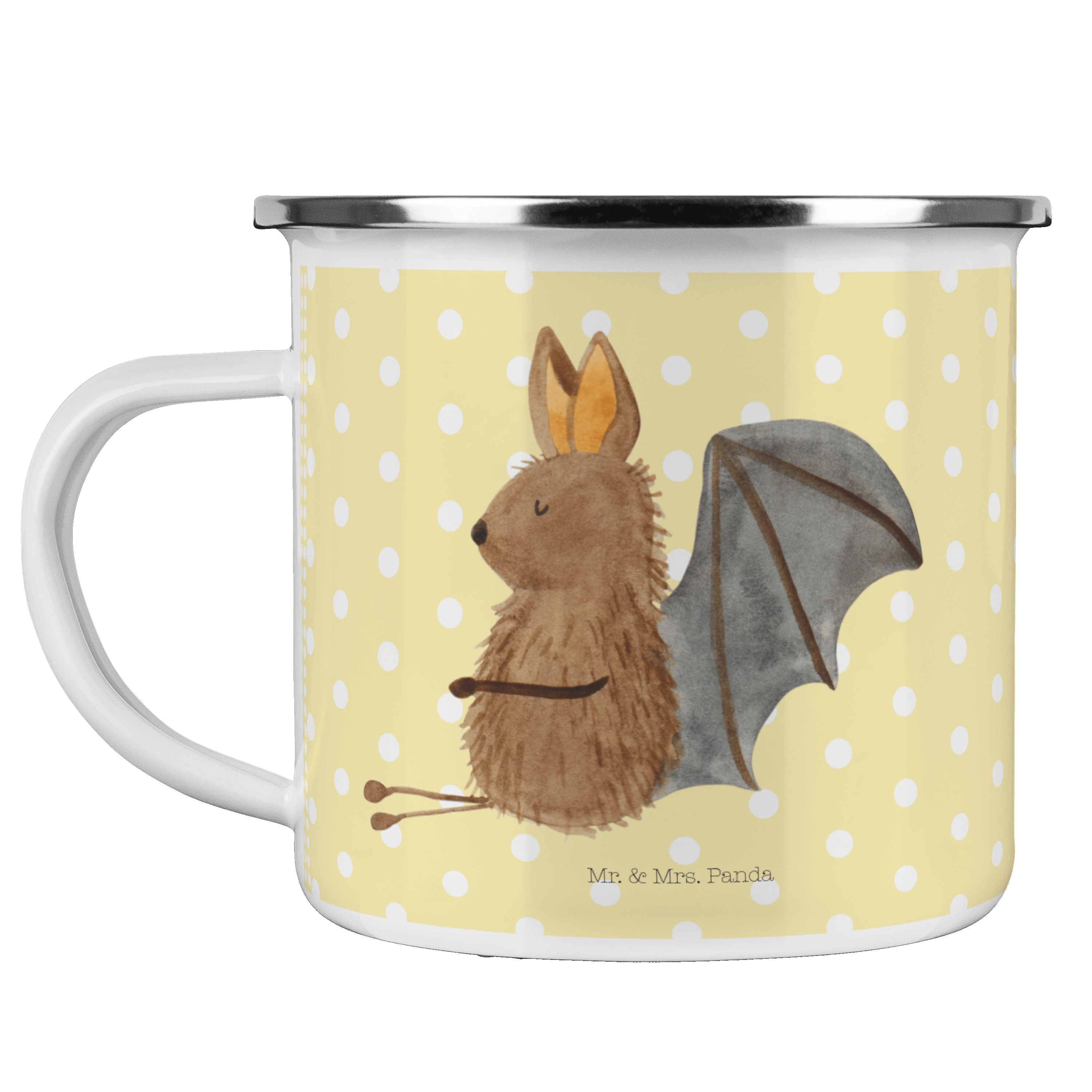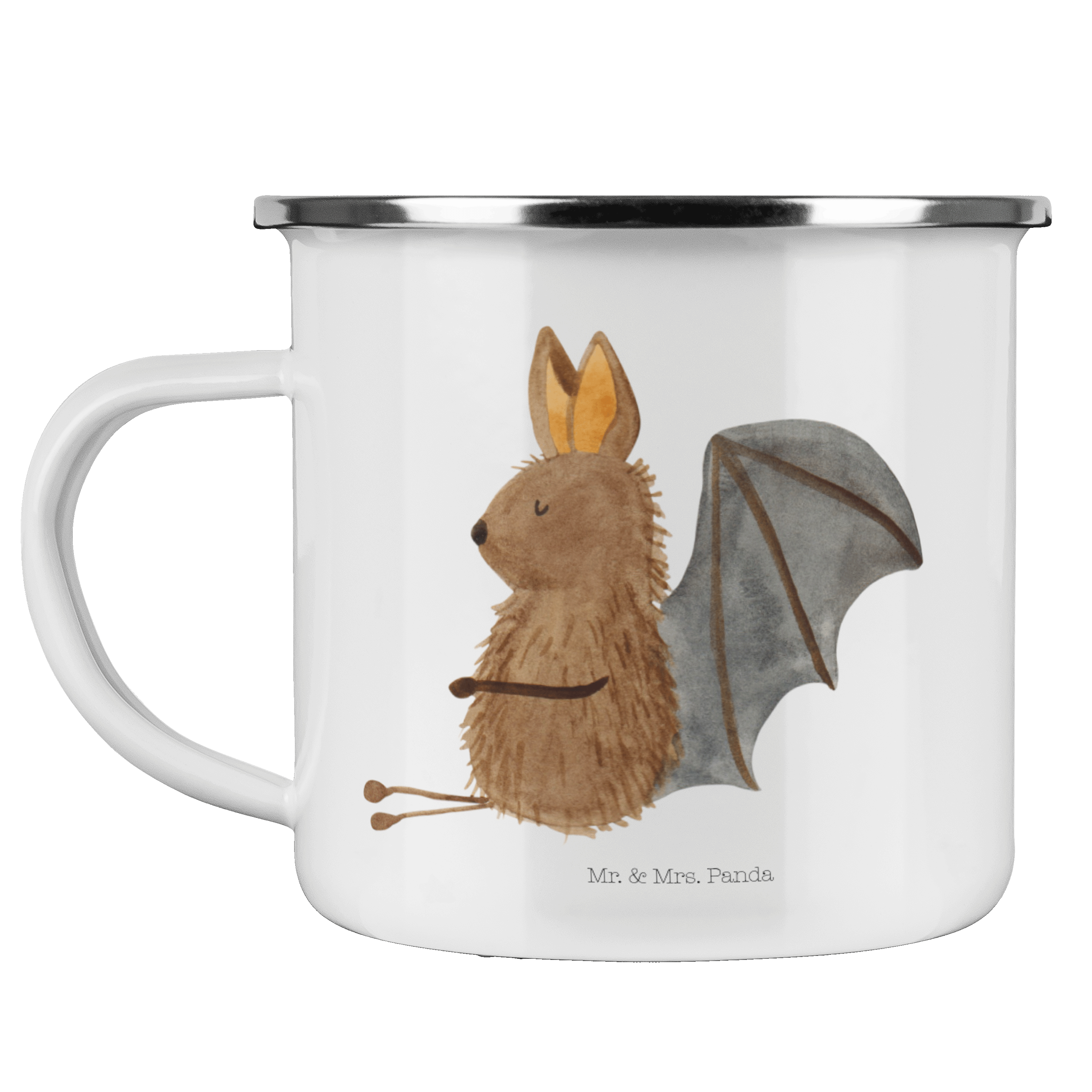 Camping Emaille Tasse Fledermaus sitzend - mit Spruch - Weiß