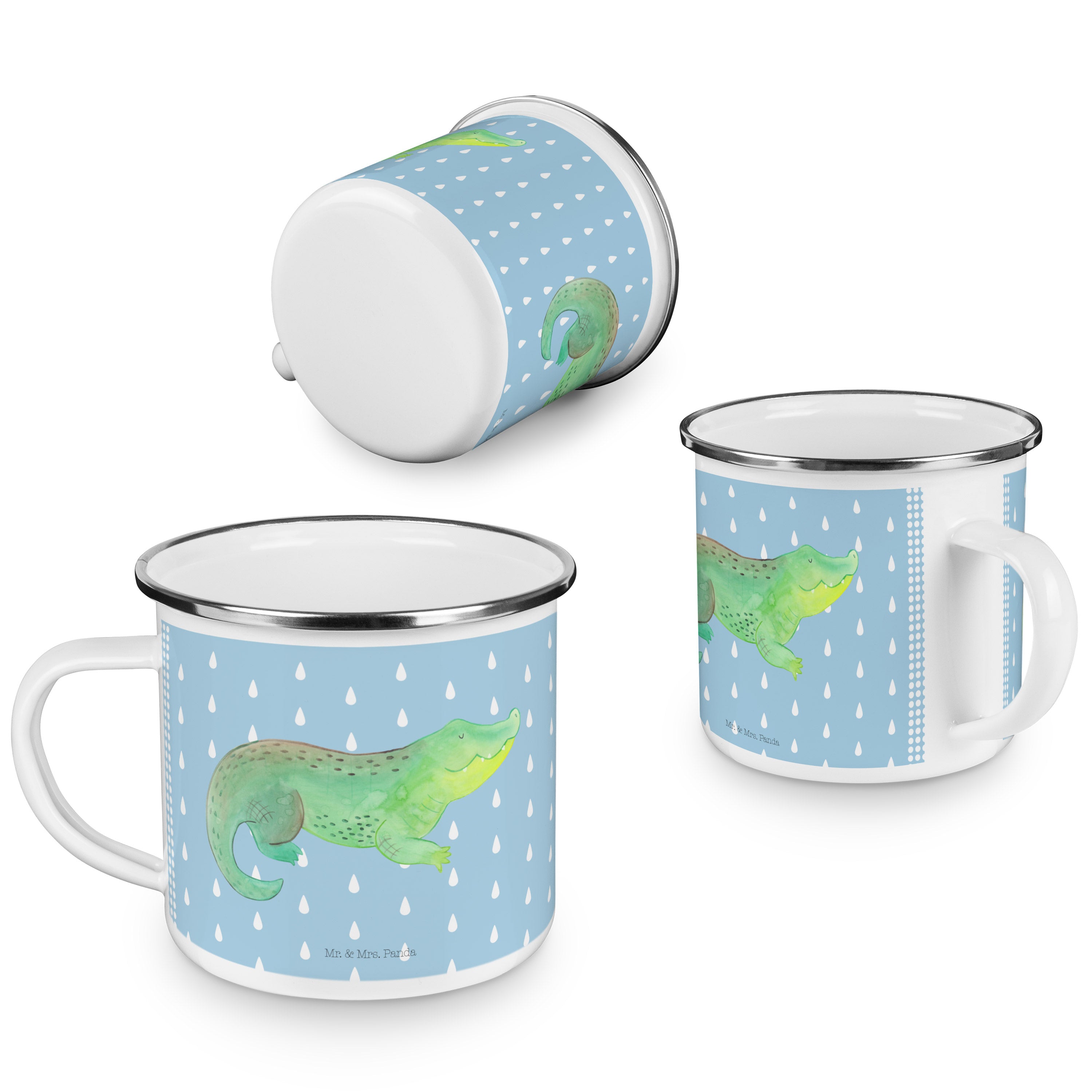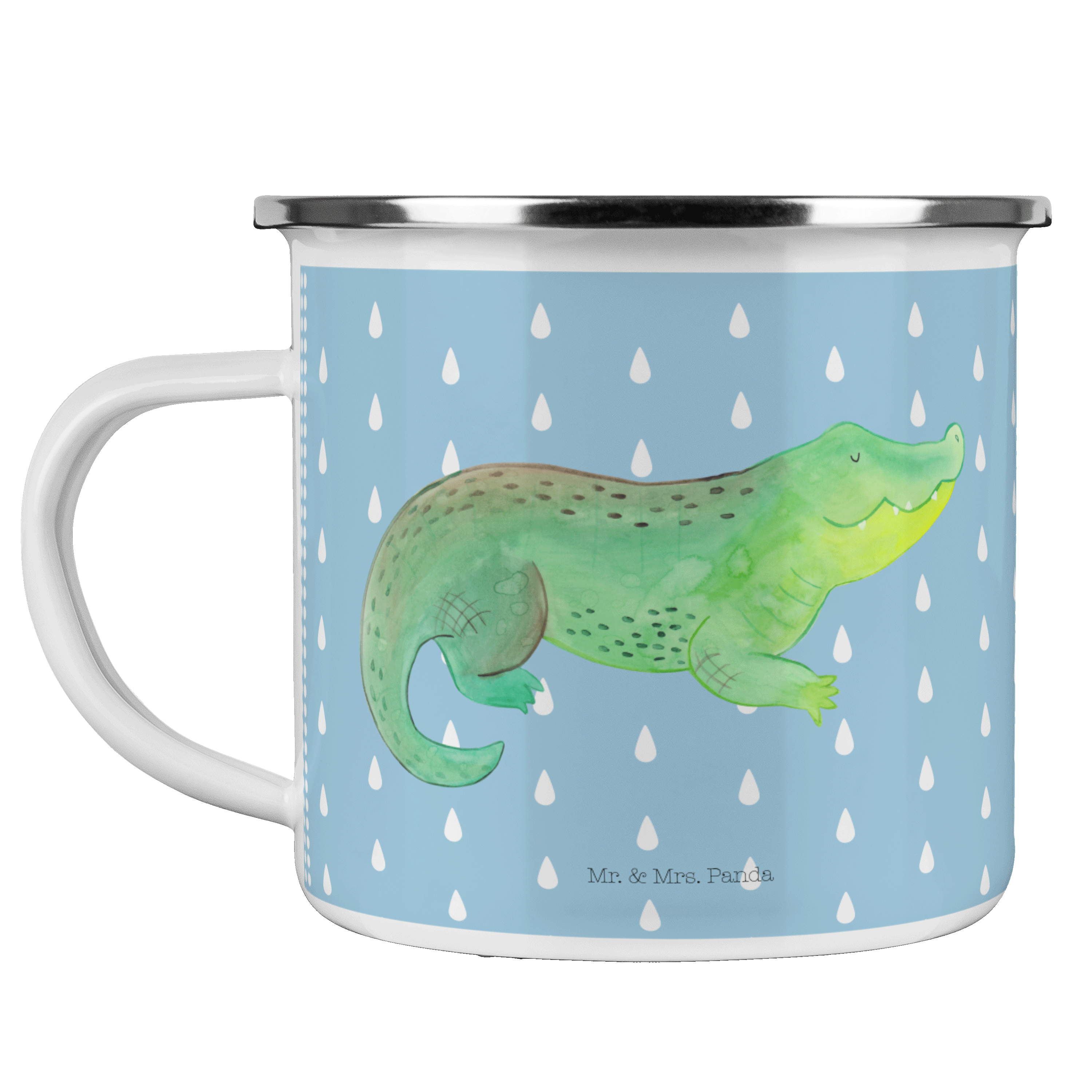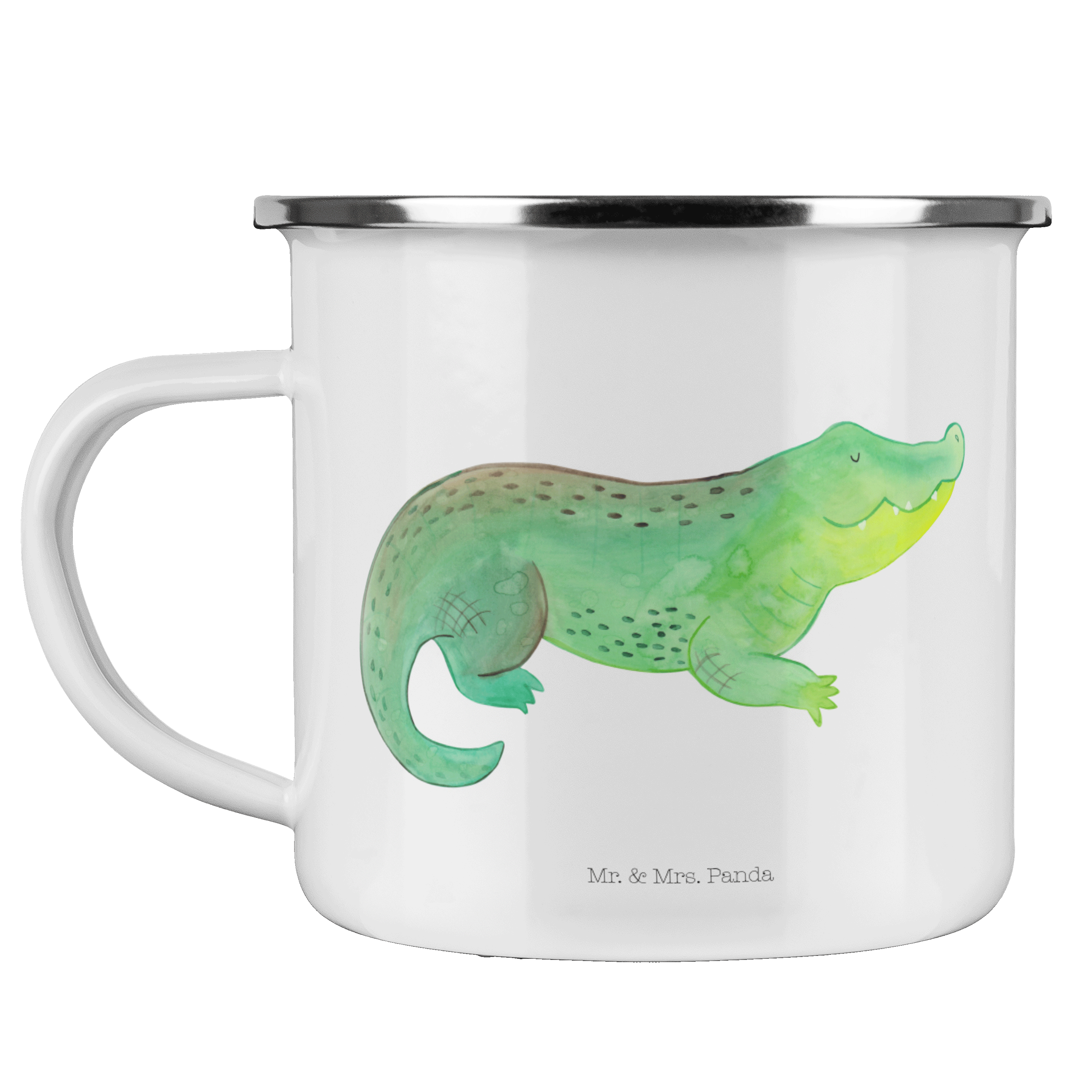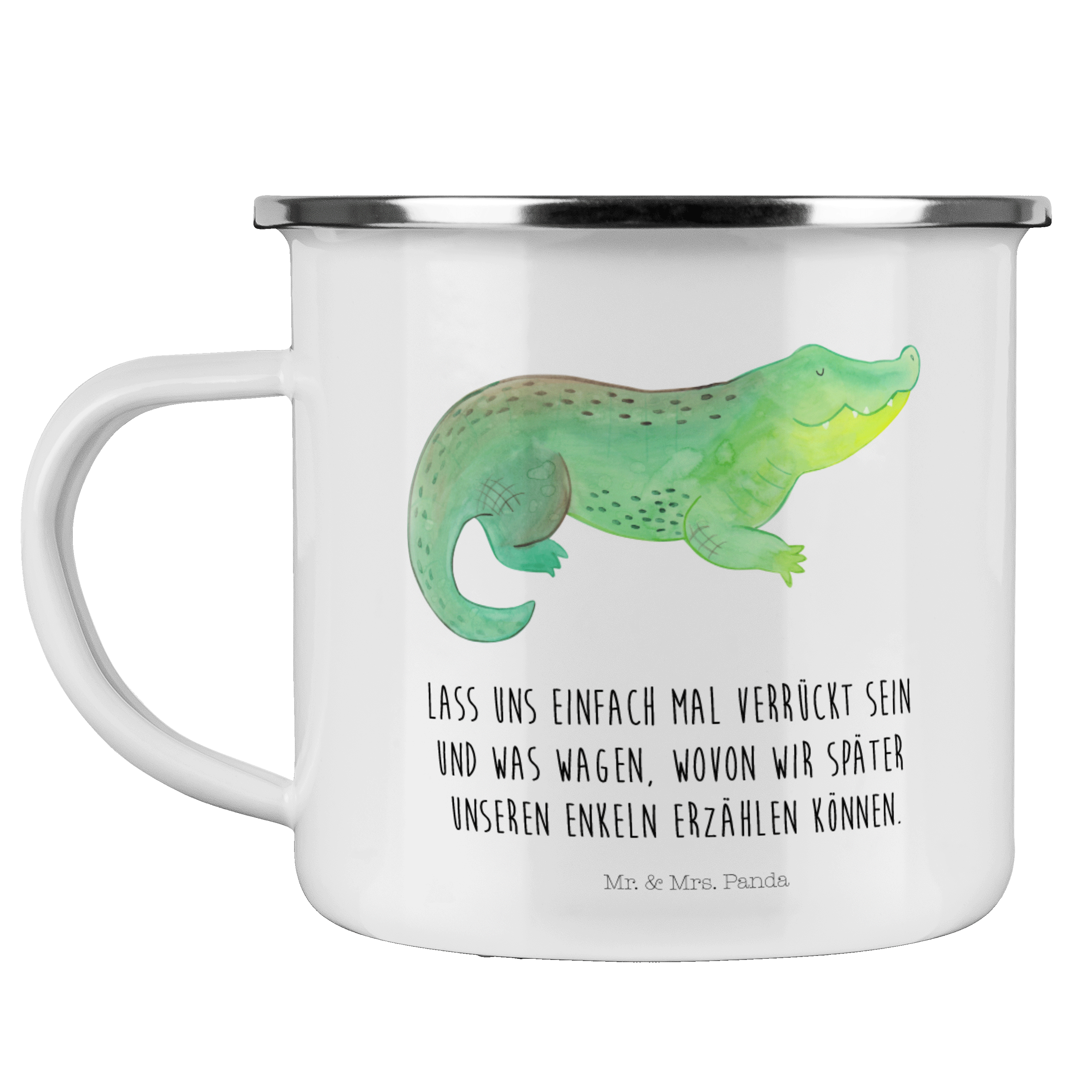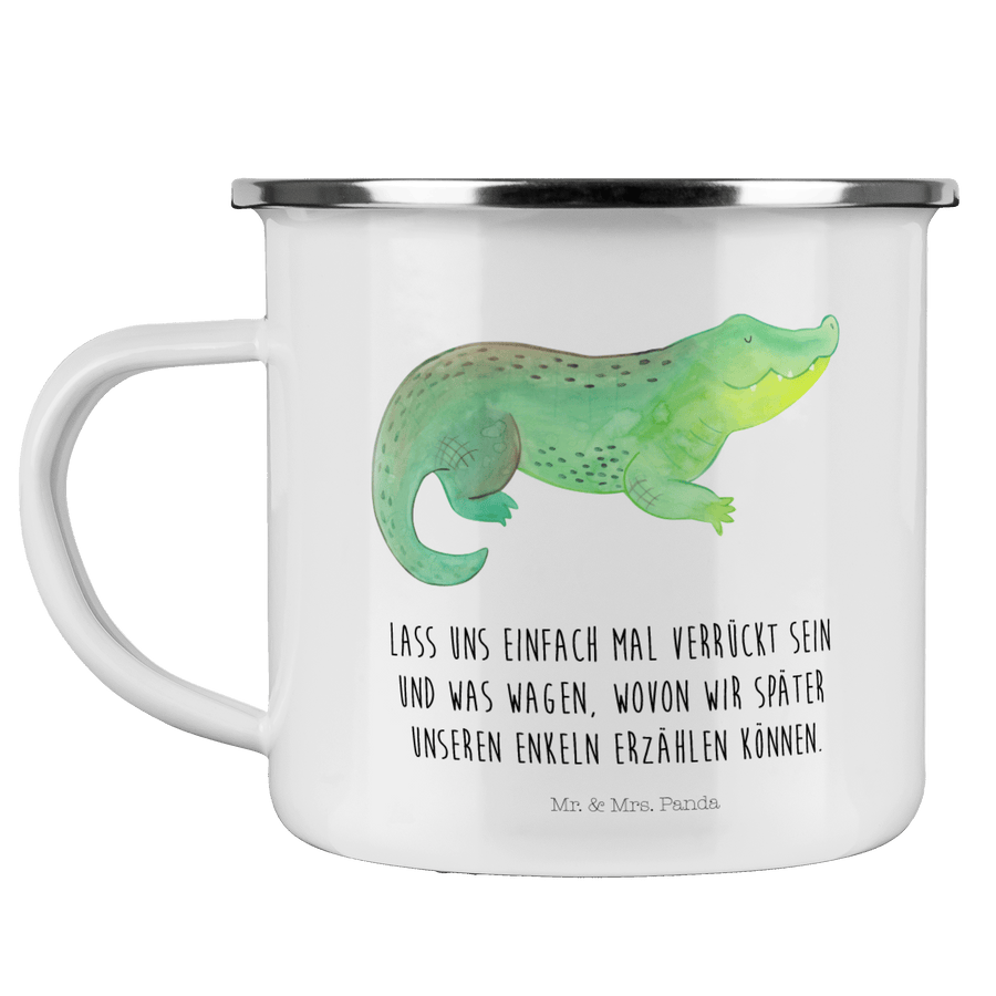 Camping Emaille Tasse Krokodil - mit Spruch - Weiß
