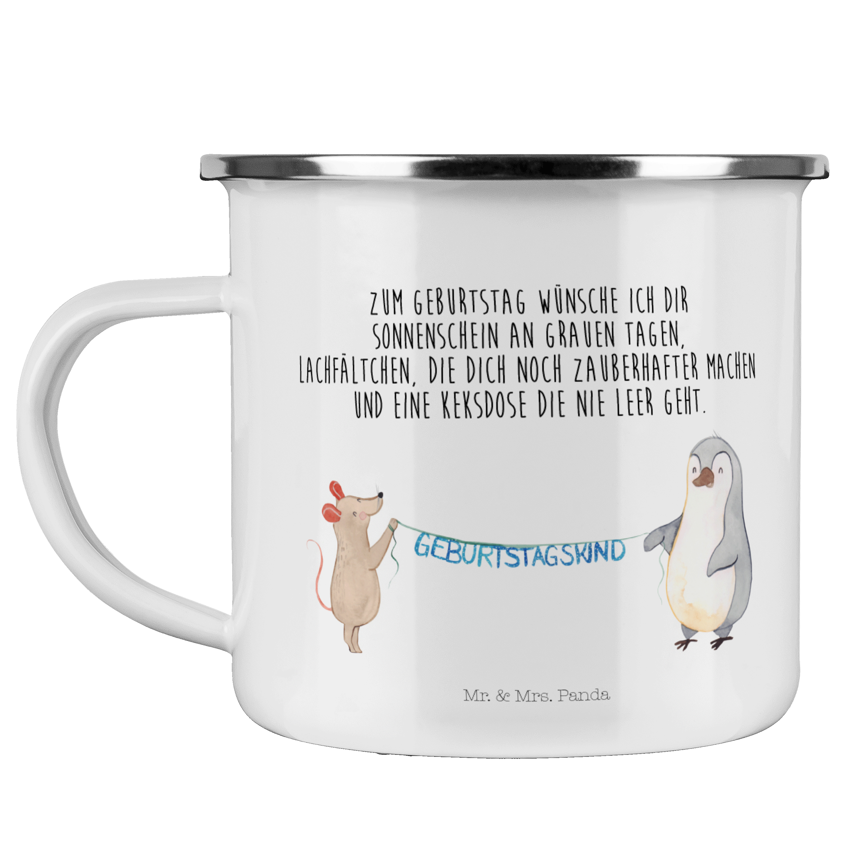 Camping Emaille Tasse Maus Pinguin Geburtstag - mit Spruch