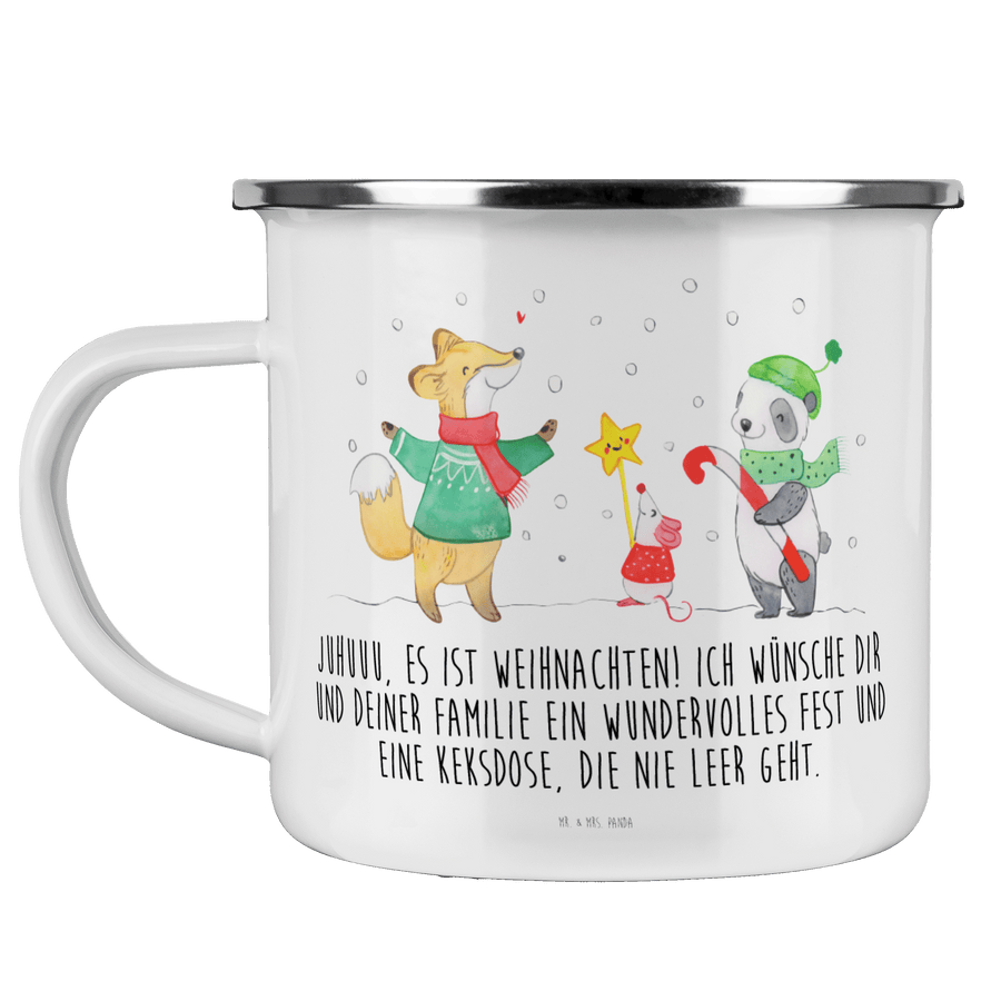 Camping Emaille Tasse Winter Weihnachtsfreude - Weiß