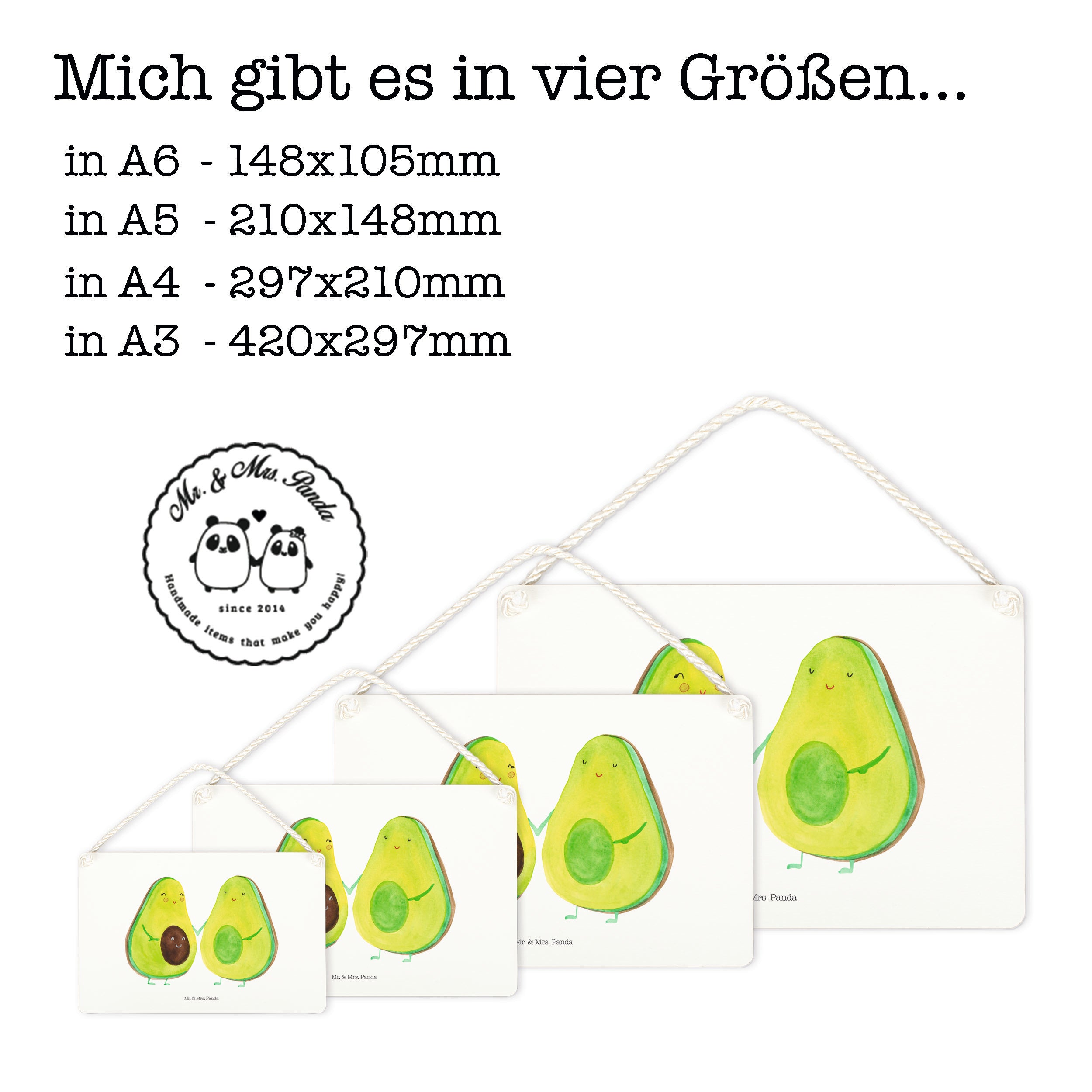 Deko Schild Avocado Pärchen - DIN A5 - mit Spruch - Gelb Pastell