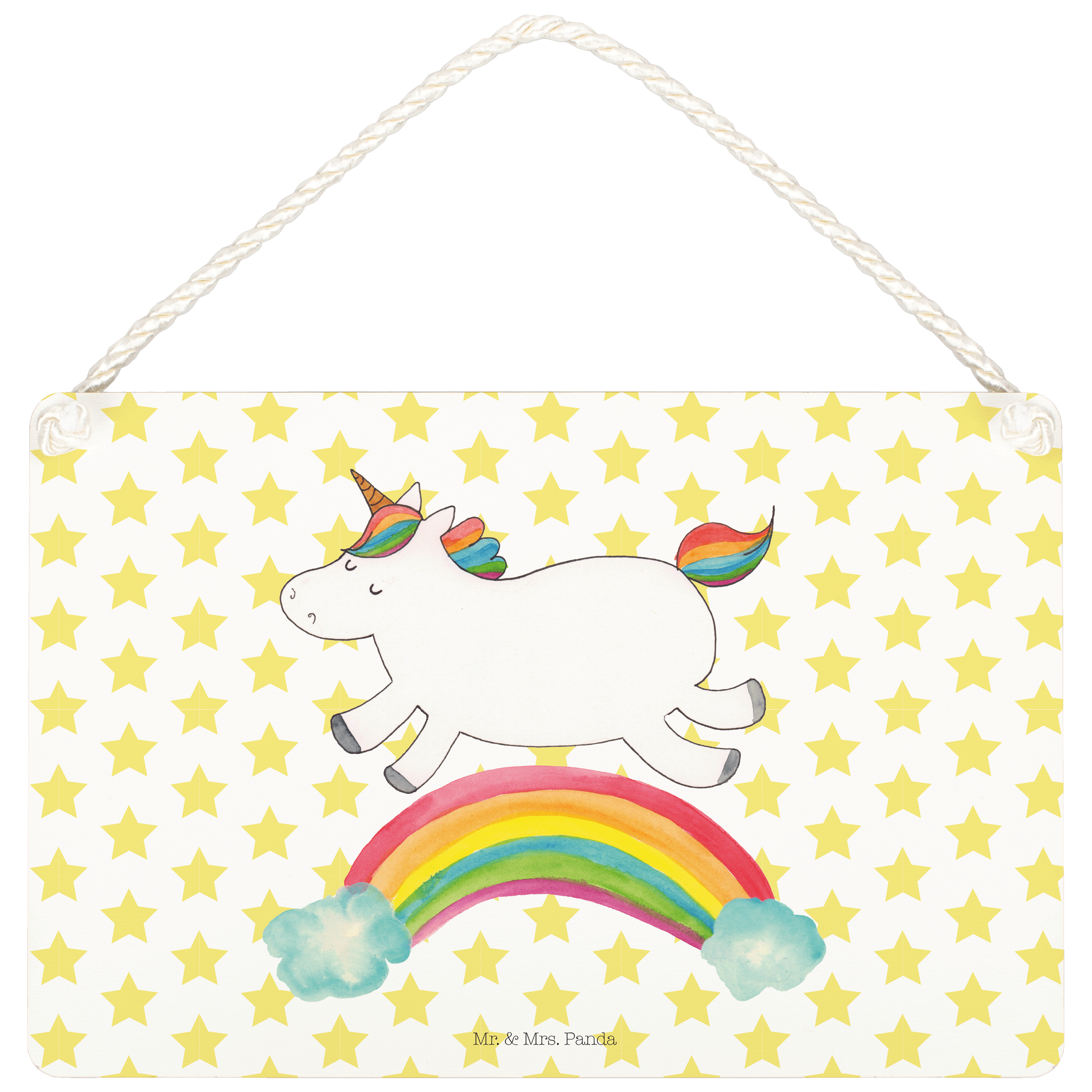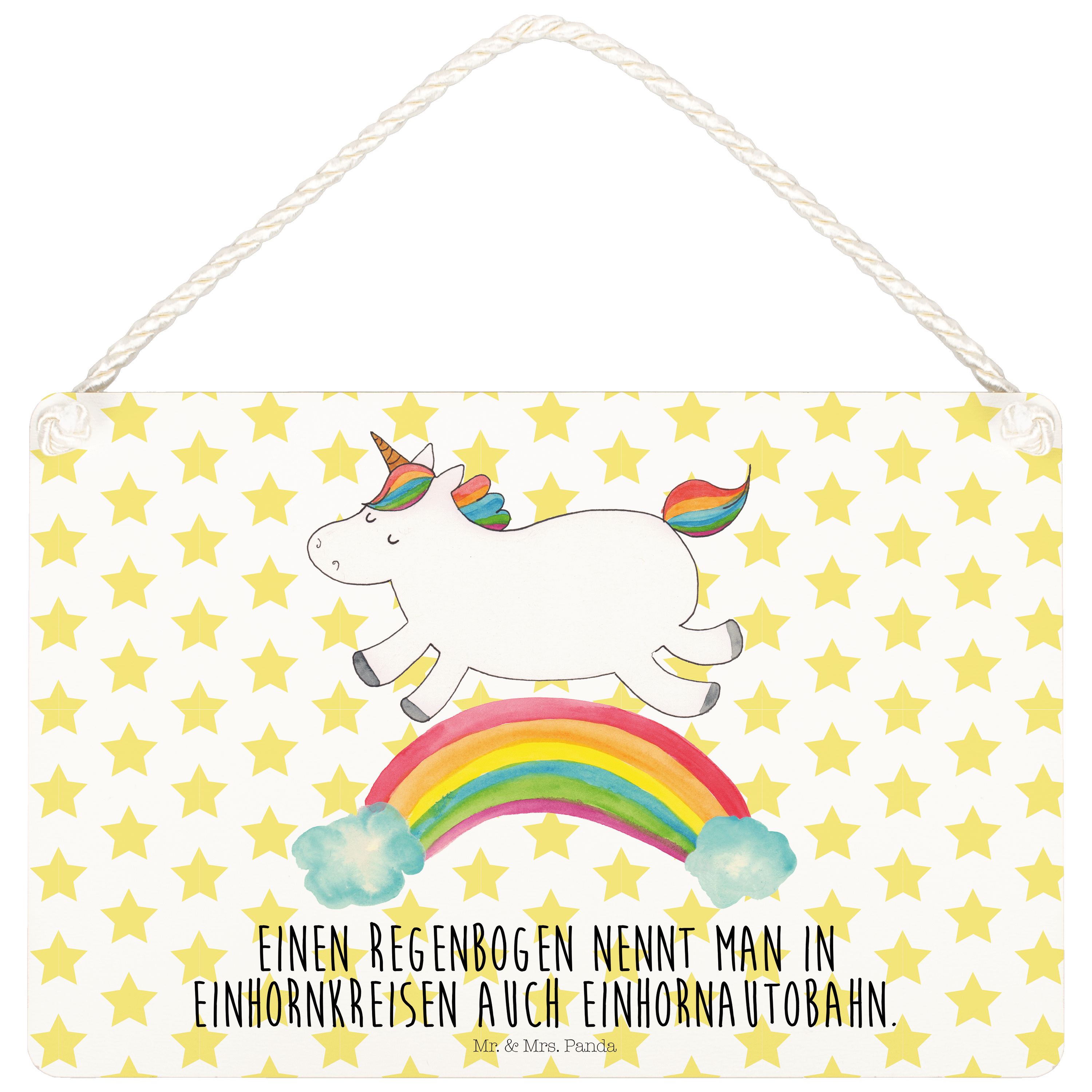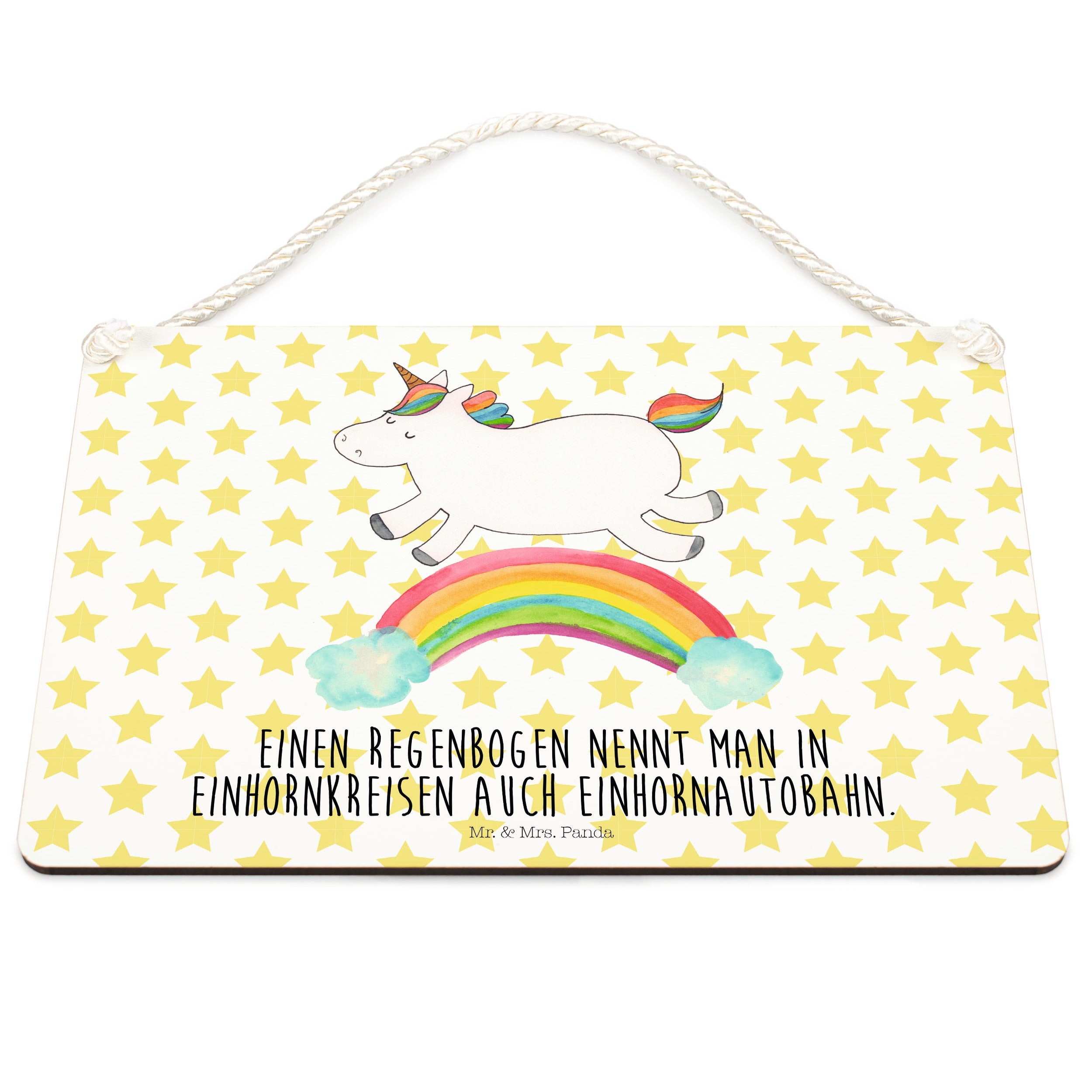 Deko Schild Einhorn Regenbogen - DIN A5 - mit Spruch - Weiß