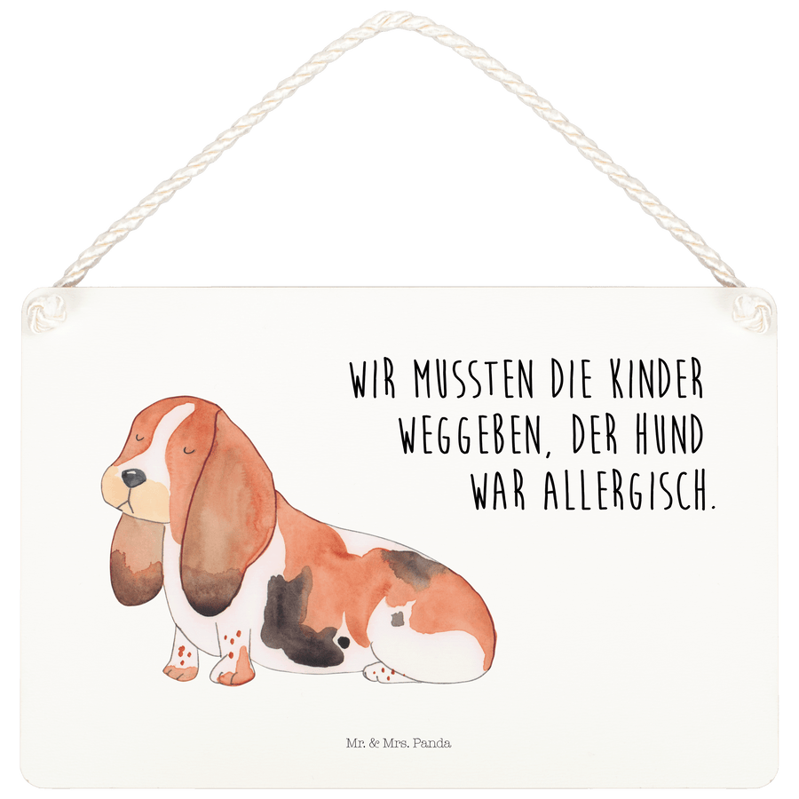 Deko Schild Hund Basset Hound - DIN A5 - mit Spruch - Weiß