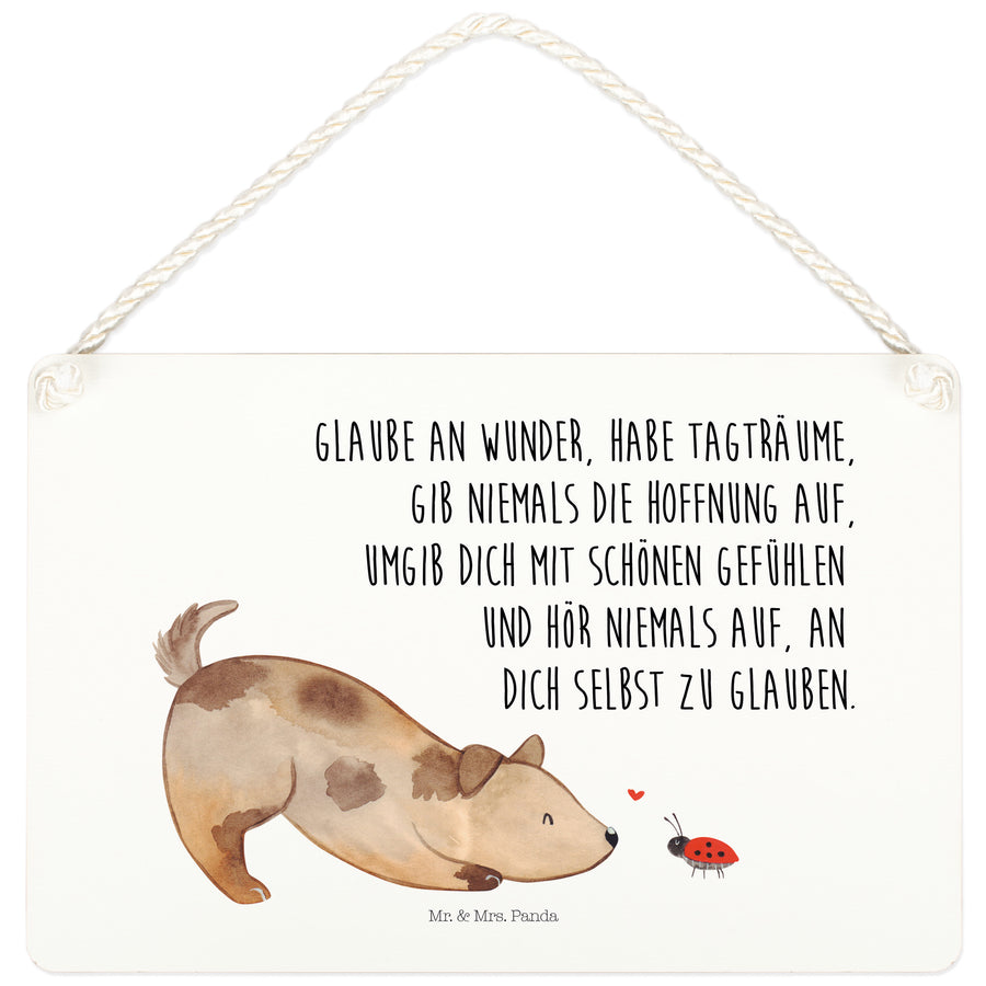 Deko Schild Hund Marienkäfer - DIN A4 - mit Spruch - Weiß