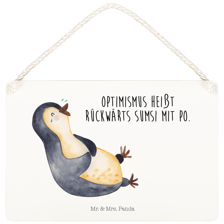 Deko Schild Pinguin lachend - DIN A5 - mit Spruch - Weiß