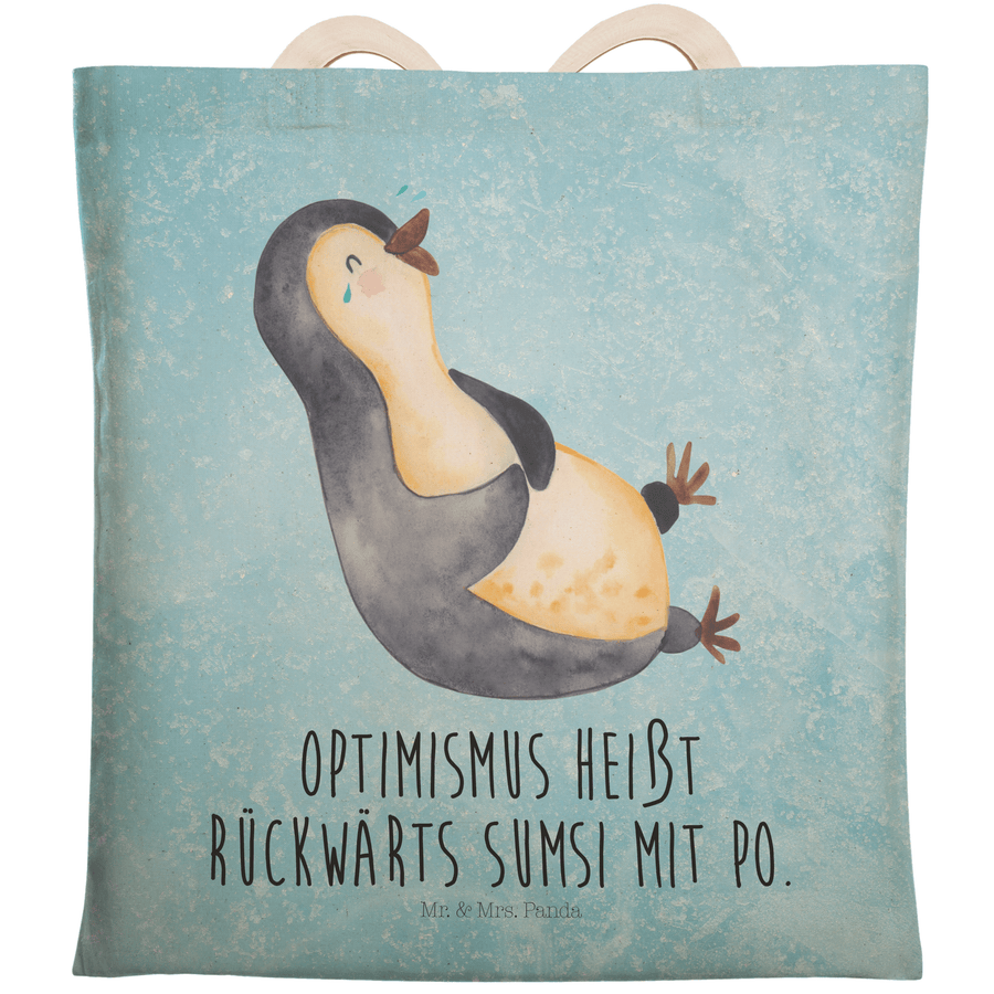 Einkaufstasche Pinguin lachend Tragetasche, Tasche, Beutel, Stofftasche, Baumwolltasche, Umhängetasche, Shopper, Pinguin, Pinguine, lustiger Spruch, Optimismus, Fröhlich, Lachen, Humor, Fröhlichkeit