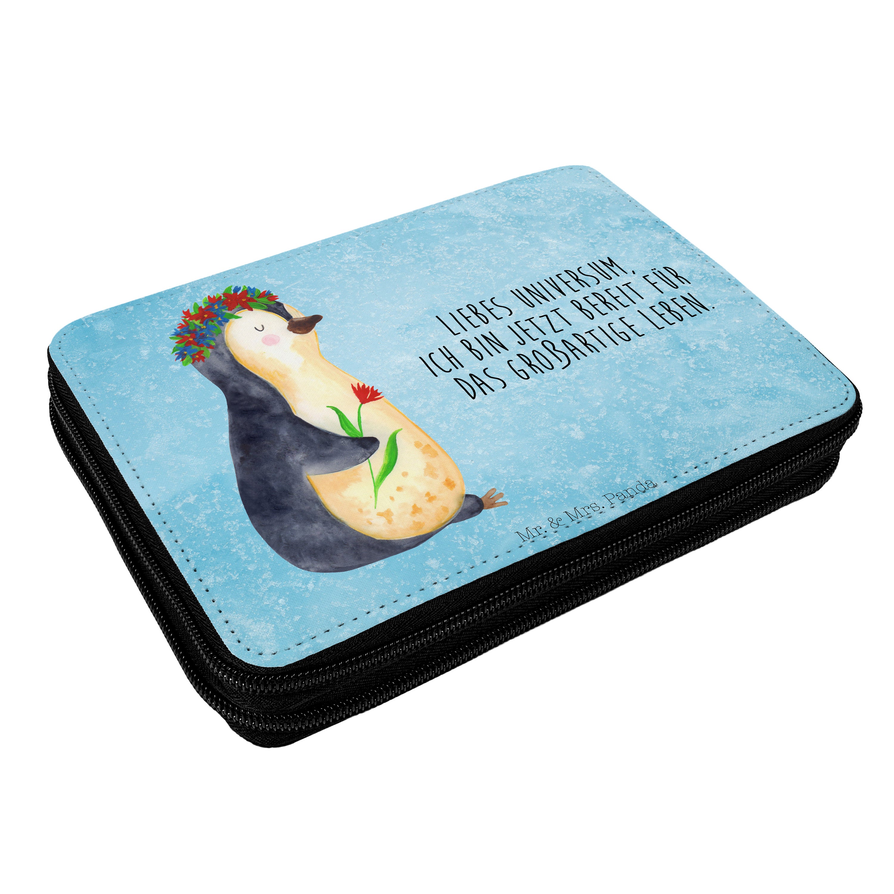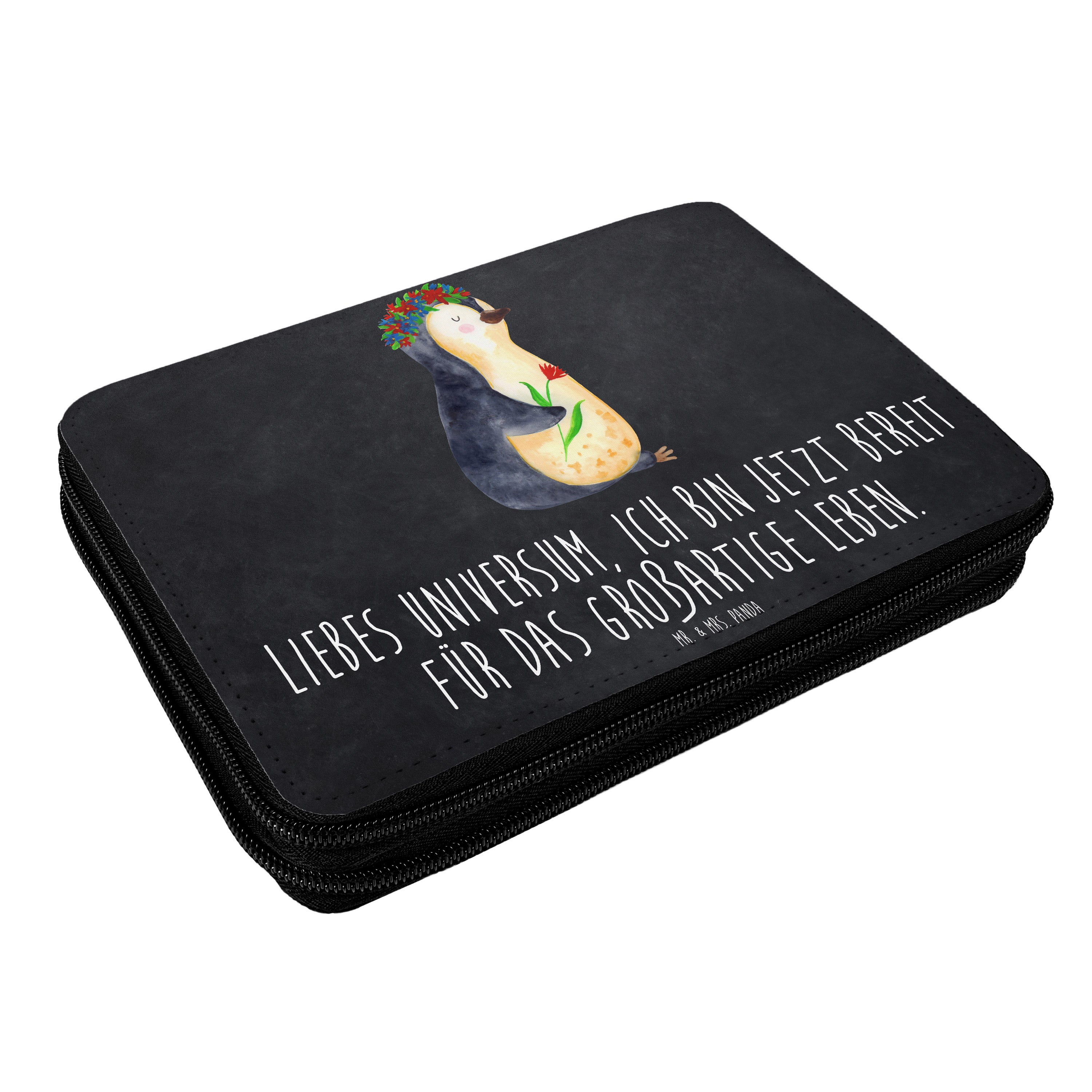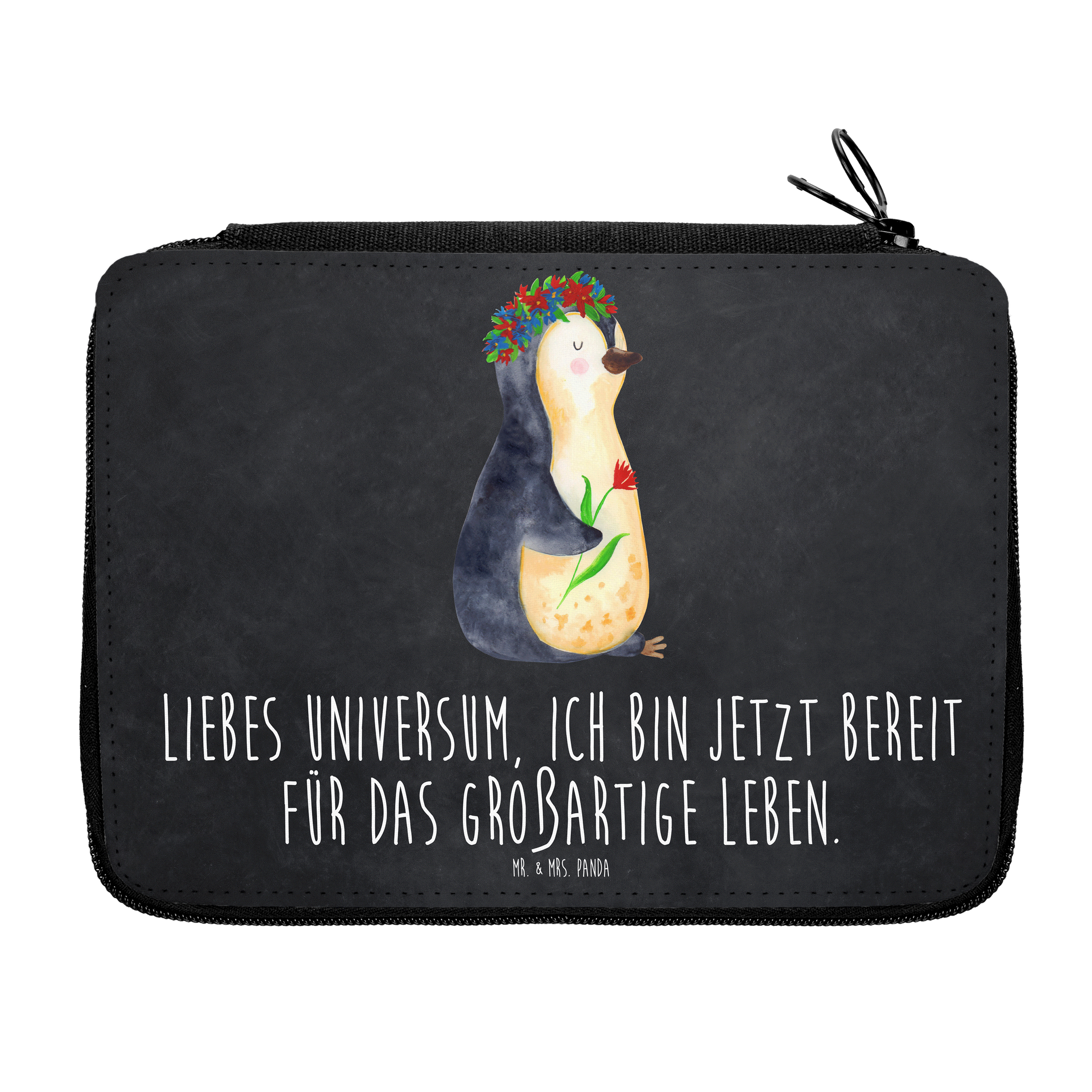 Federmappe Pinguin Blumenkranz - mit Spruch - Kreidetafel