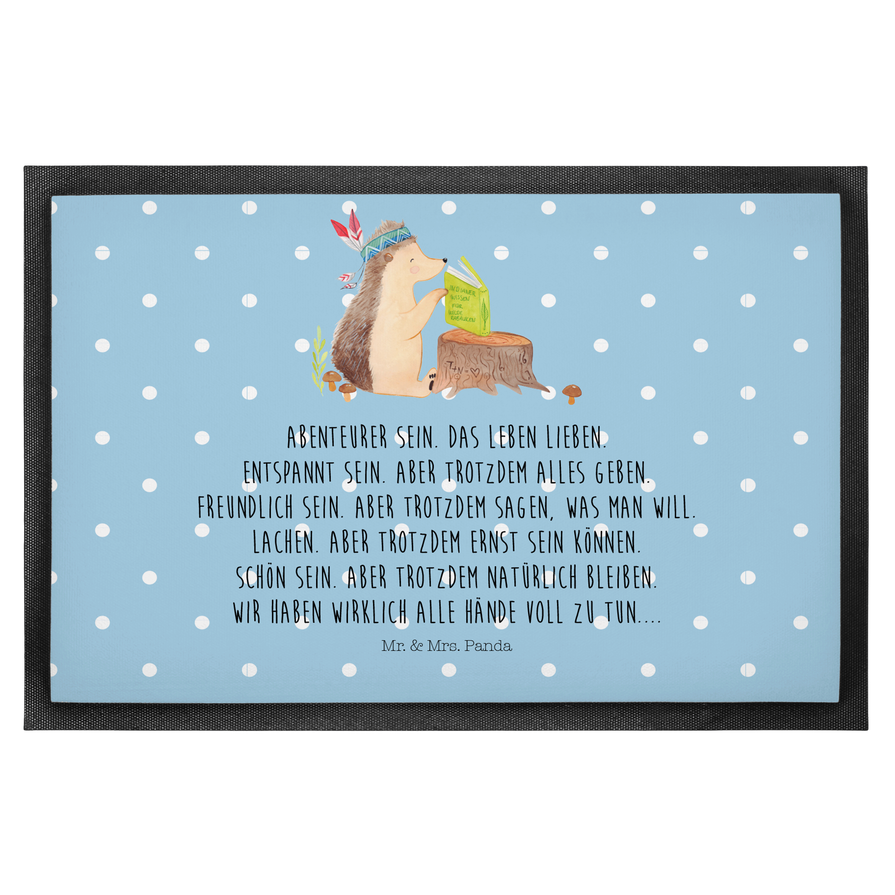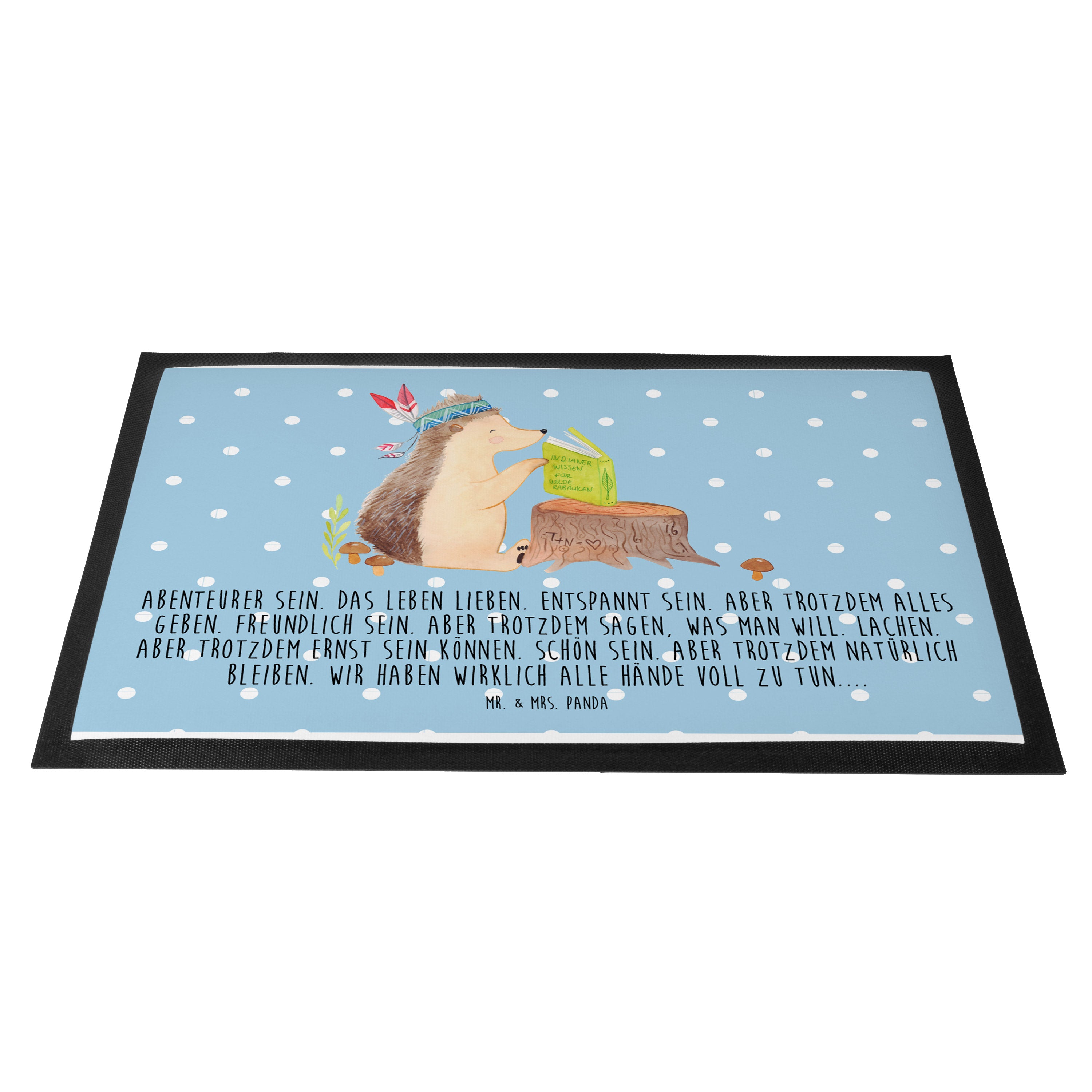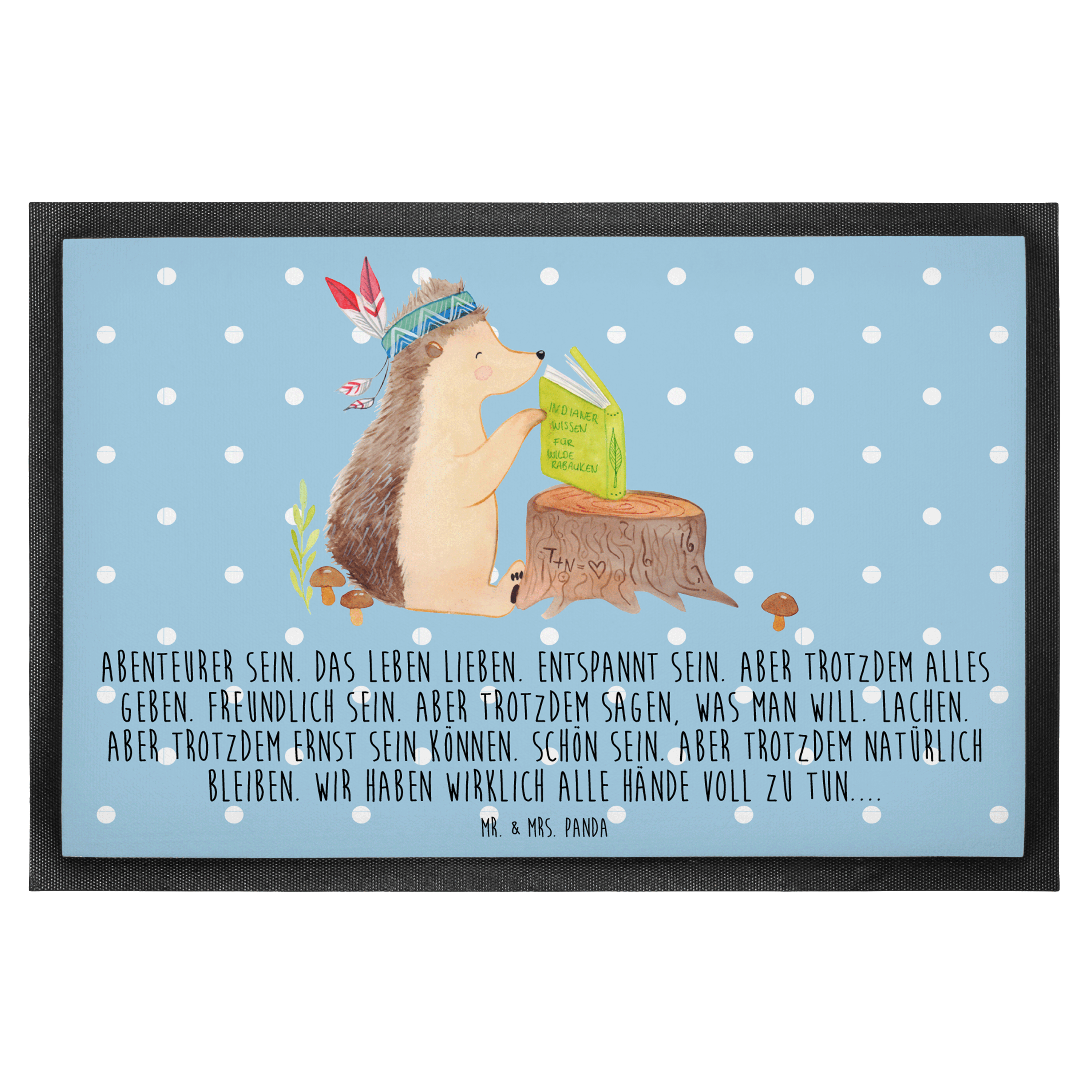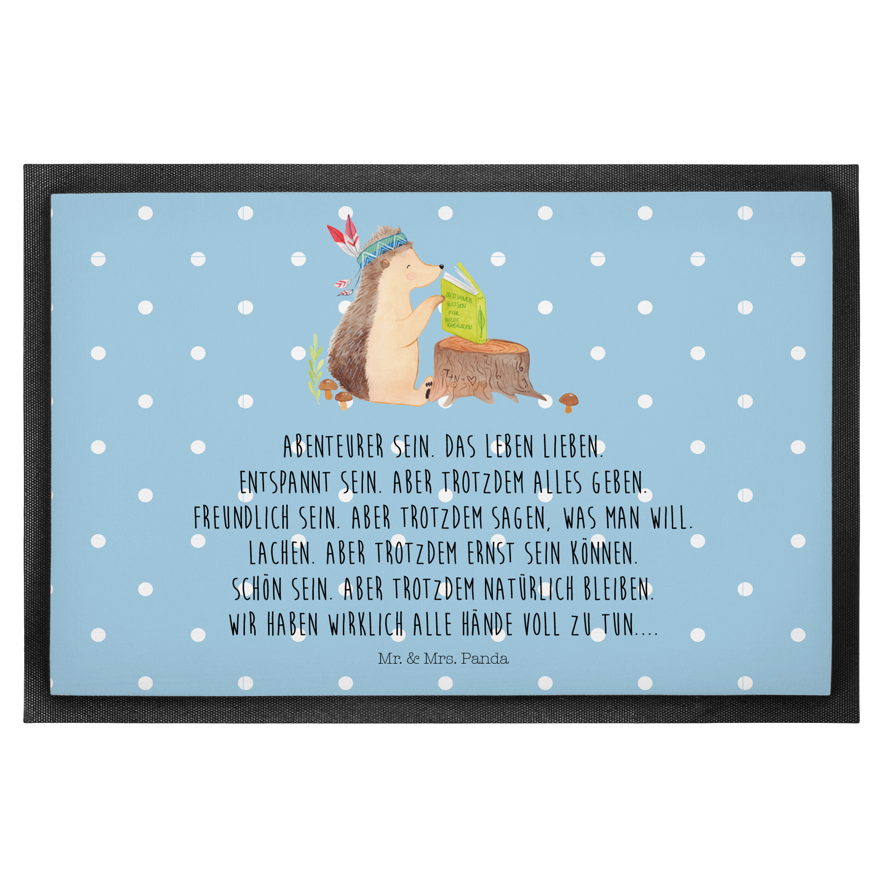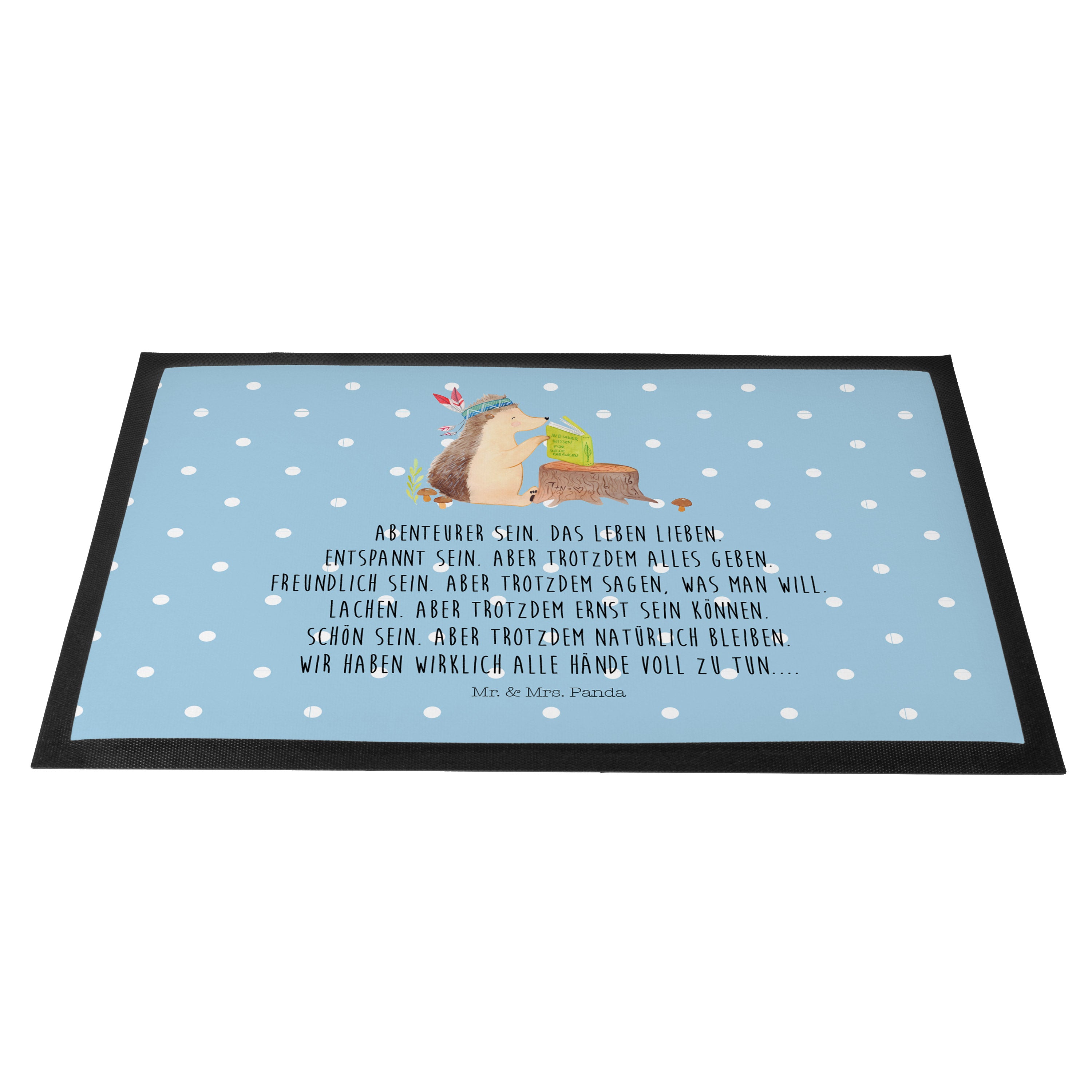 Fußmatte Igel Indianer - 60 x 90 cm - mit Spruch - Blau Pastell