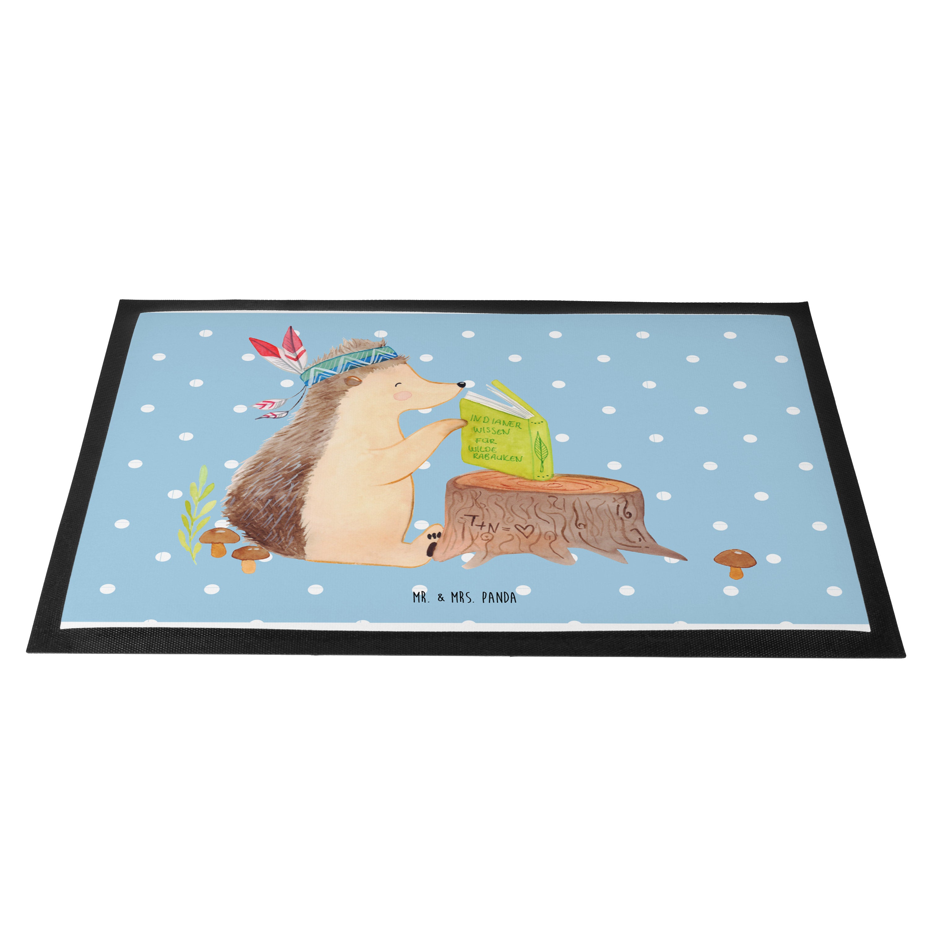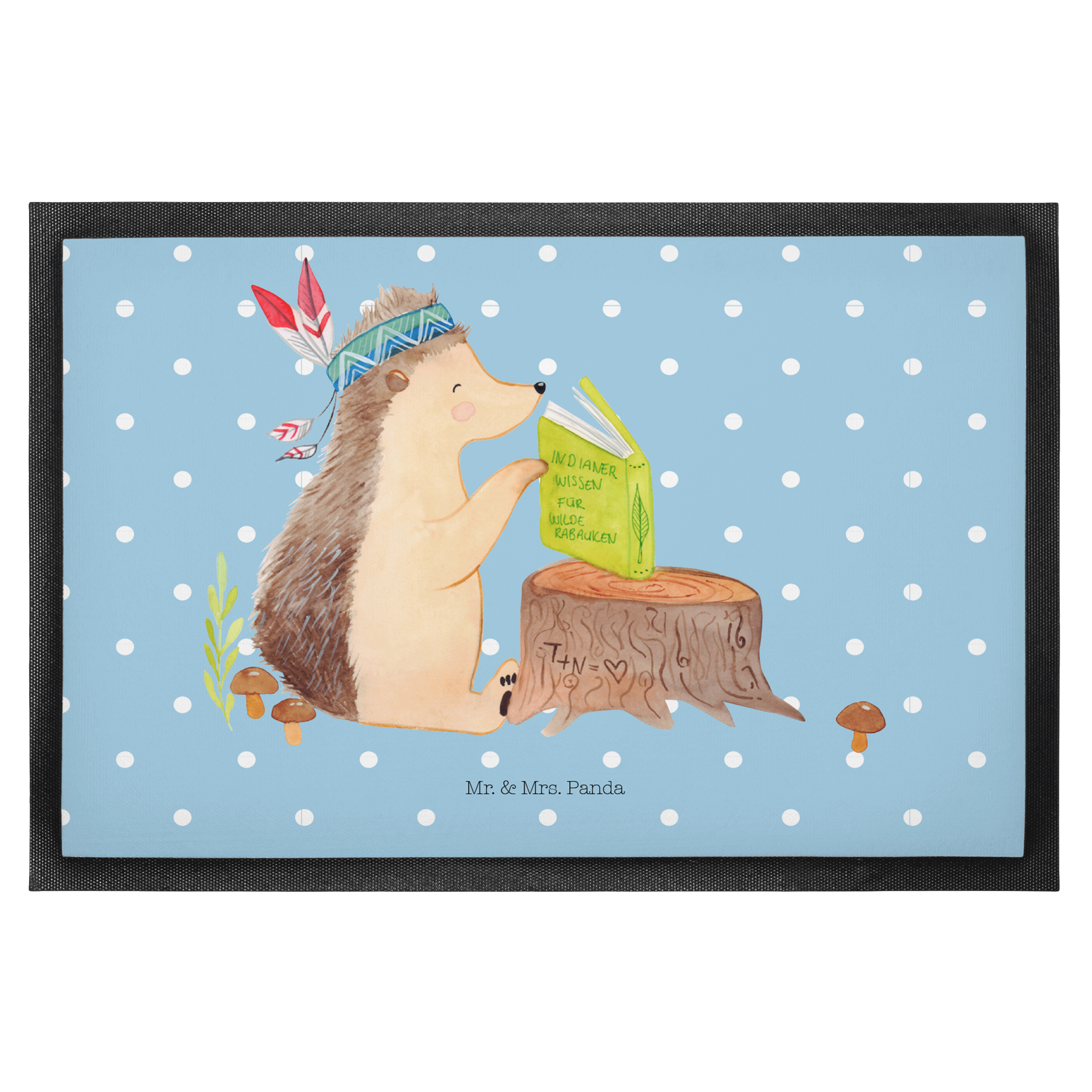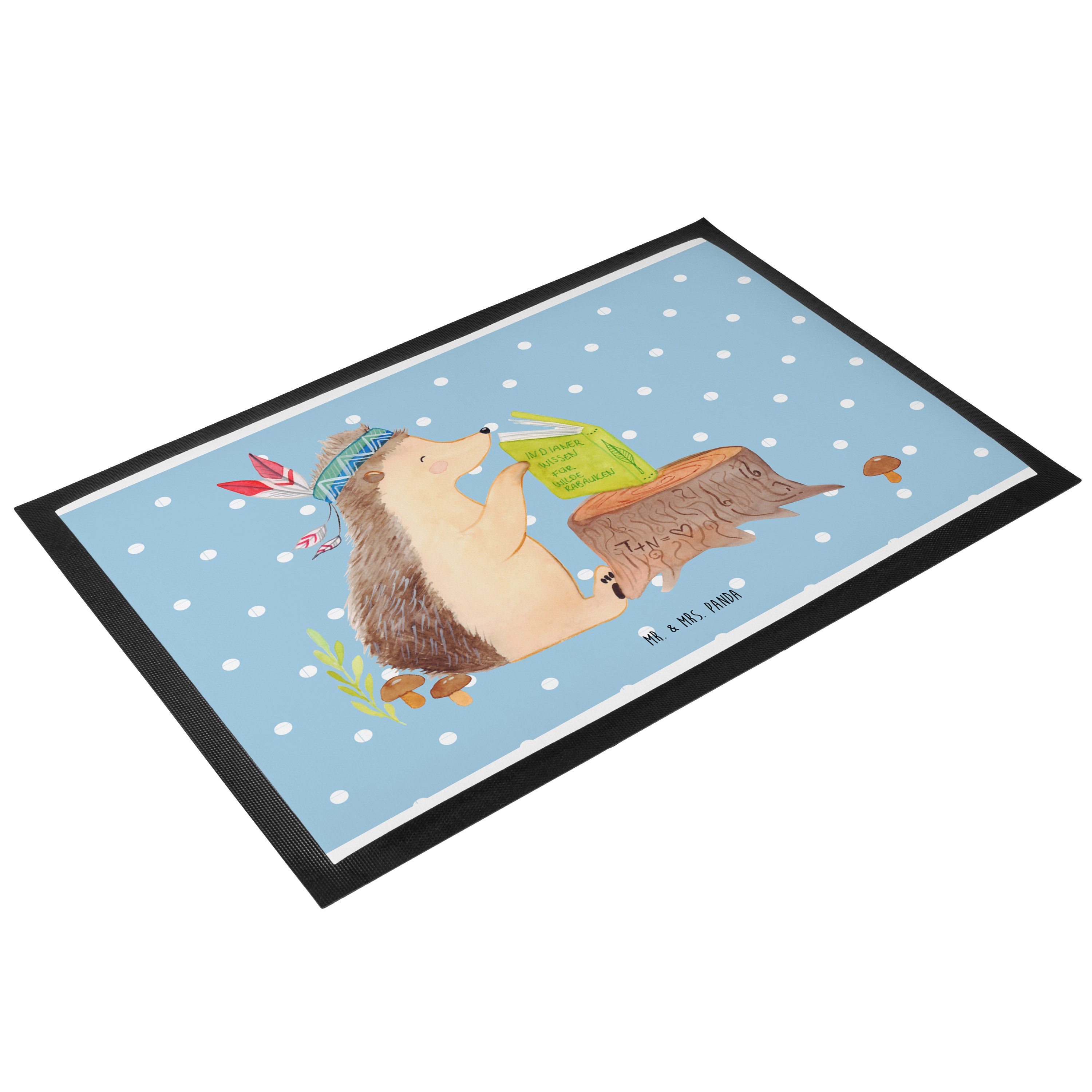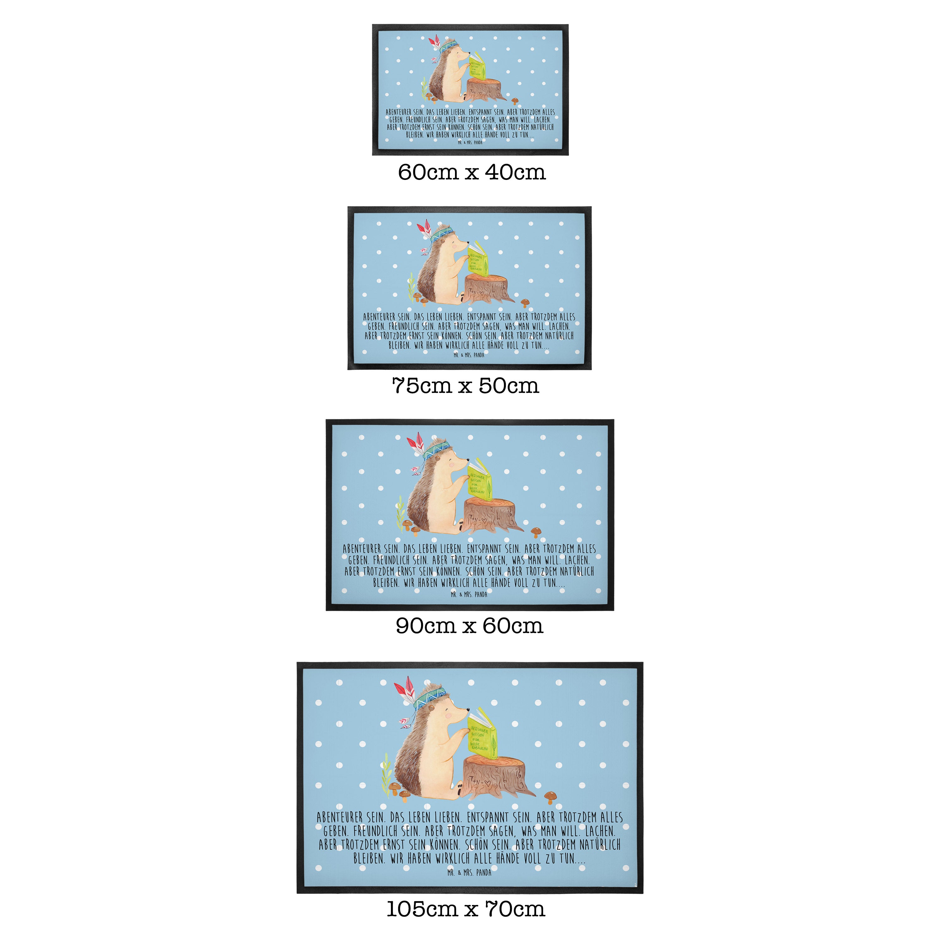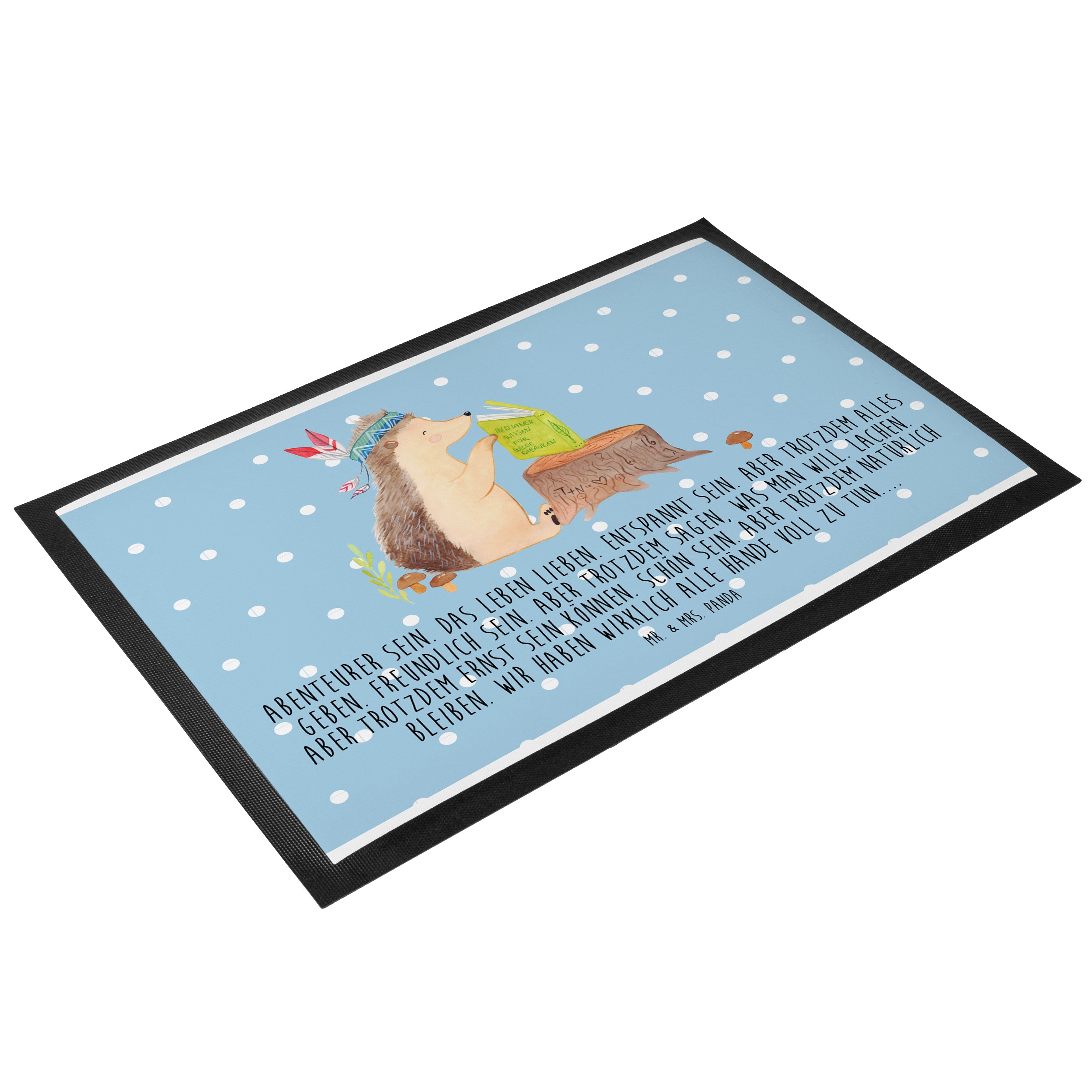 Fußmatte Igel Indianer - 60 x 90 cm - mit Spruch - Blau Pastell