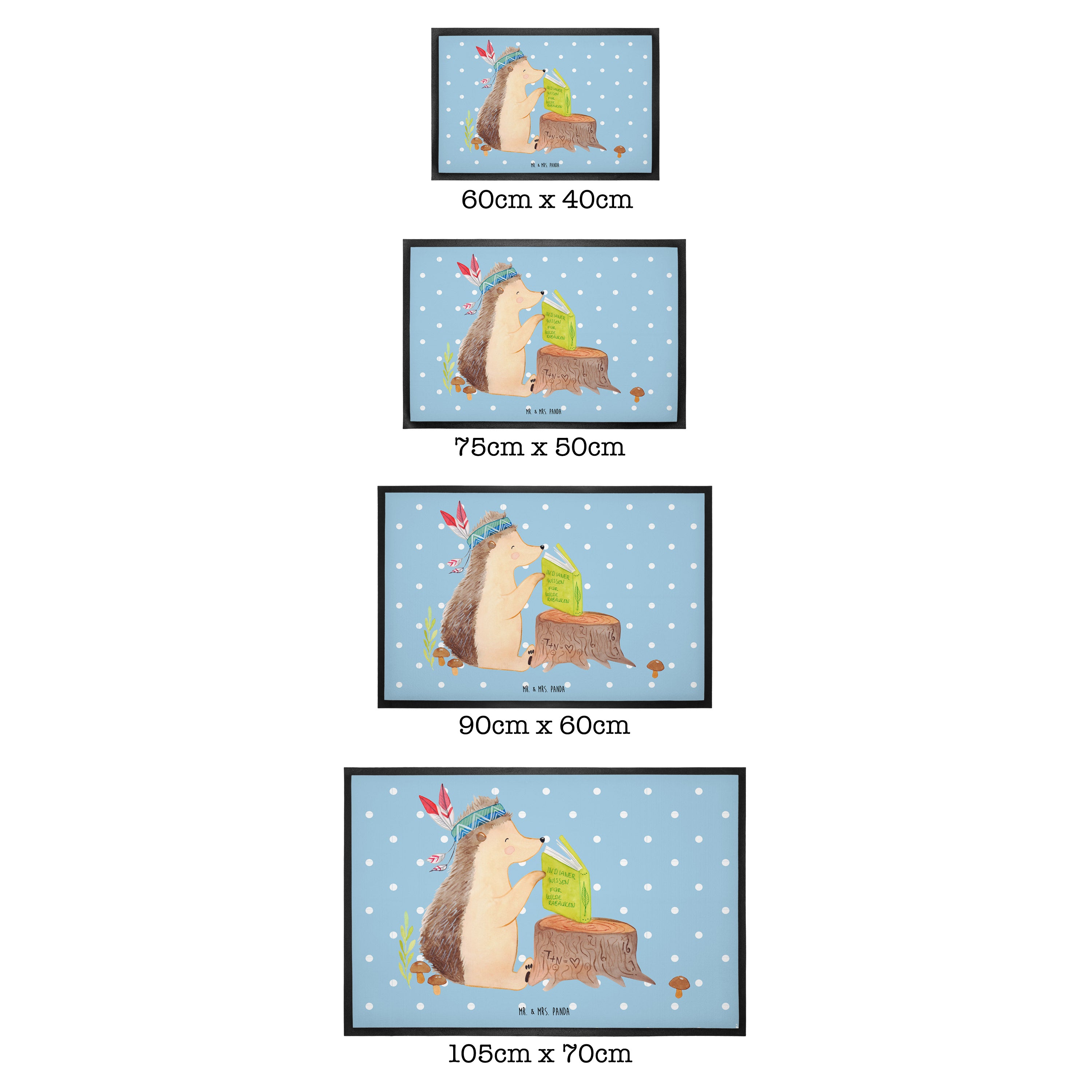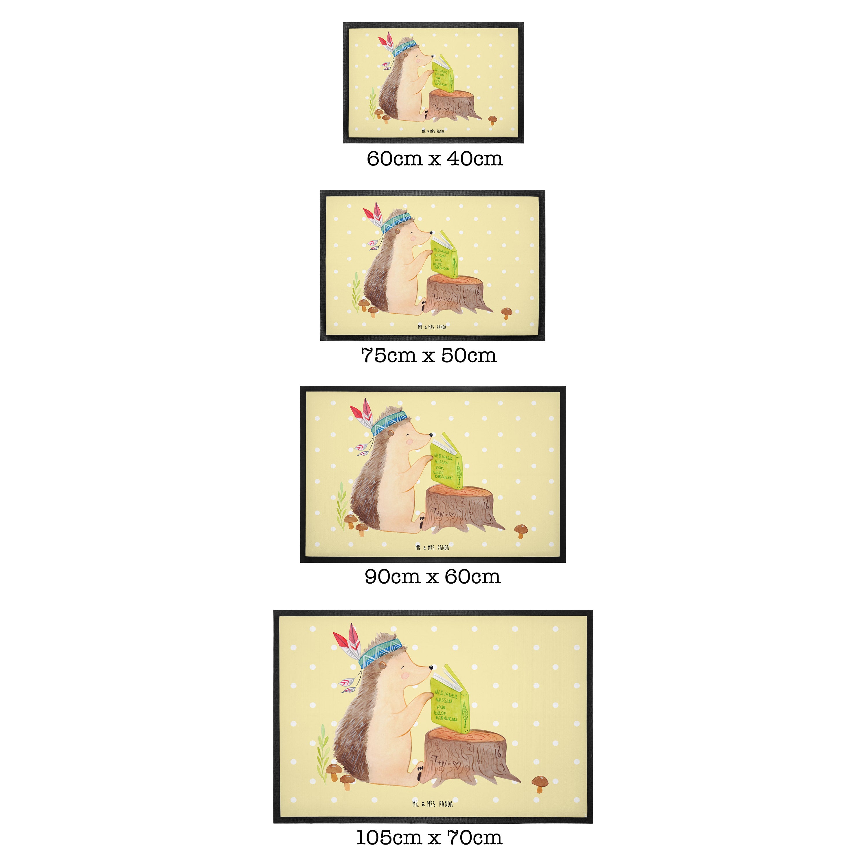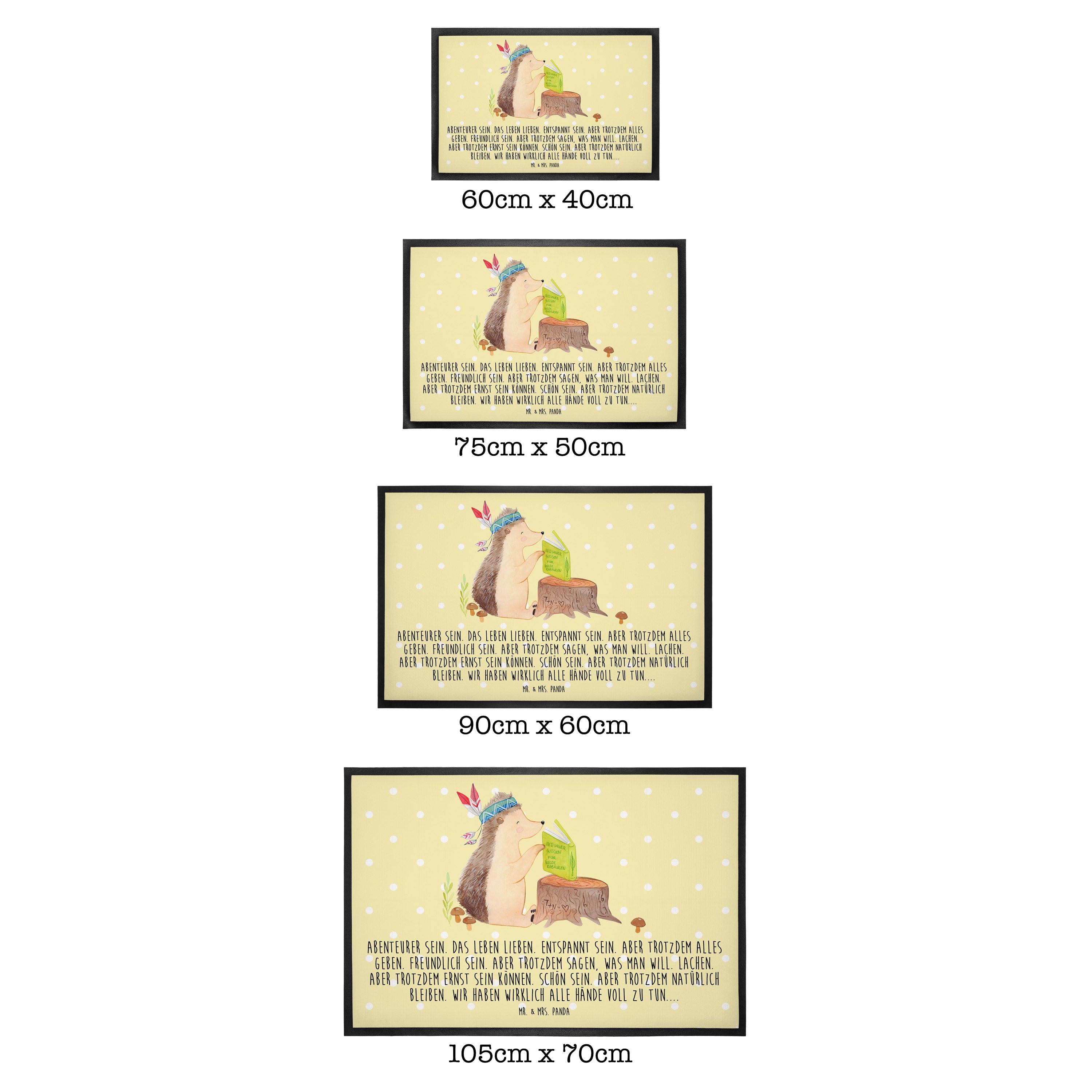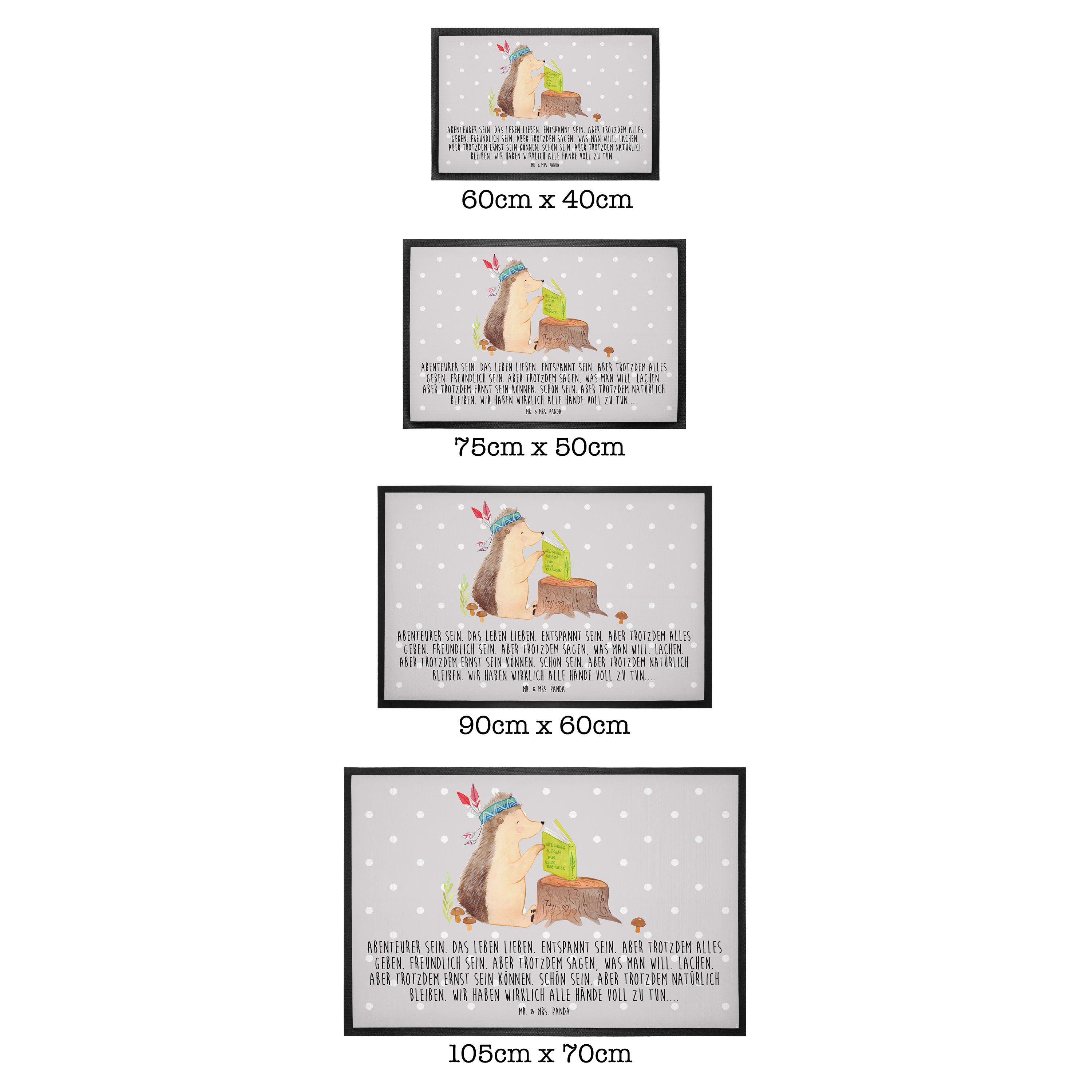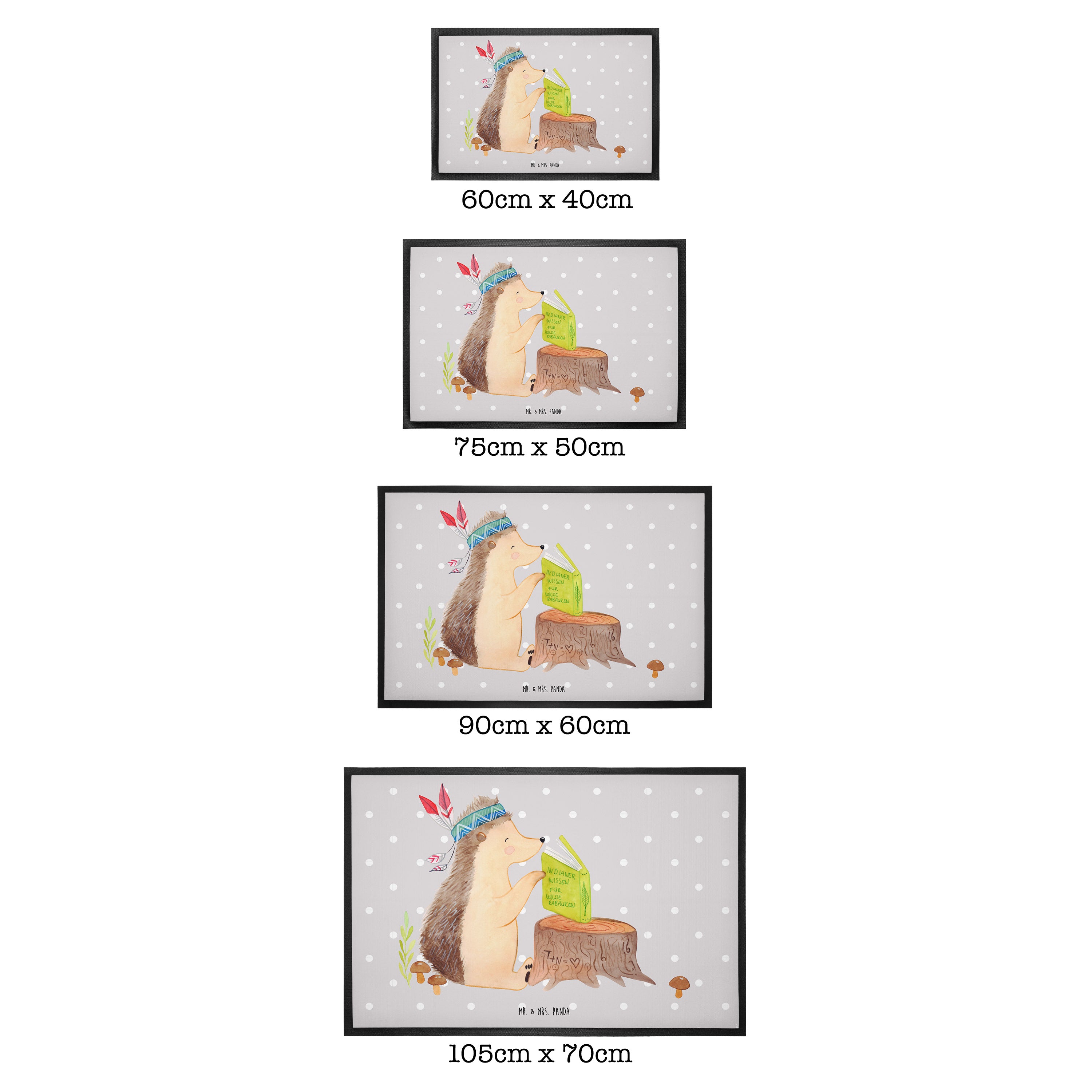 Die wunderschönen Fussmatten von Mr. & Mrs. Panda sind etwas ganz Besonderes. Sie sind als Türvorleger draußen und drinnen benutzbar. Du kannst zwischen drei verschiedenen Größen wählen. Alle Motive der Vorleger werden von uns entworfen und jede Fußmatte wird von uns in unserer Manufaktur selbst bedruckt und liebevoll an euch verschickt.