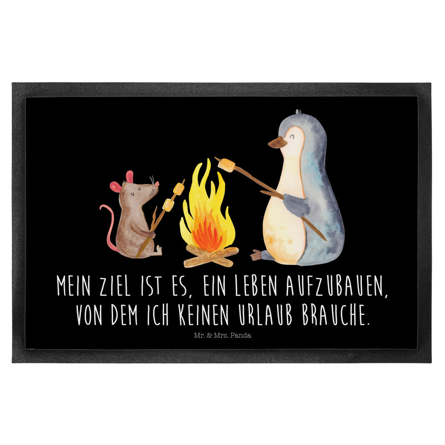 Fußmatte Pinguin Lagerfeuer - 60 x 90 cm - mit Spruch - Schwarz