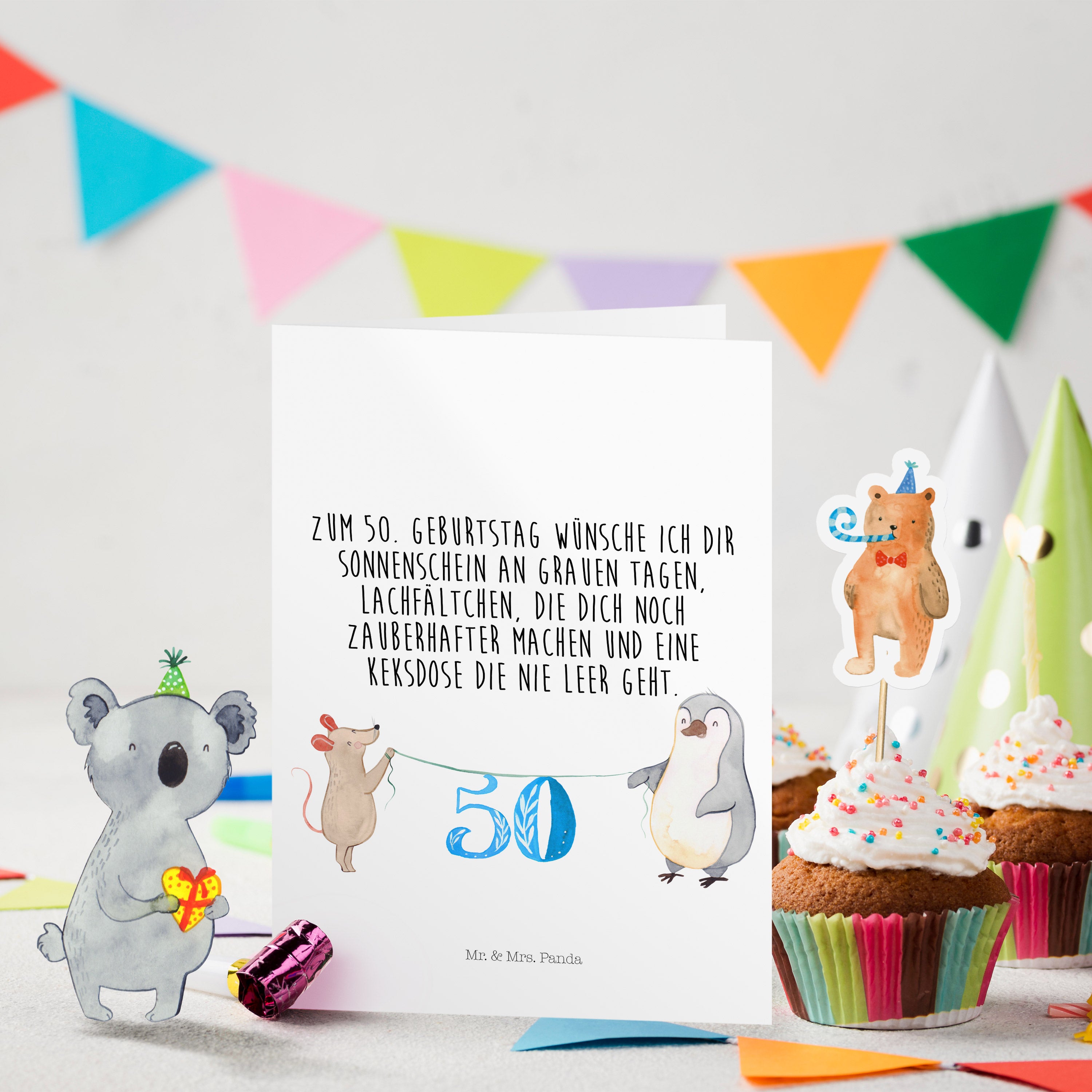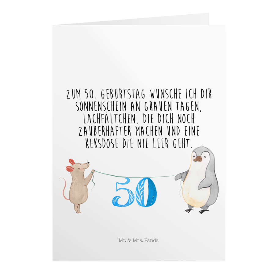 Geburtstagskarte 50. Geburtstag Maus Pinguin