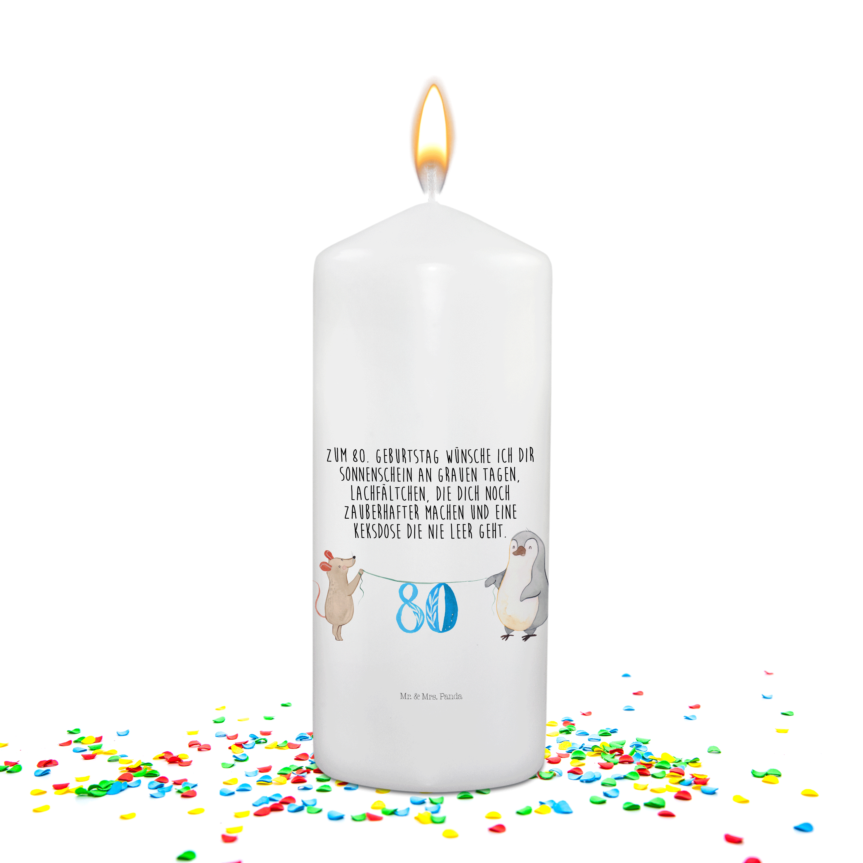 Geburtstagskerze 80. Geburtstag Maus Pinguin