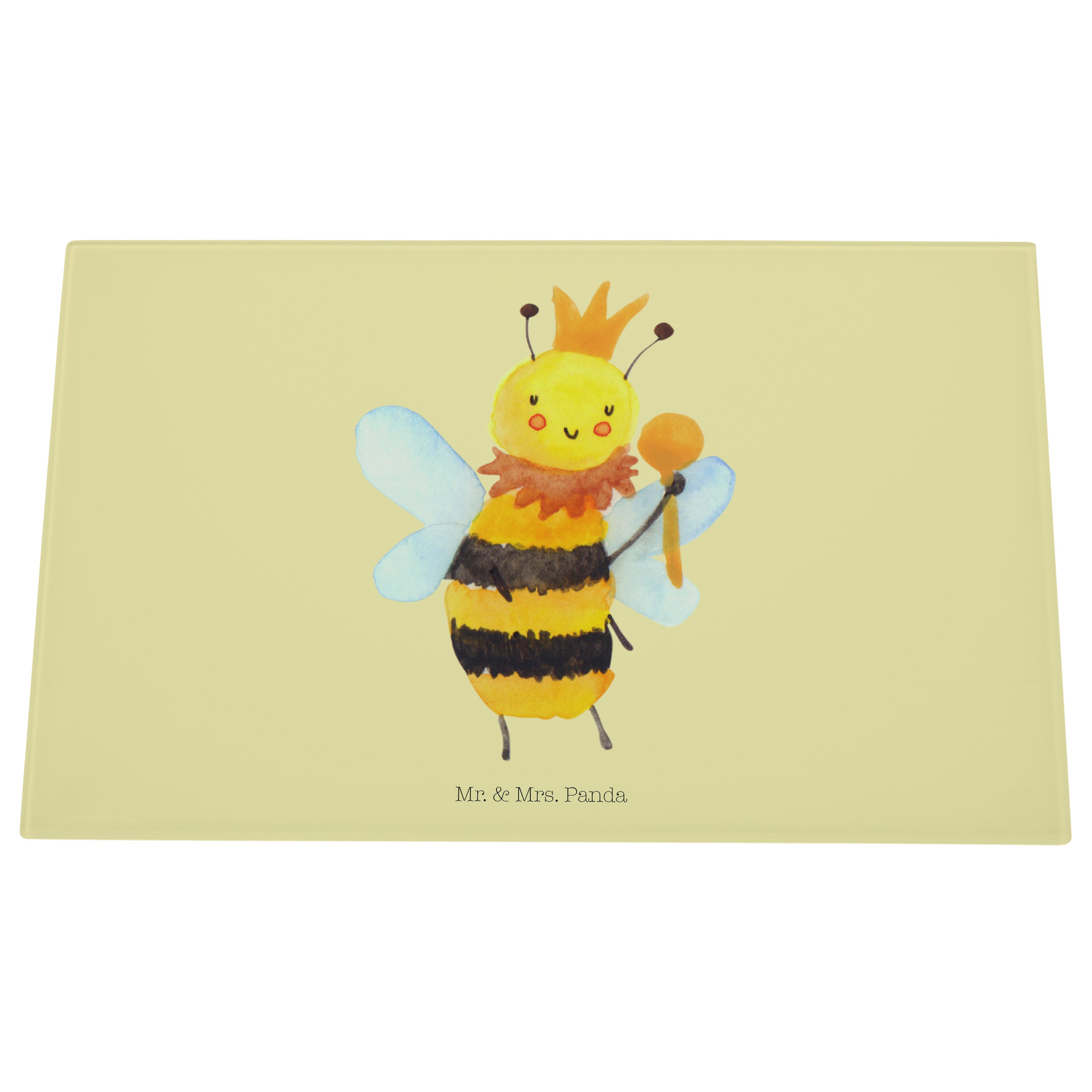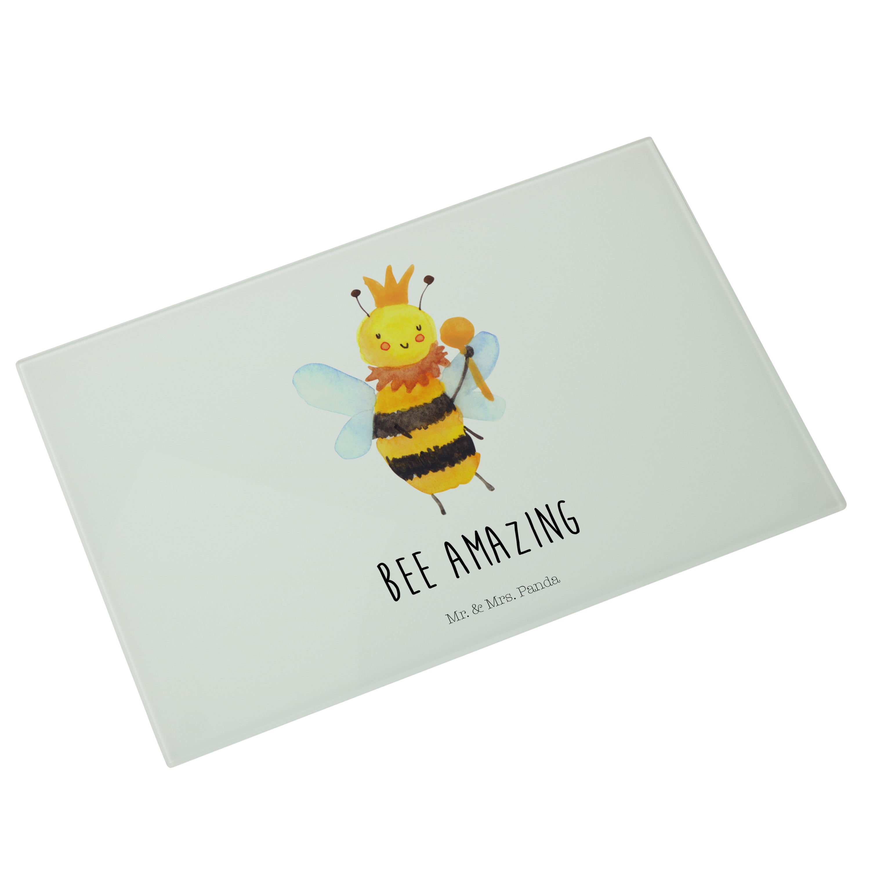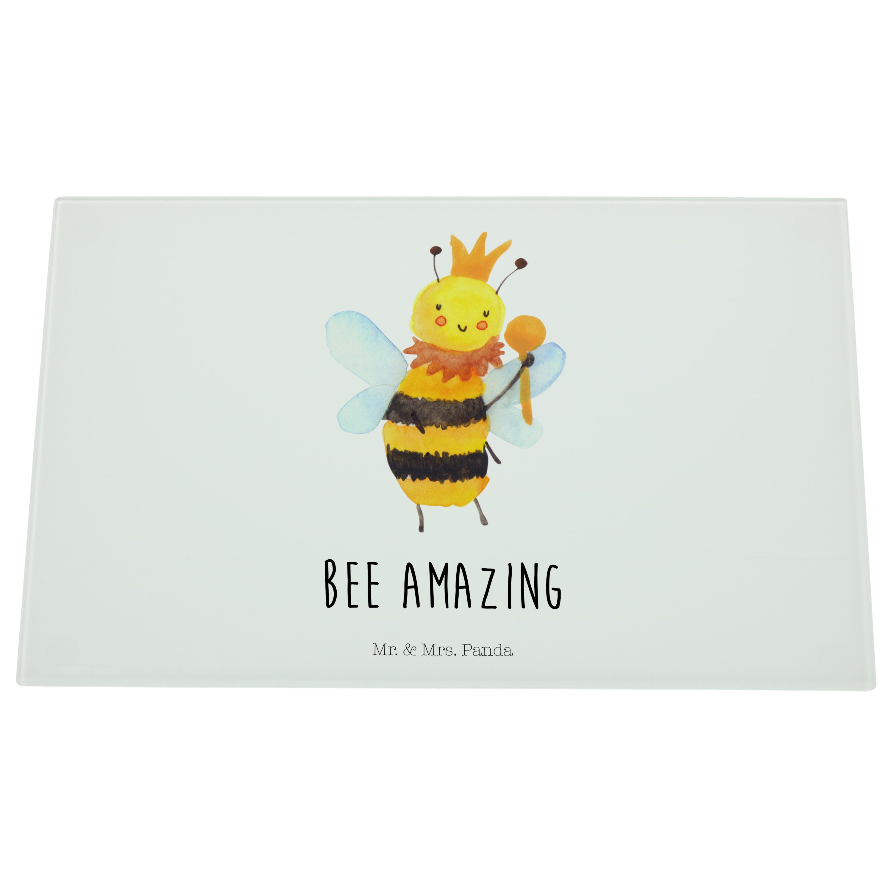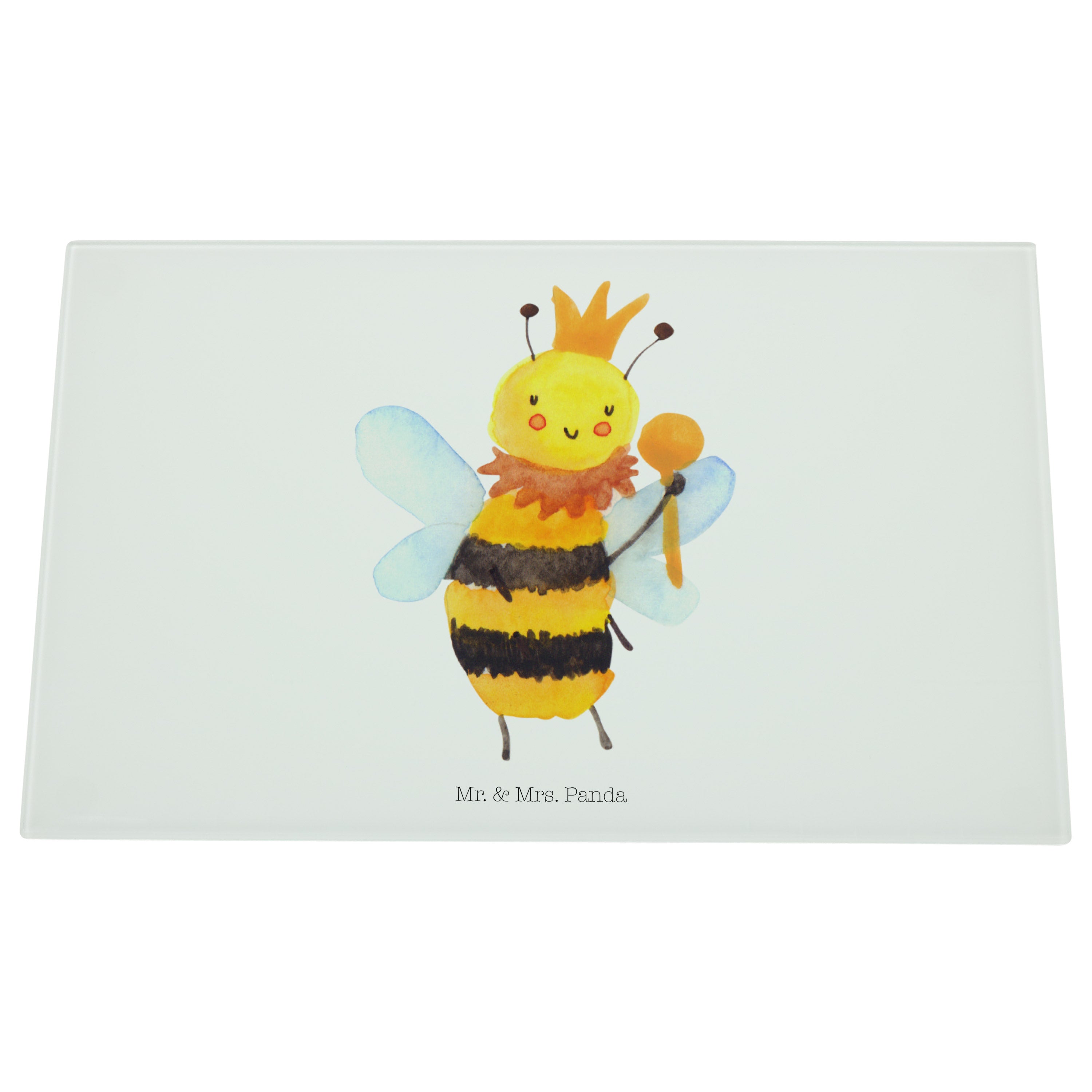 Medium Glas Schneidbrett Biene König - mit Spruch - Weiß