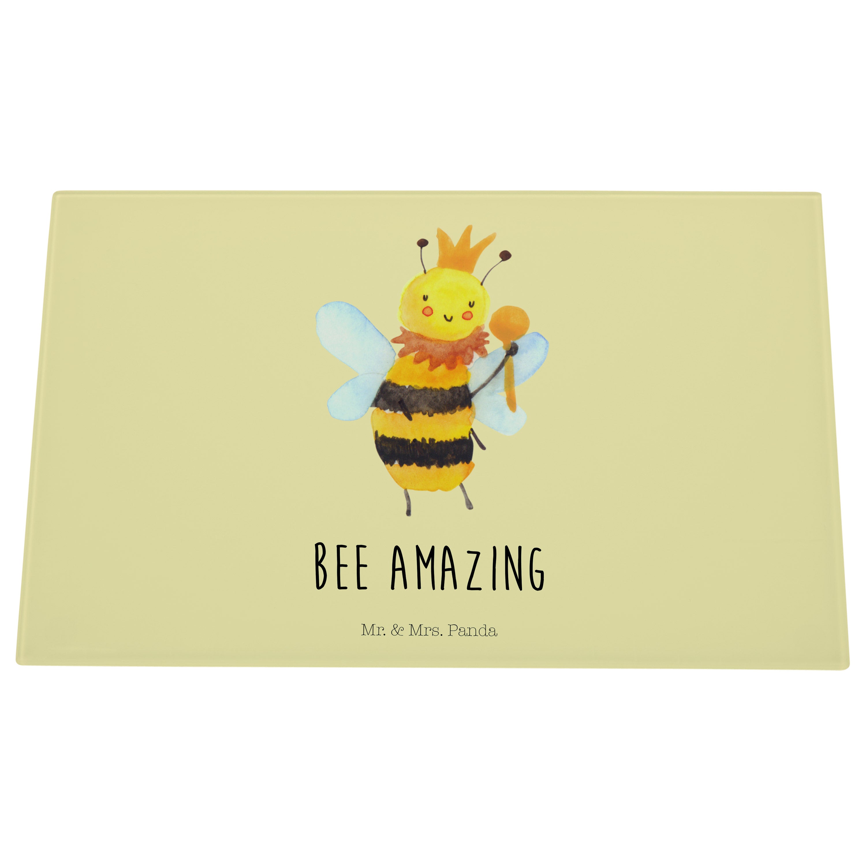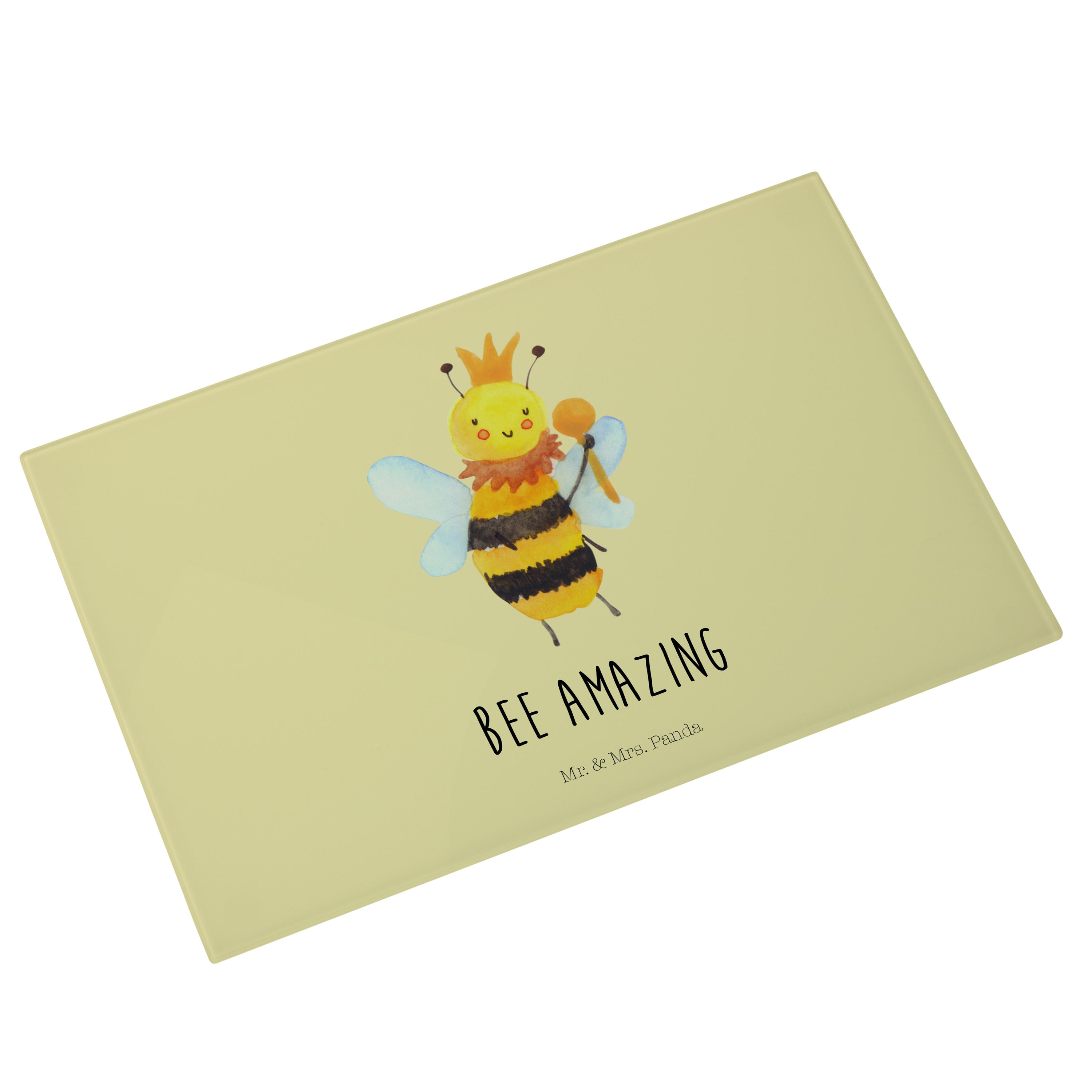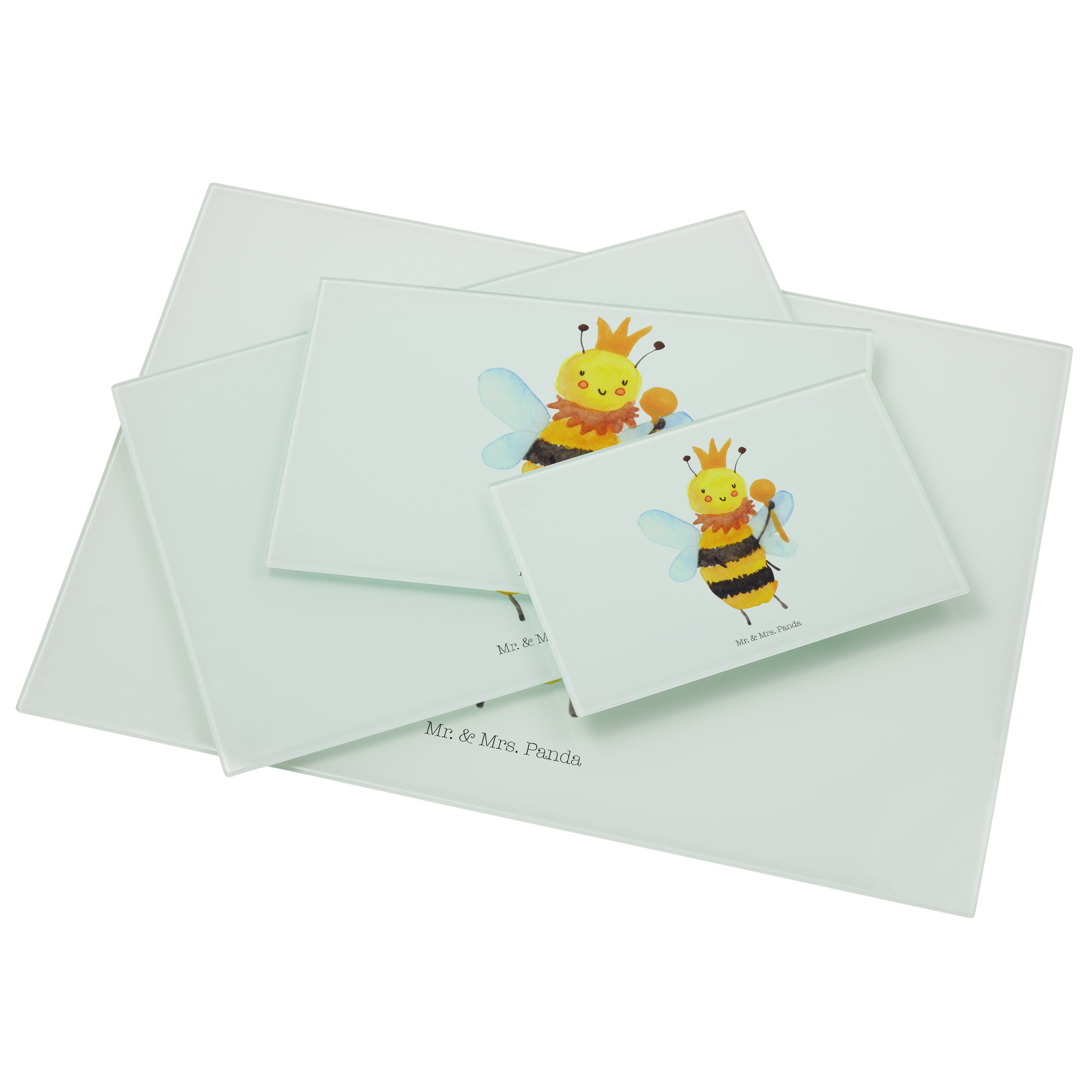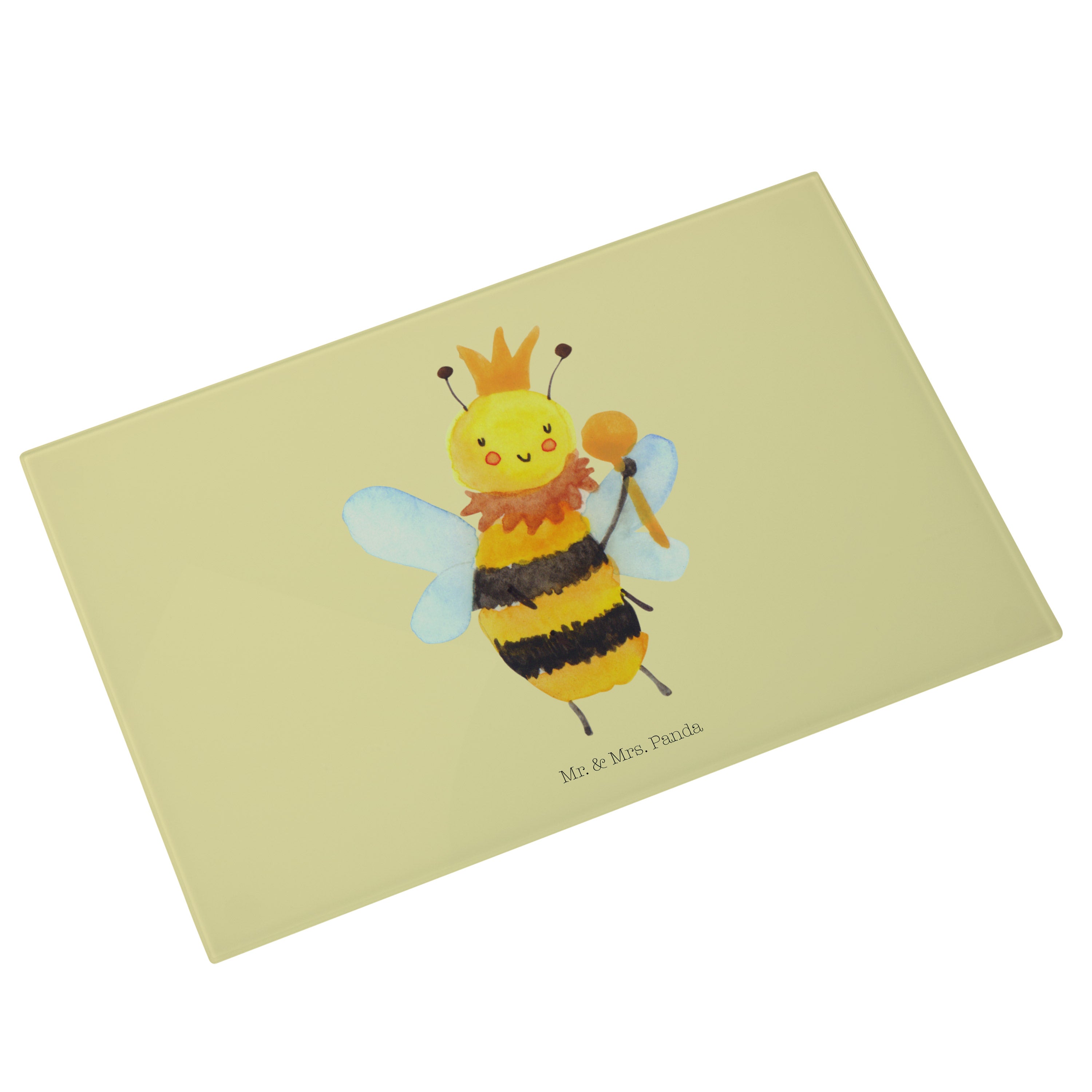 Medium Glas Schneidbrett Biene König - mit Spruch - Weiß