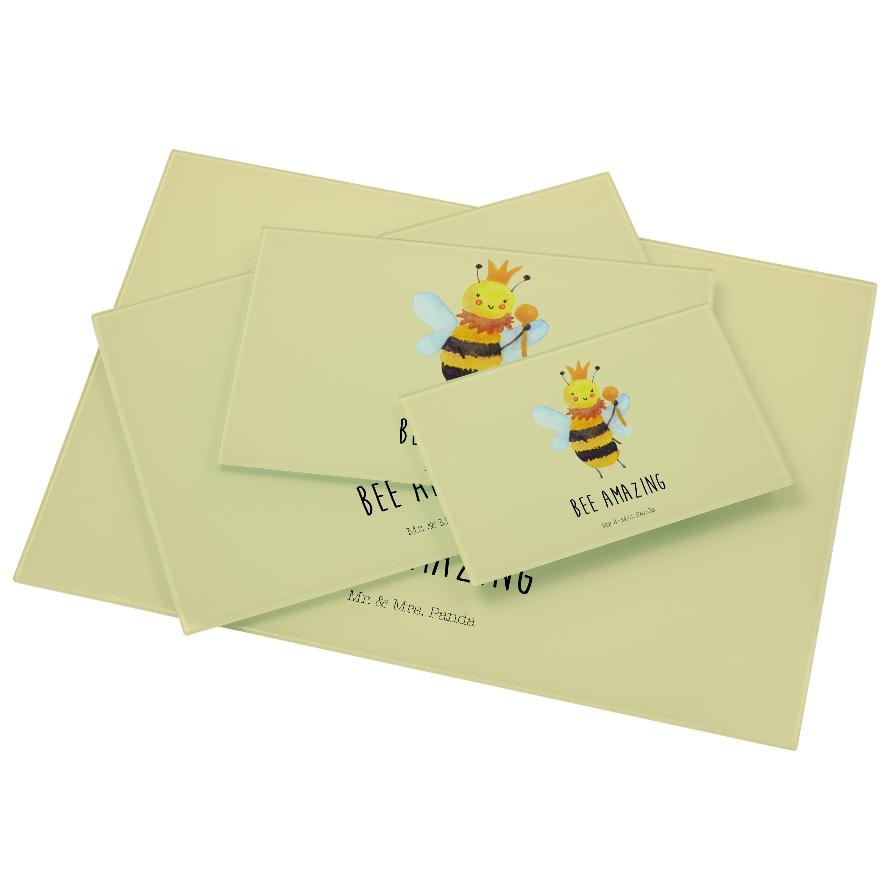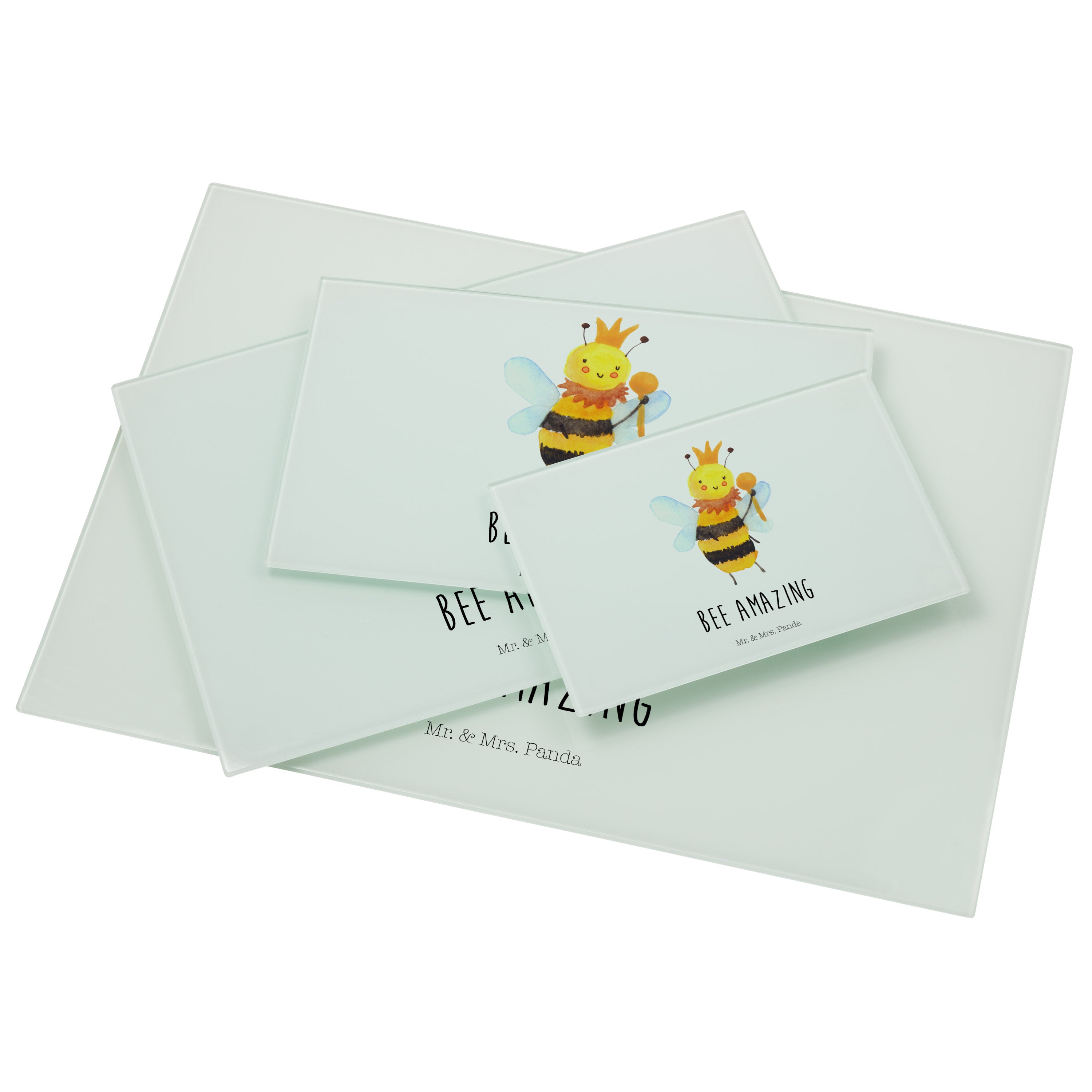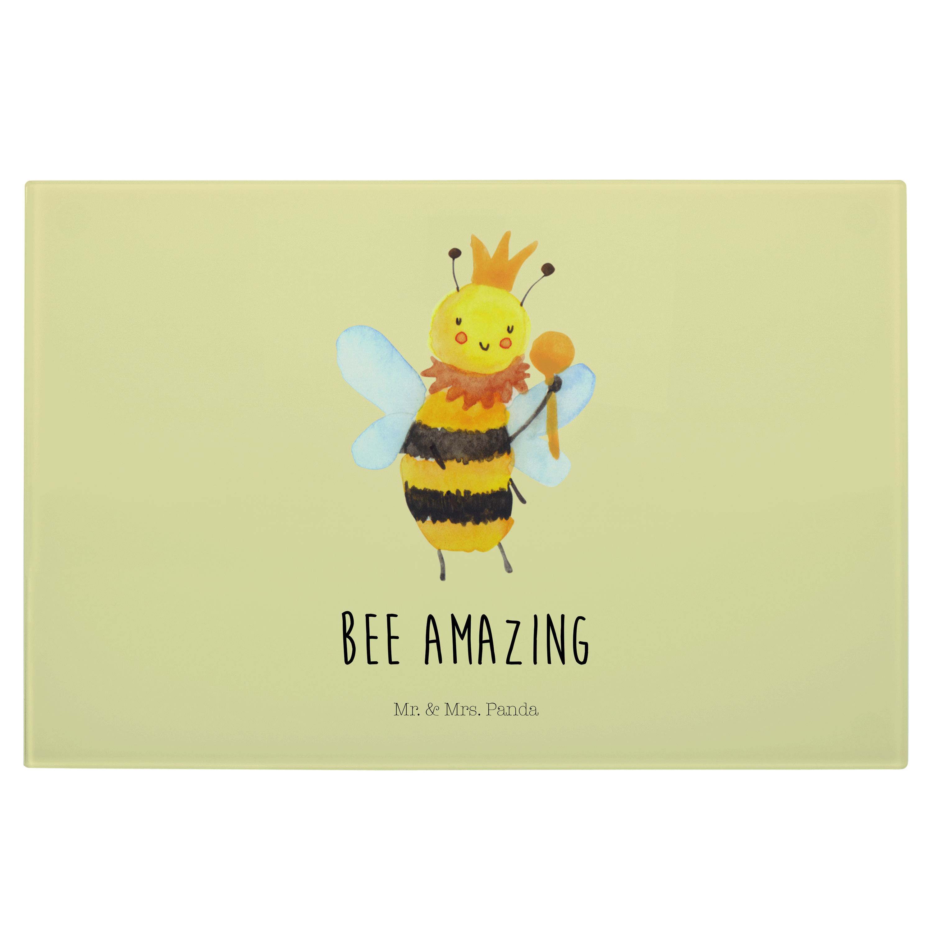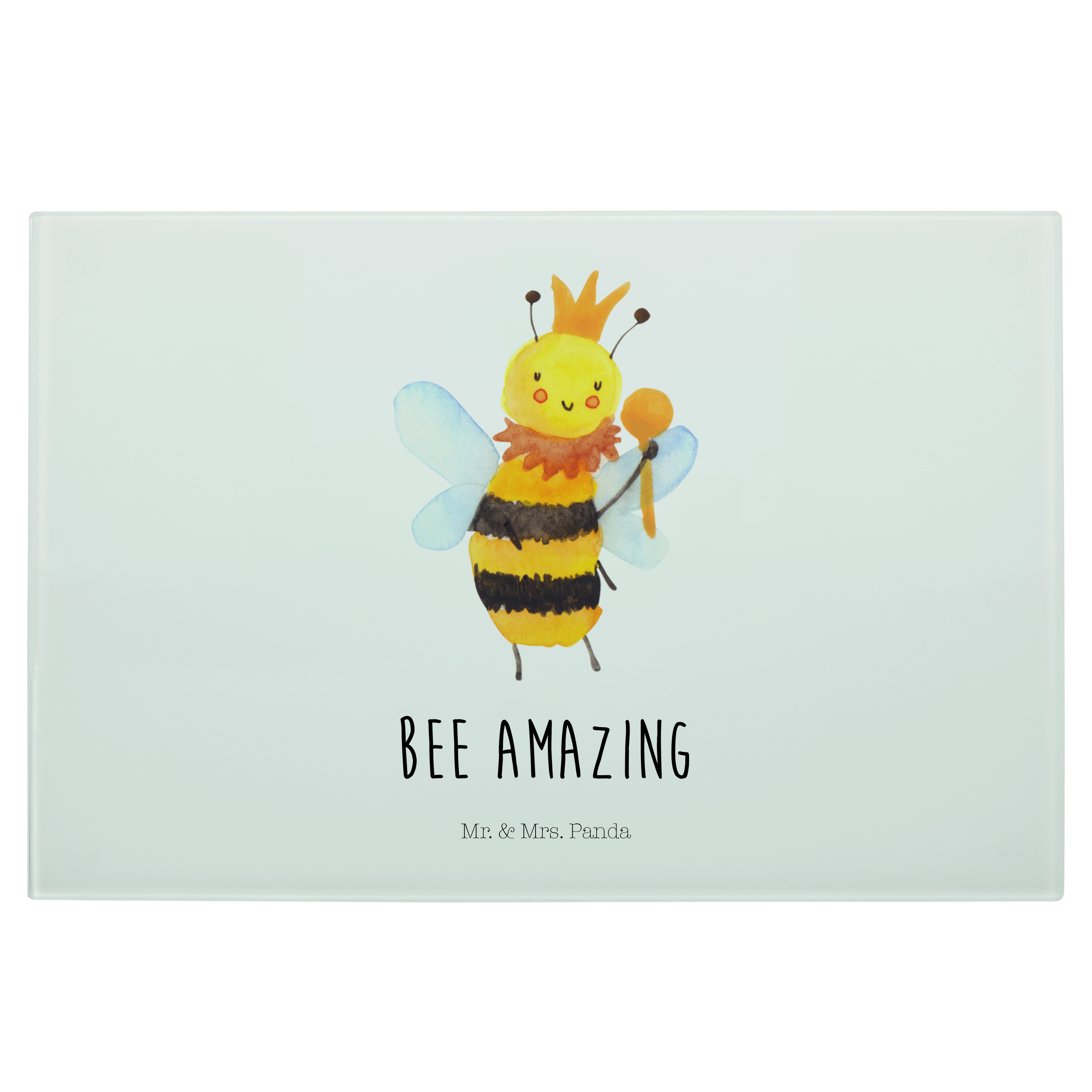 Medium Glas Schneidbrett Biene König - mit Spruch - Weiß