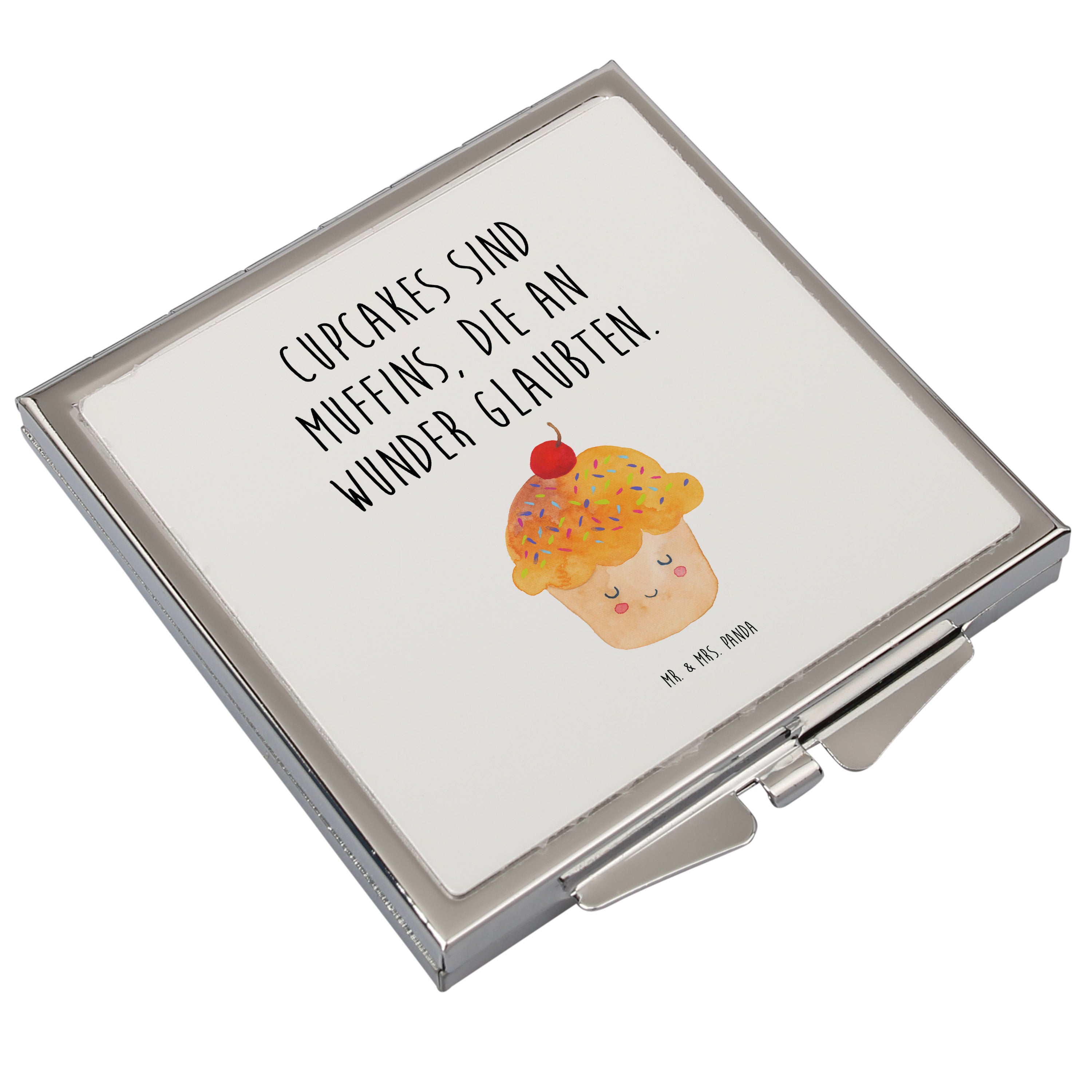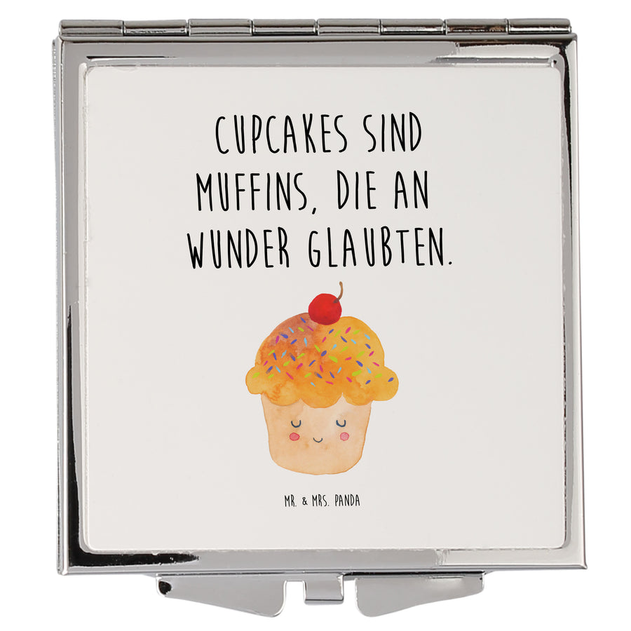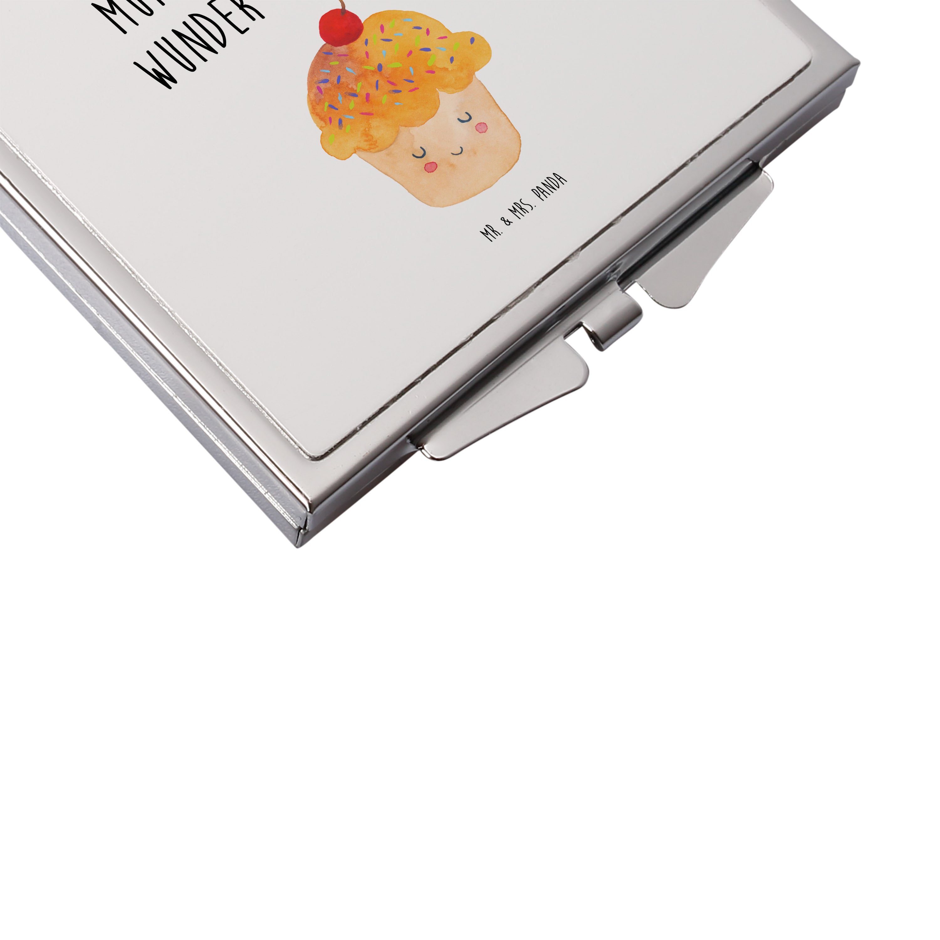 Handtaschenspiegel quadratisch Cupcake - mit Spruch - Weiß