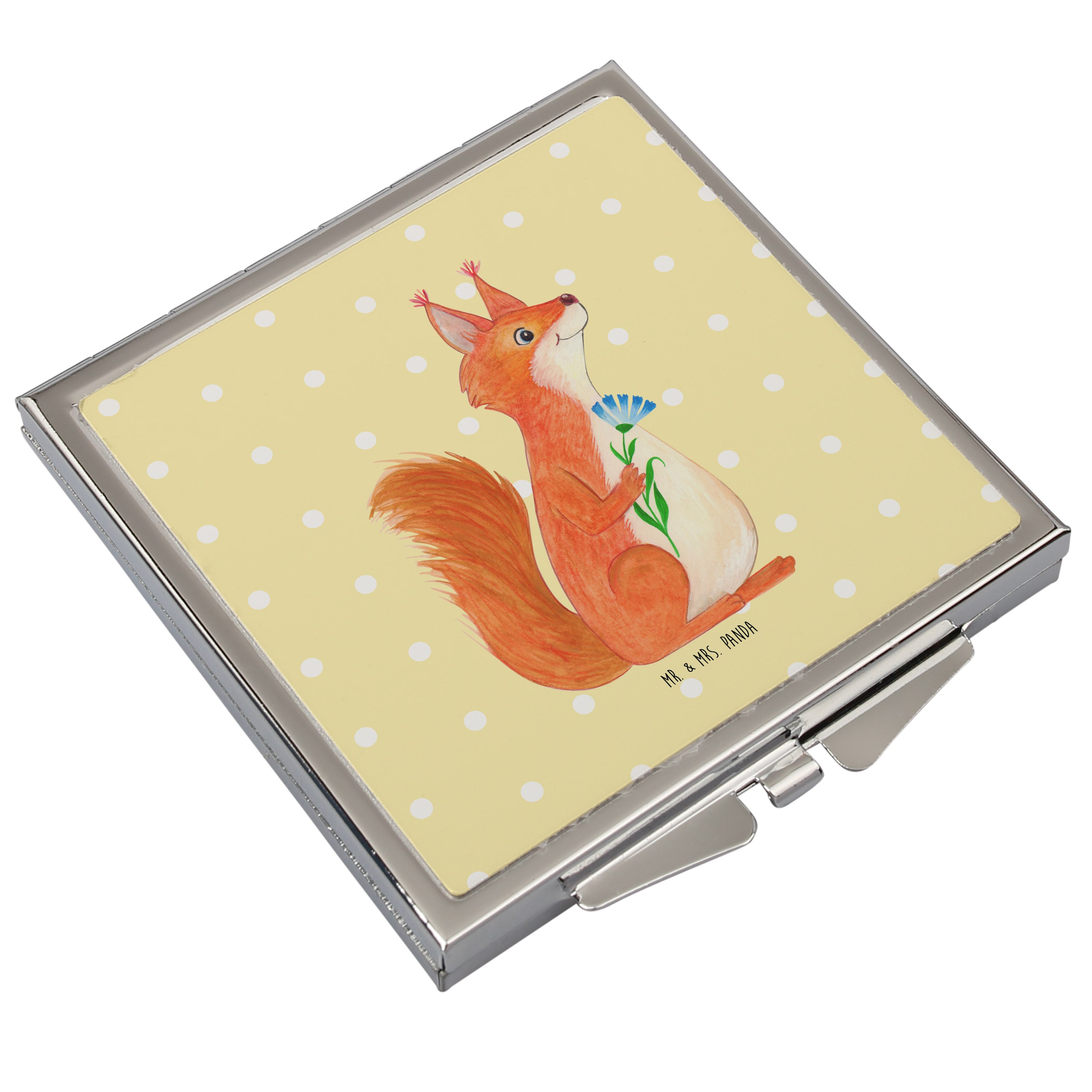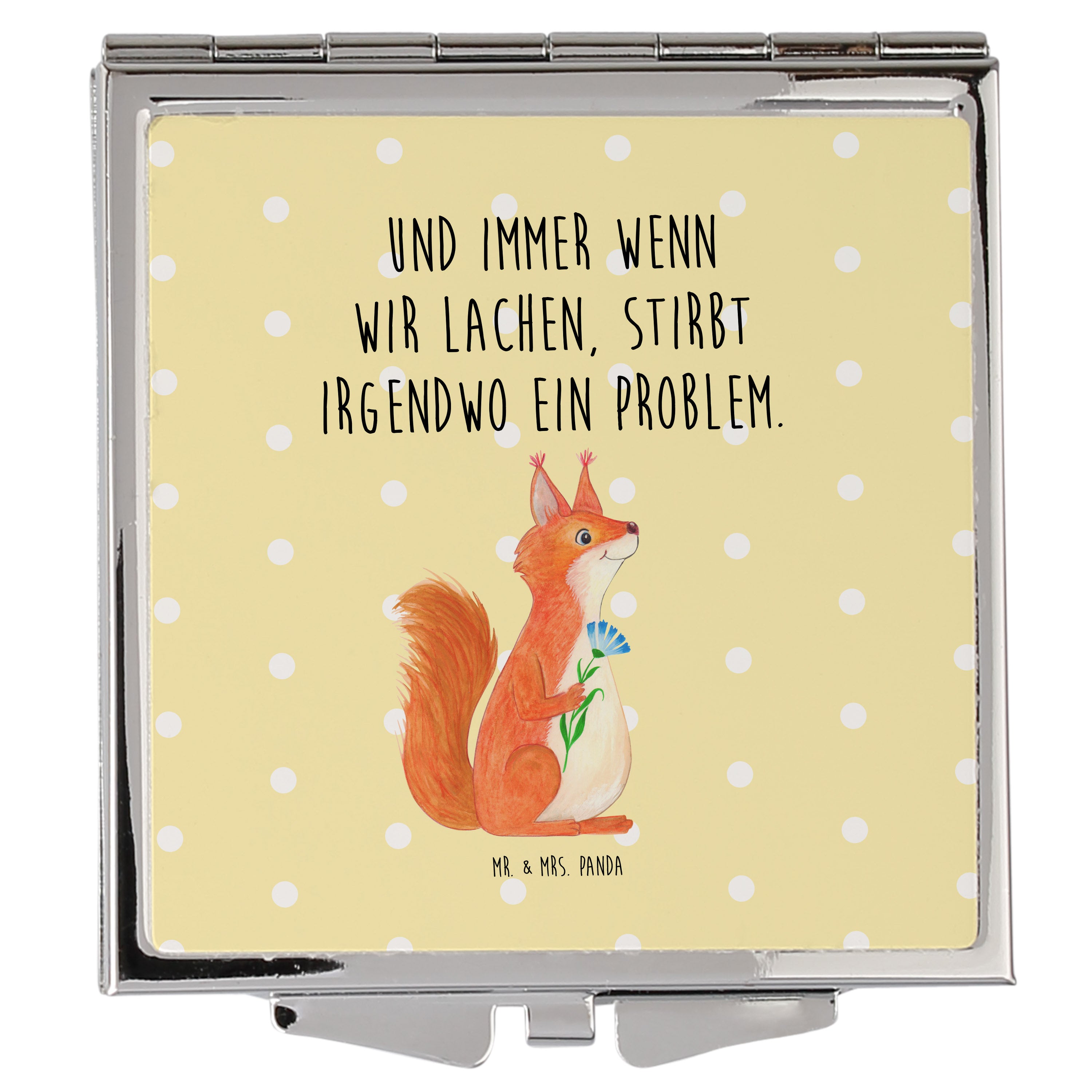 Handtaschenspiegel quadratisch Eichhörnchen Blume - mit Spruch - Gelb Pastell