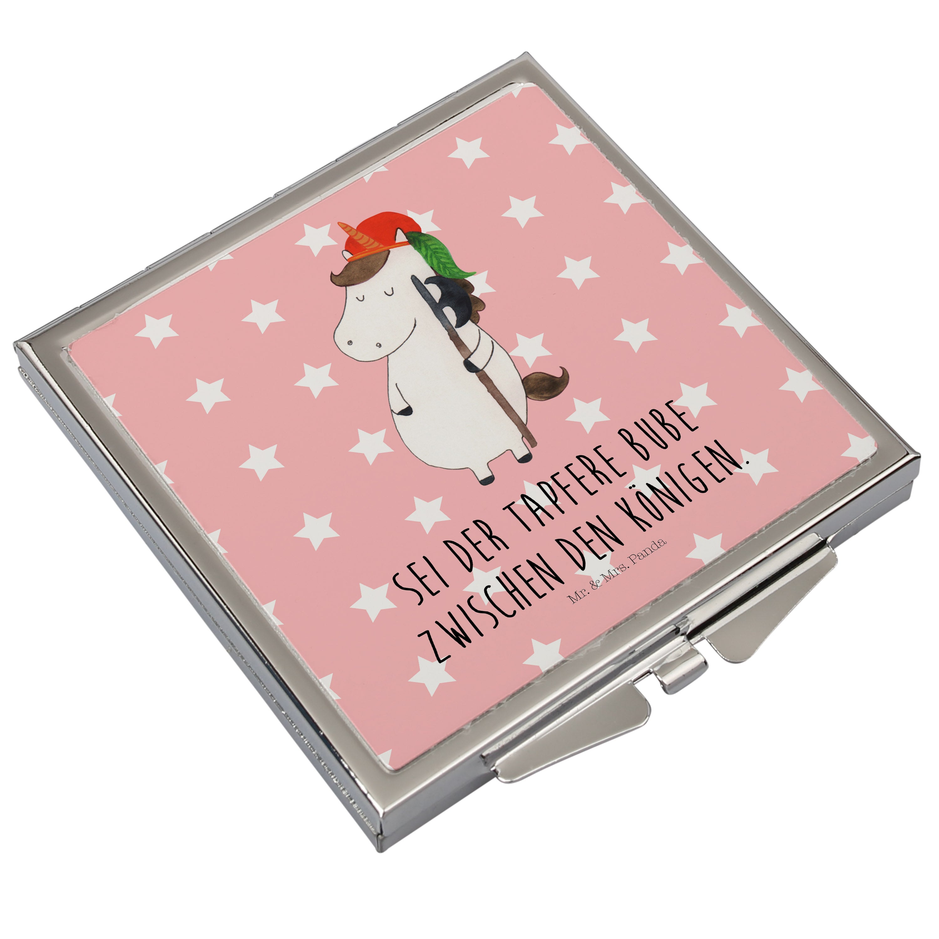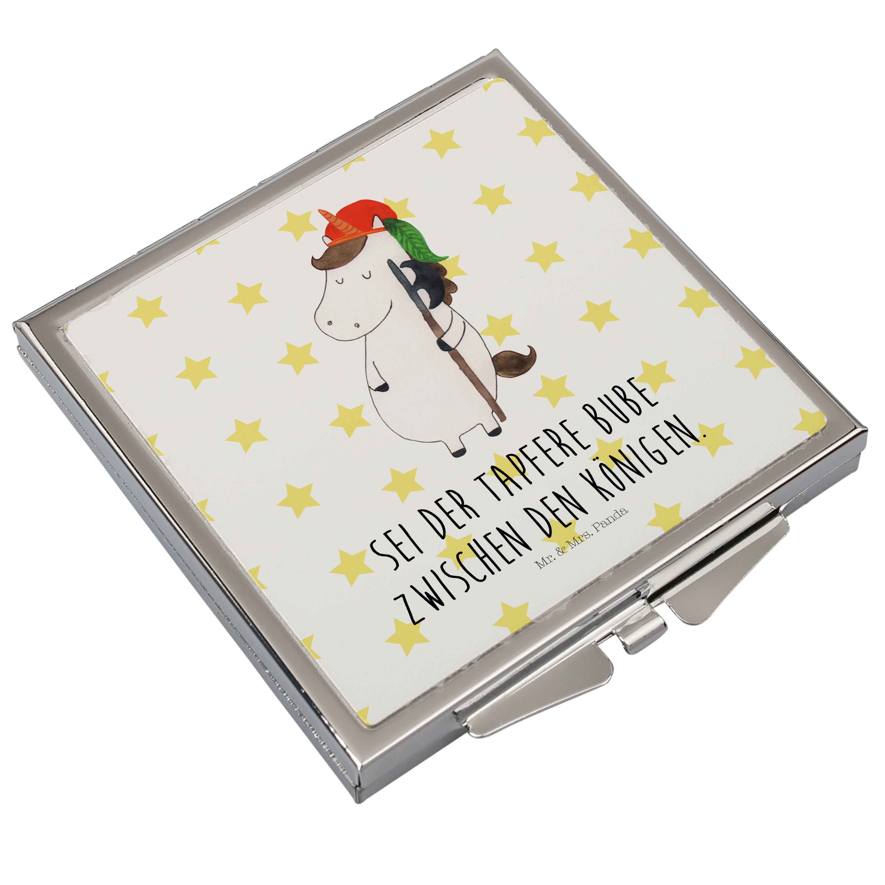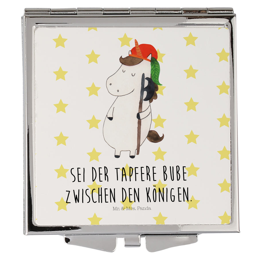 Handtaschenspiegel quadratisch Einhorn Bube - mit Spruch - Weiß