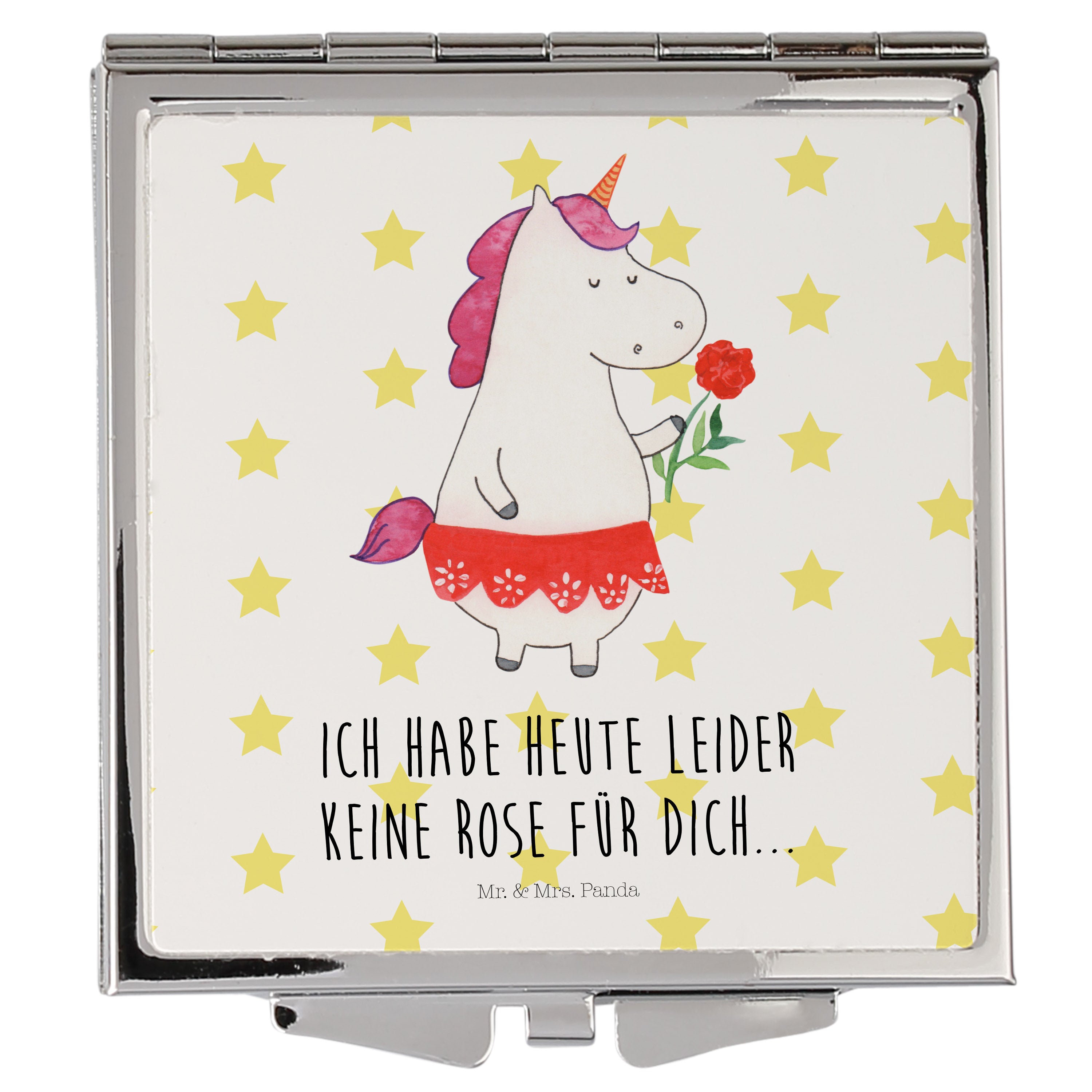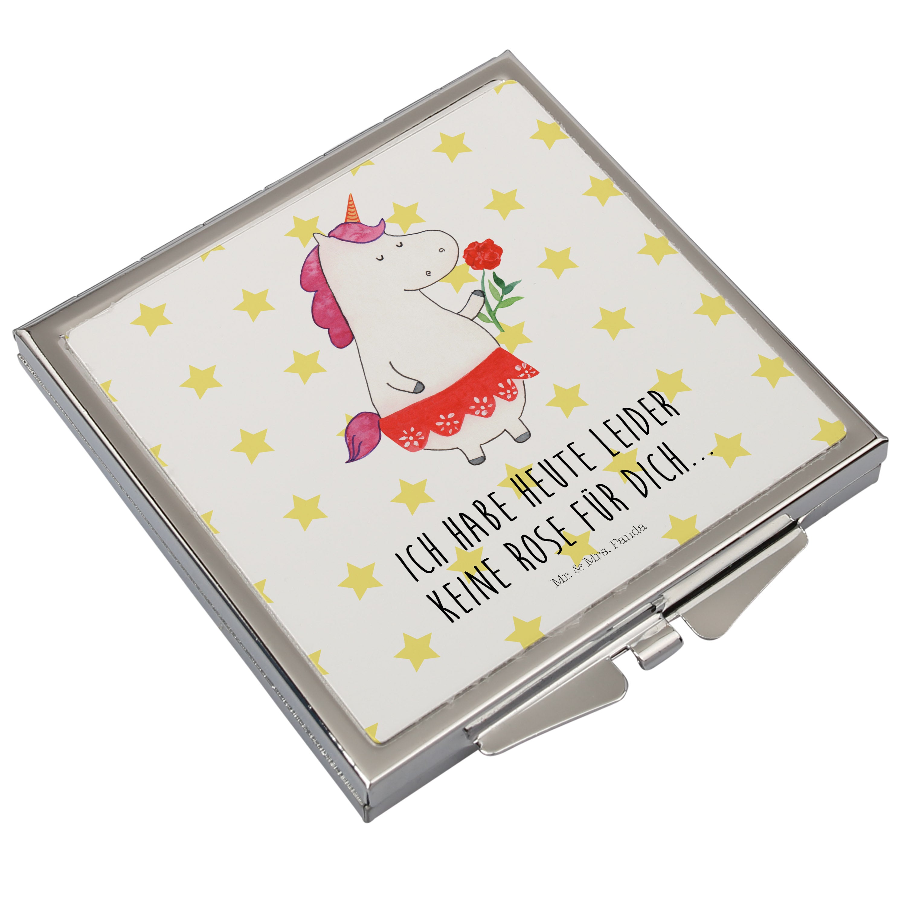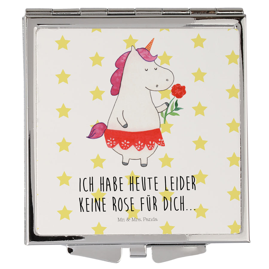 Handtaschenspiegel quadratisch Einhorn Dame - mit Spruch - Weiß