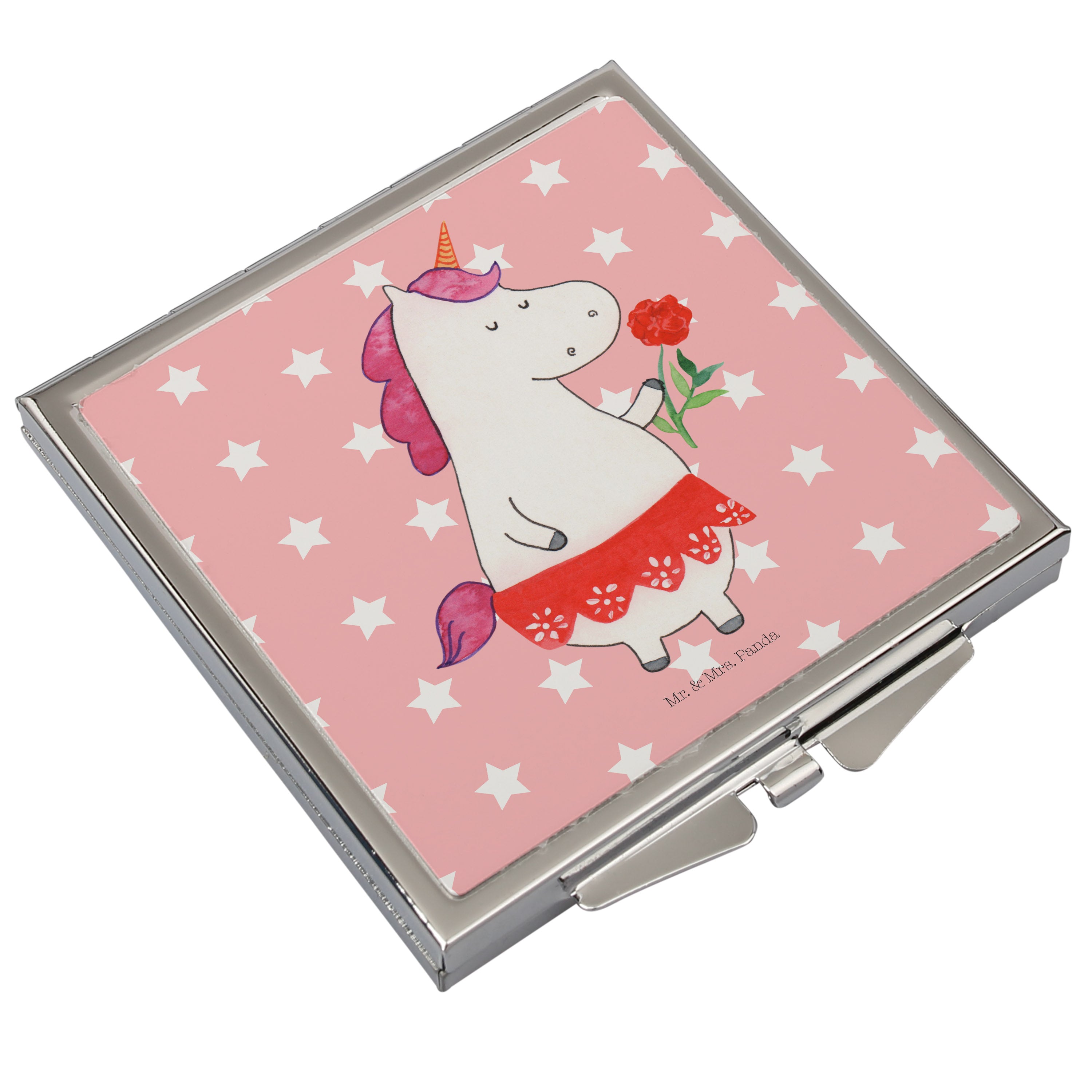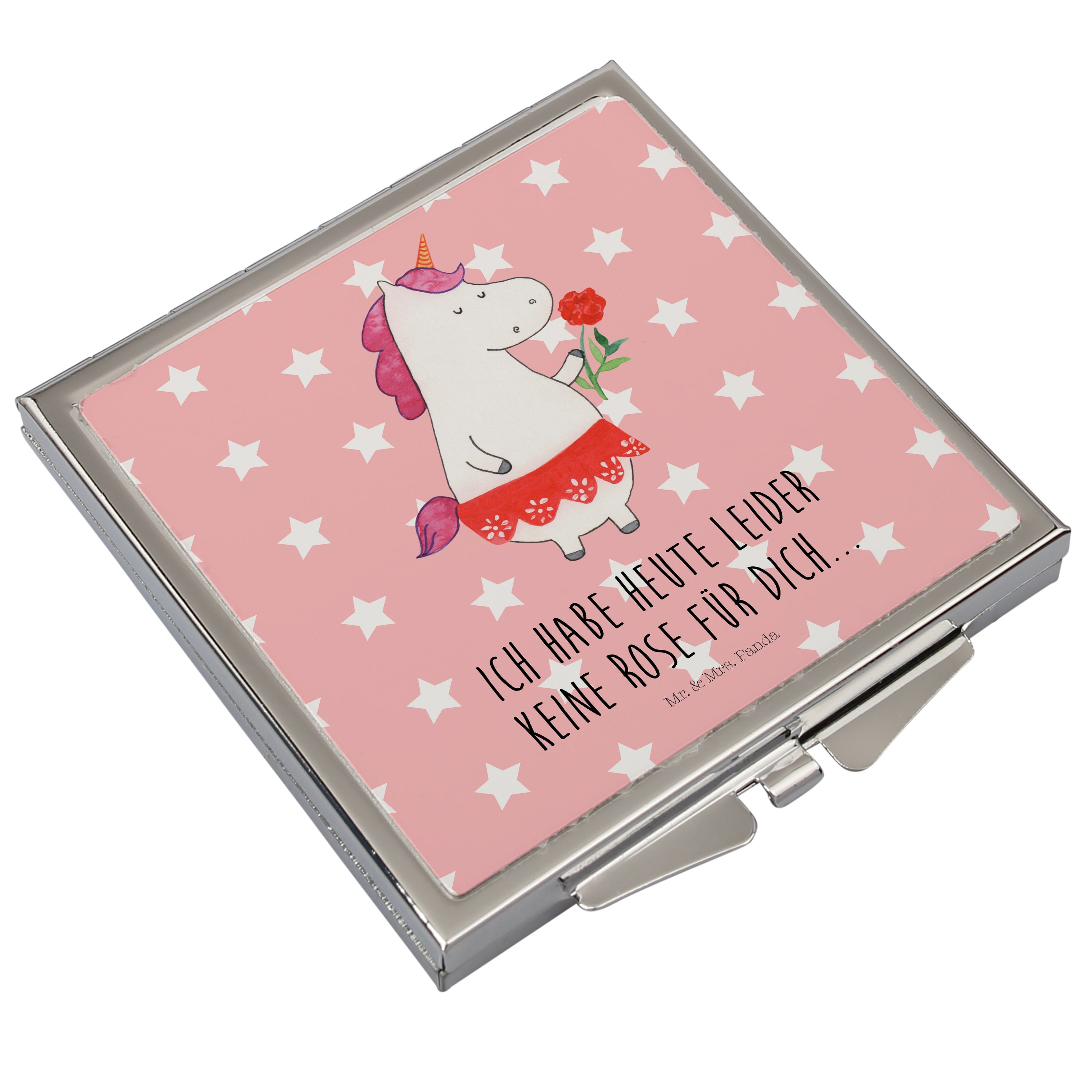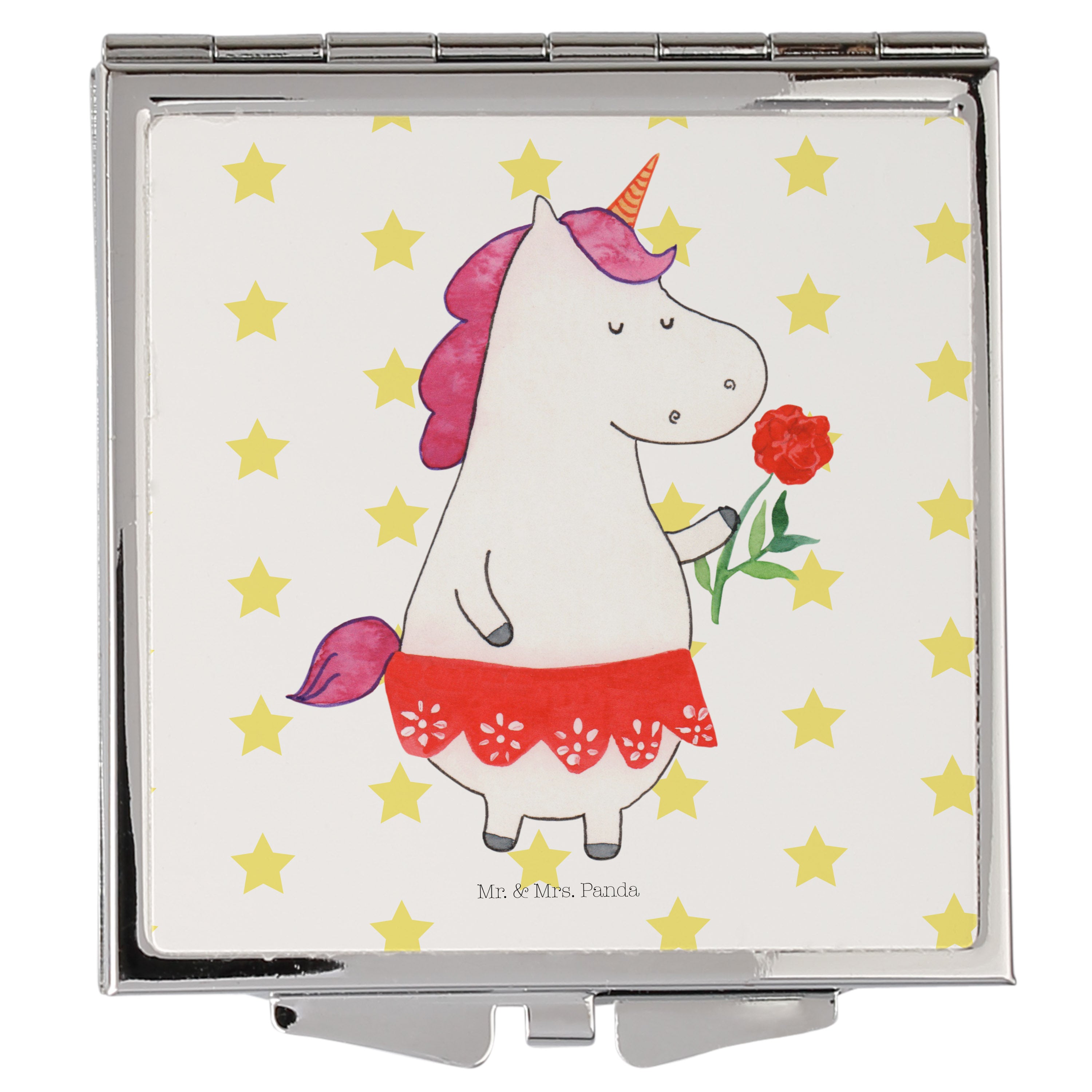 Handtaschenspiegel quadratisch Einhorn Dame - mit Spruch - Weiß