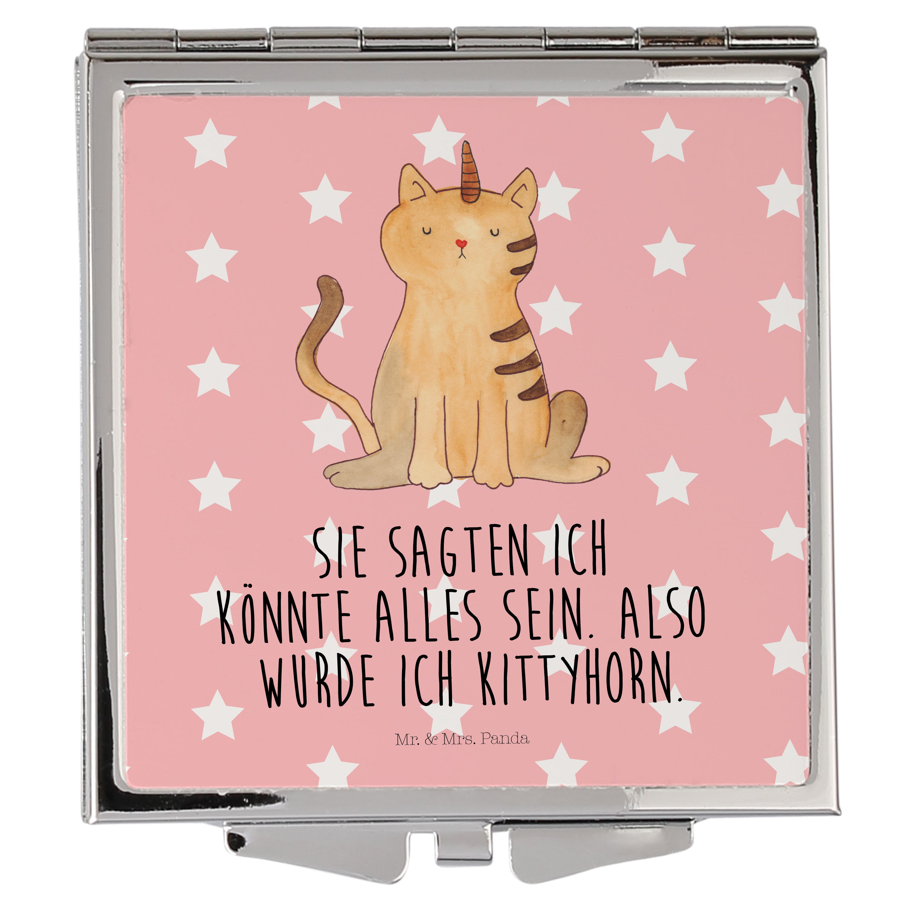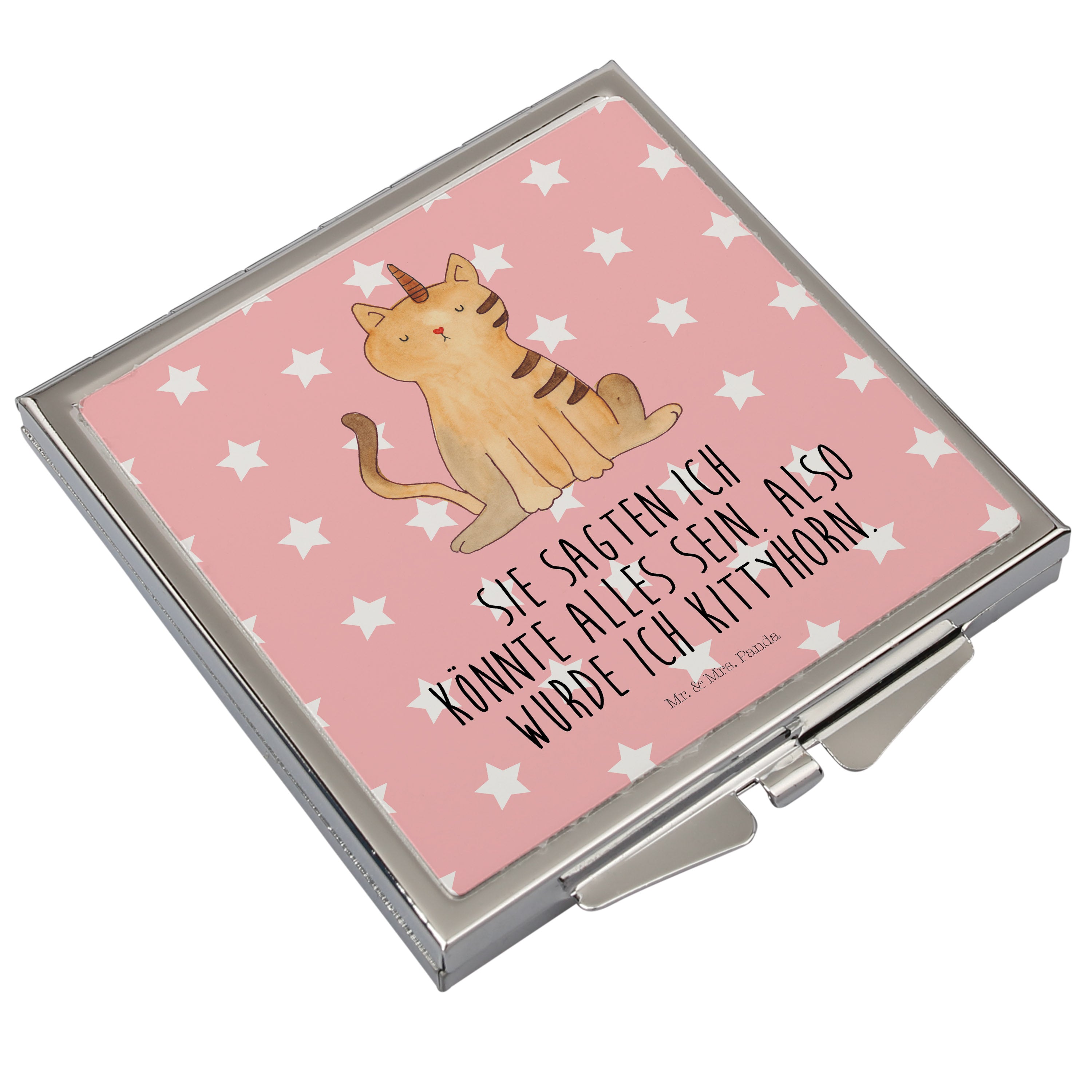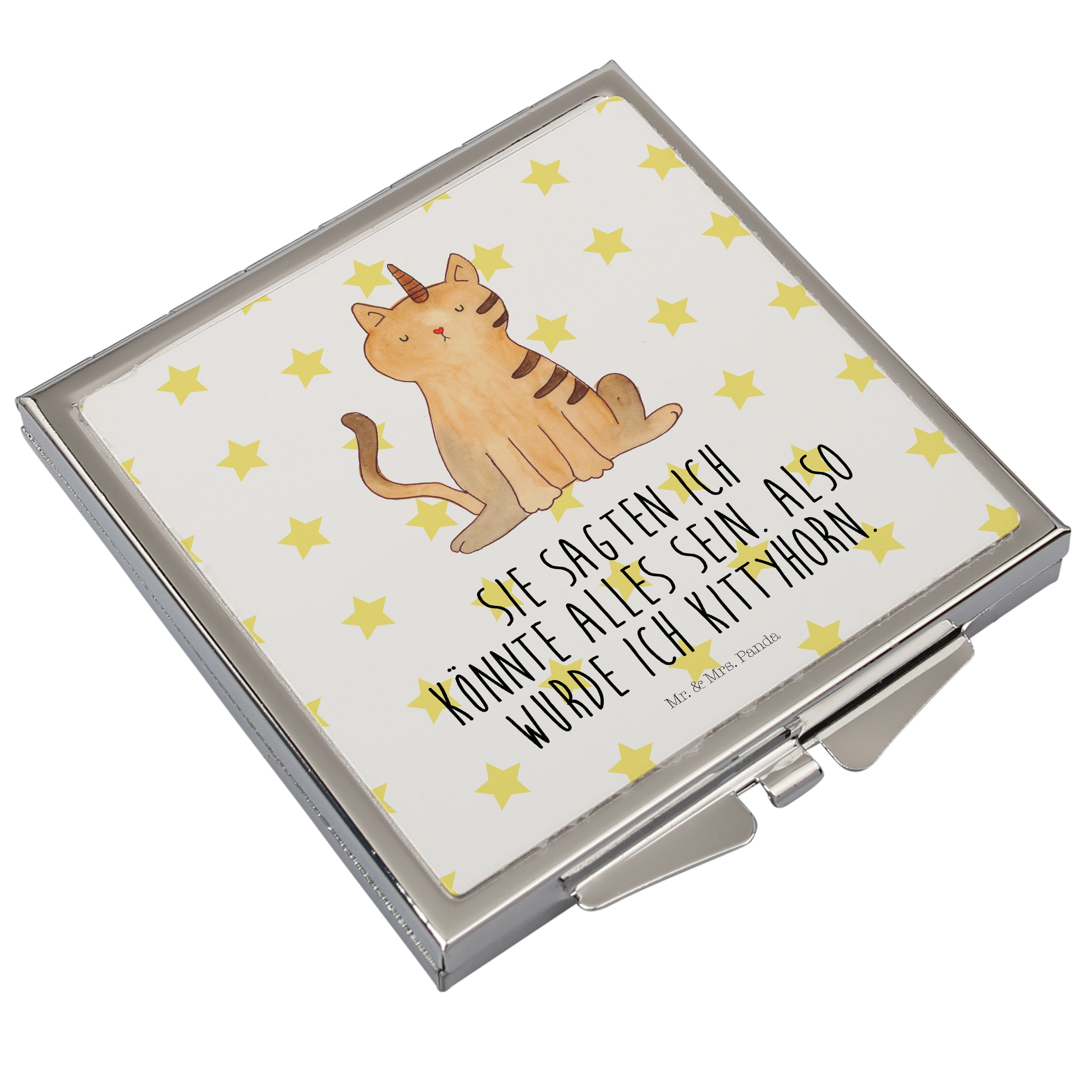 Handtaschenspiegel quadratisch Einhorn Katze - mit Spruch - Weiß