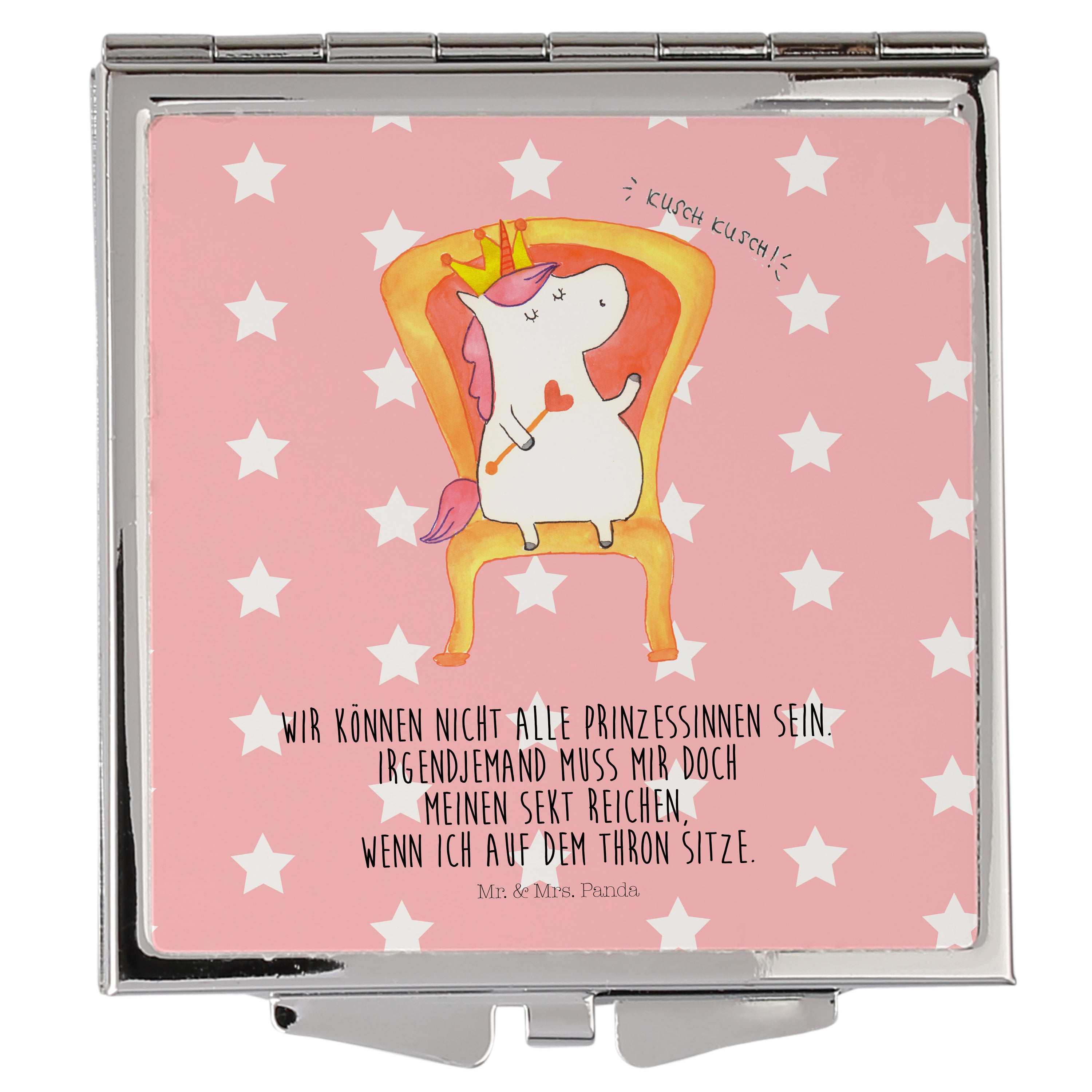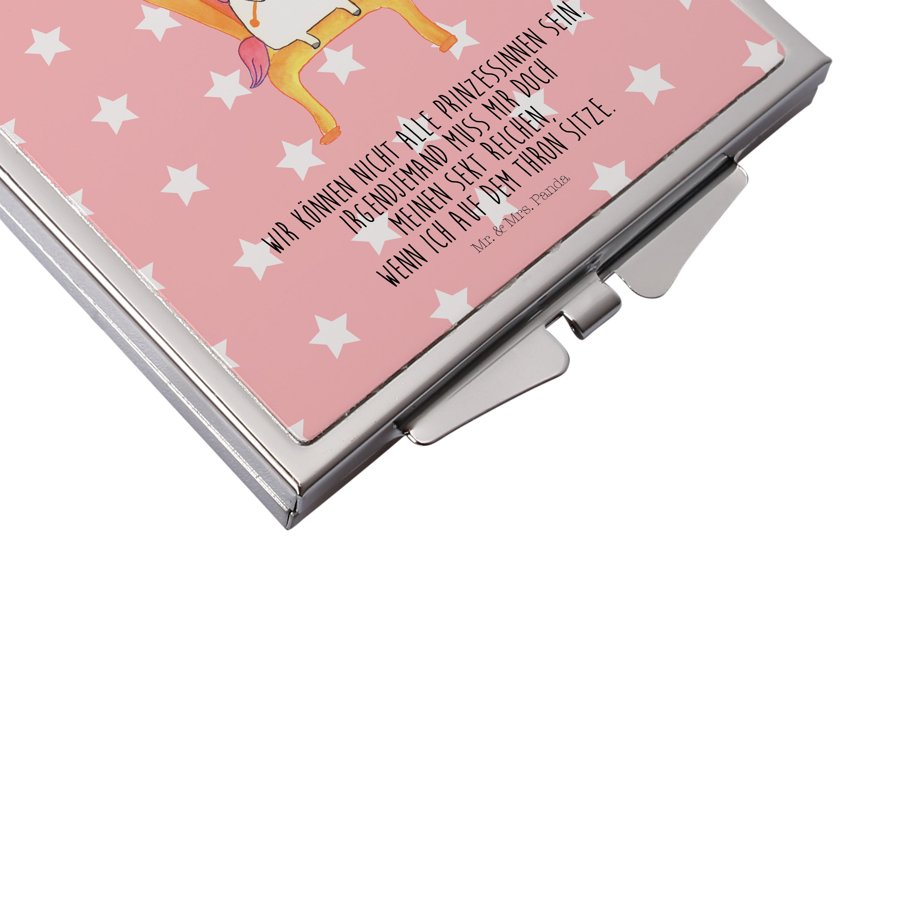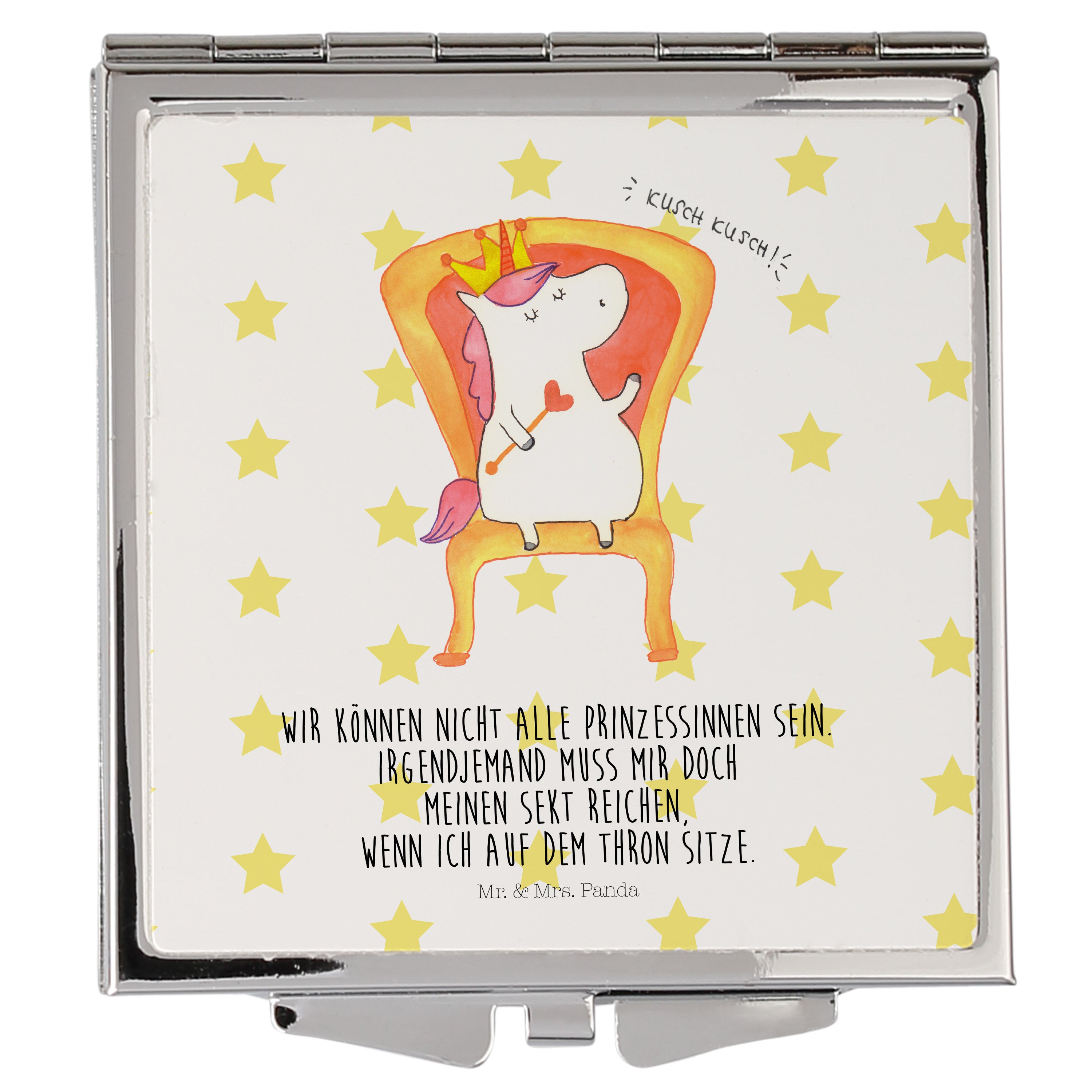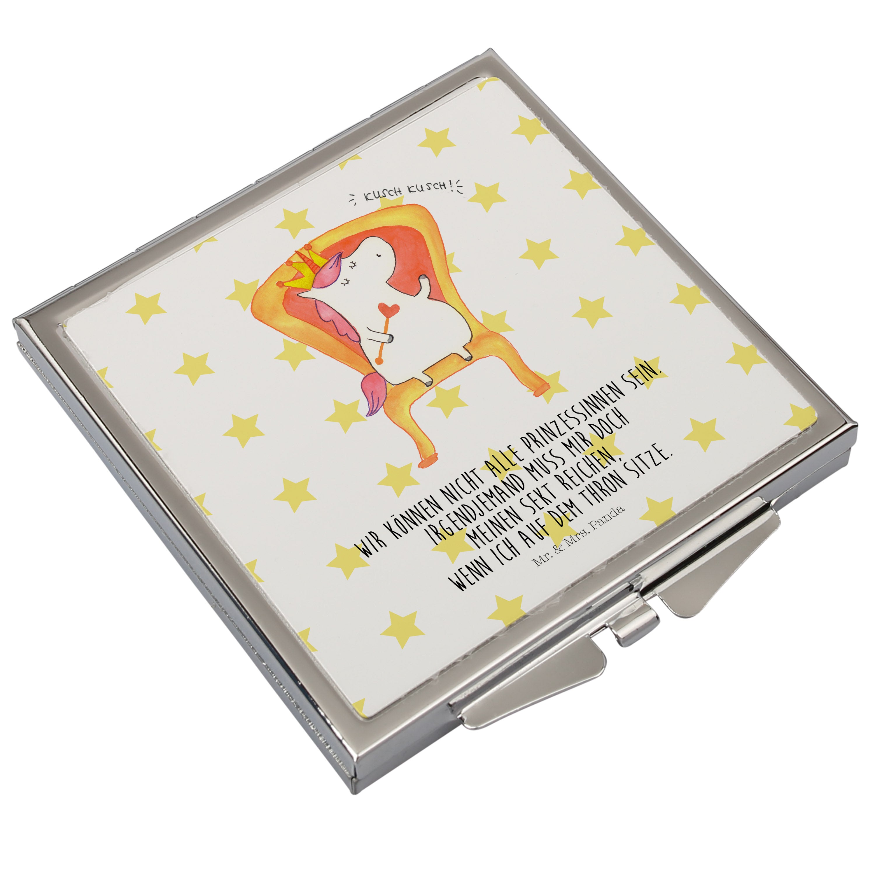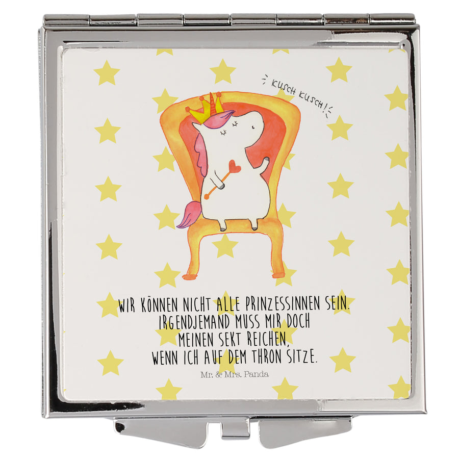 Handtaschenspiegel quadratisch Einhorn König - mit Spruch - Weiß