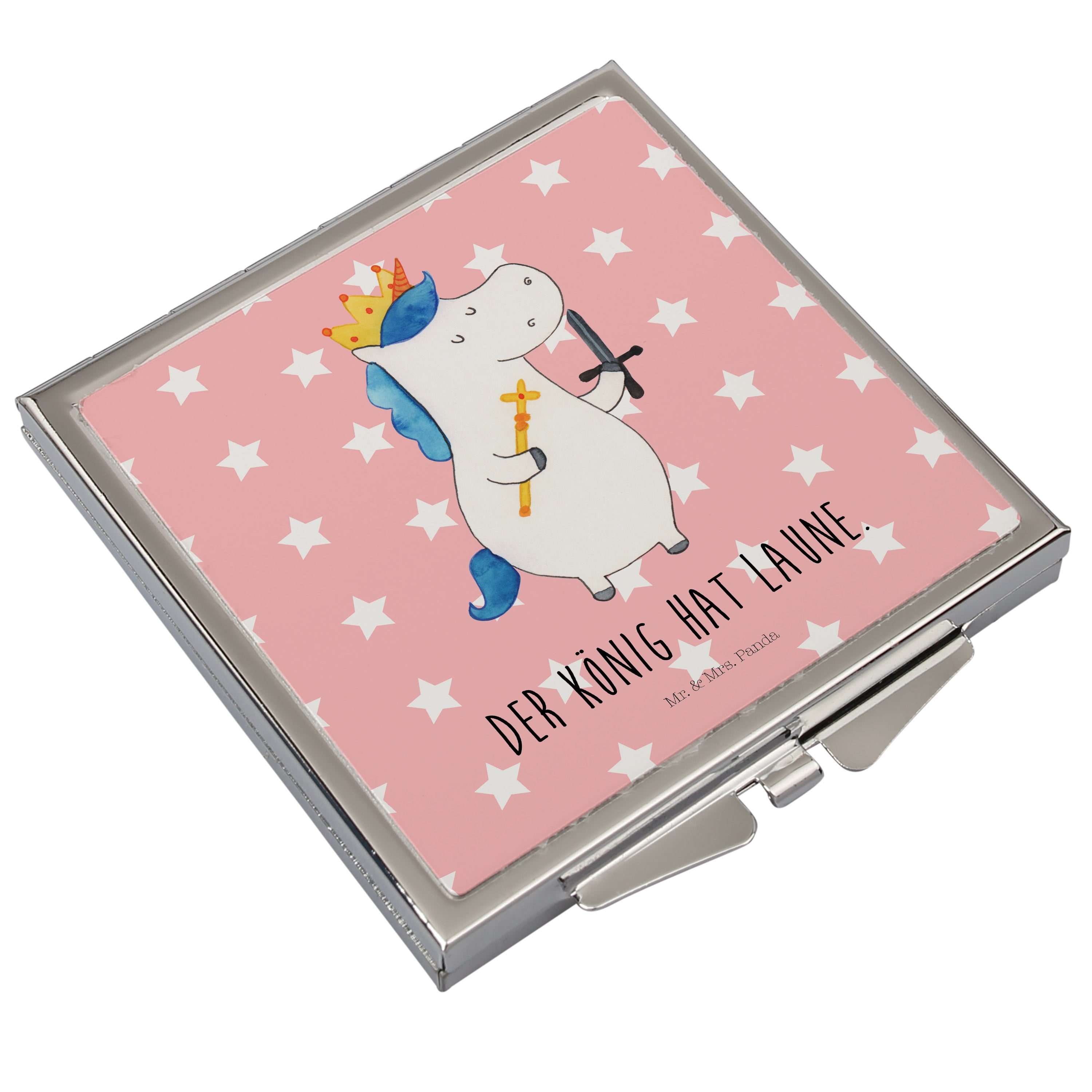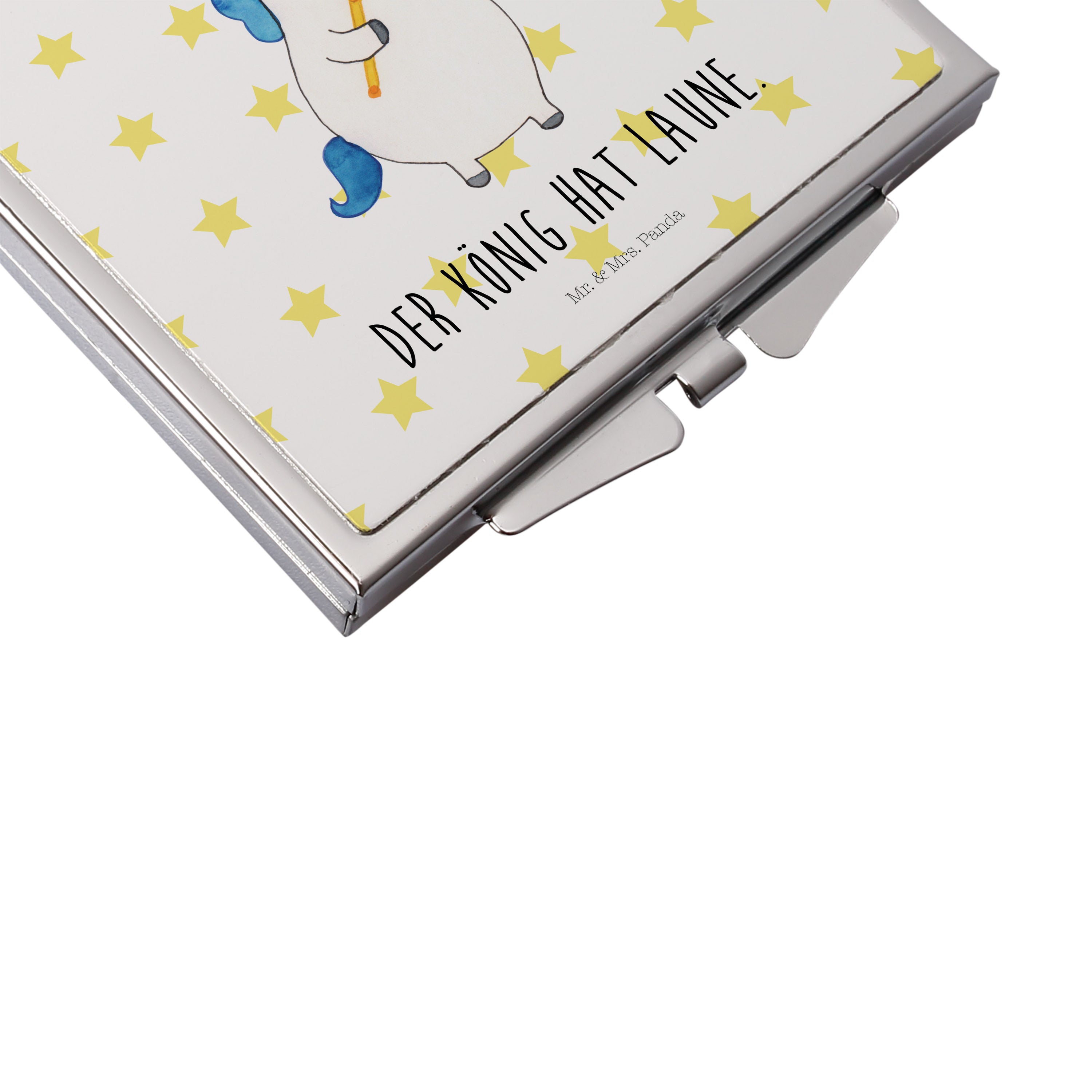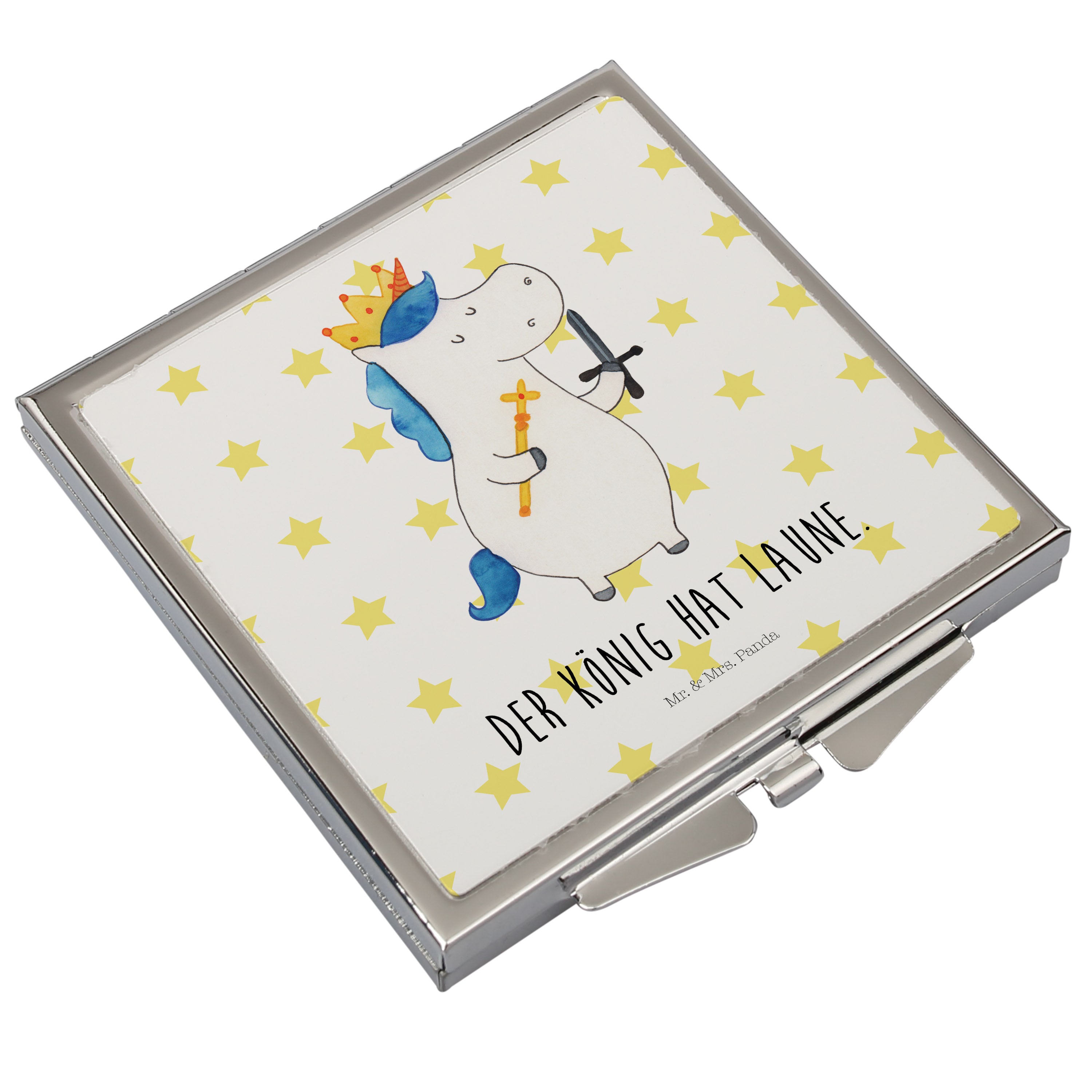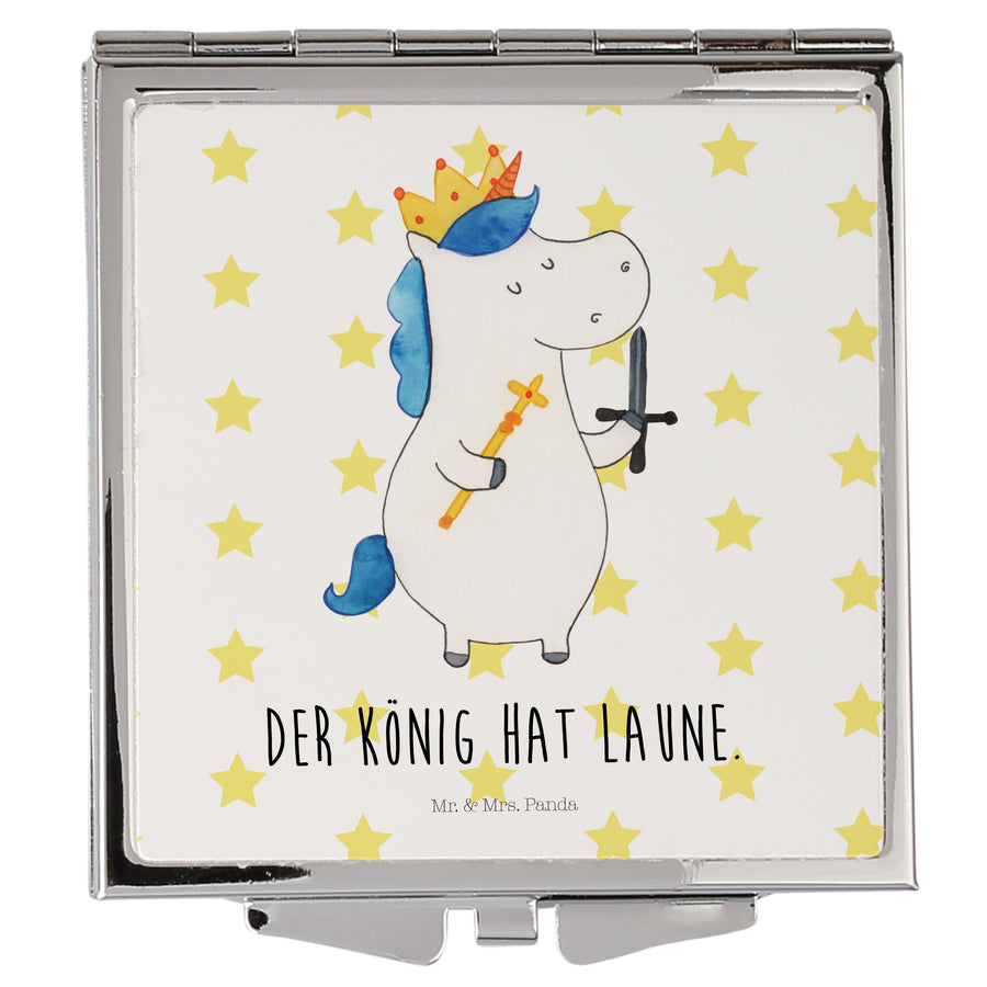 Handtaschenspiegel quadratisch Einhorn König mit Schwert - mit Spruch - Weiß