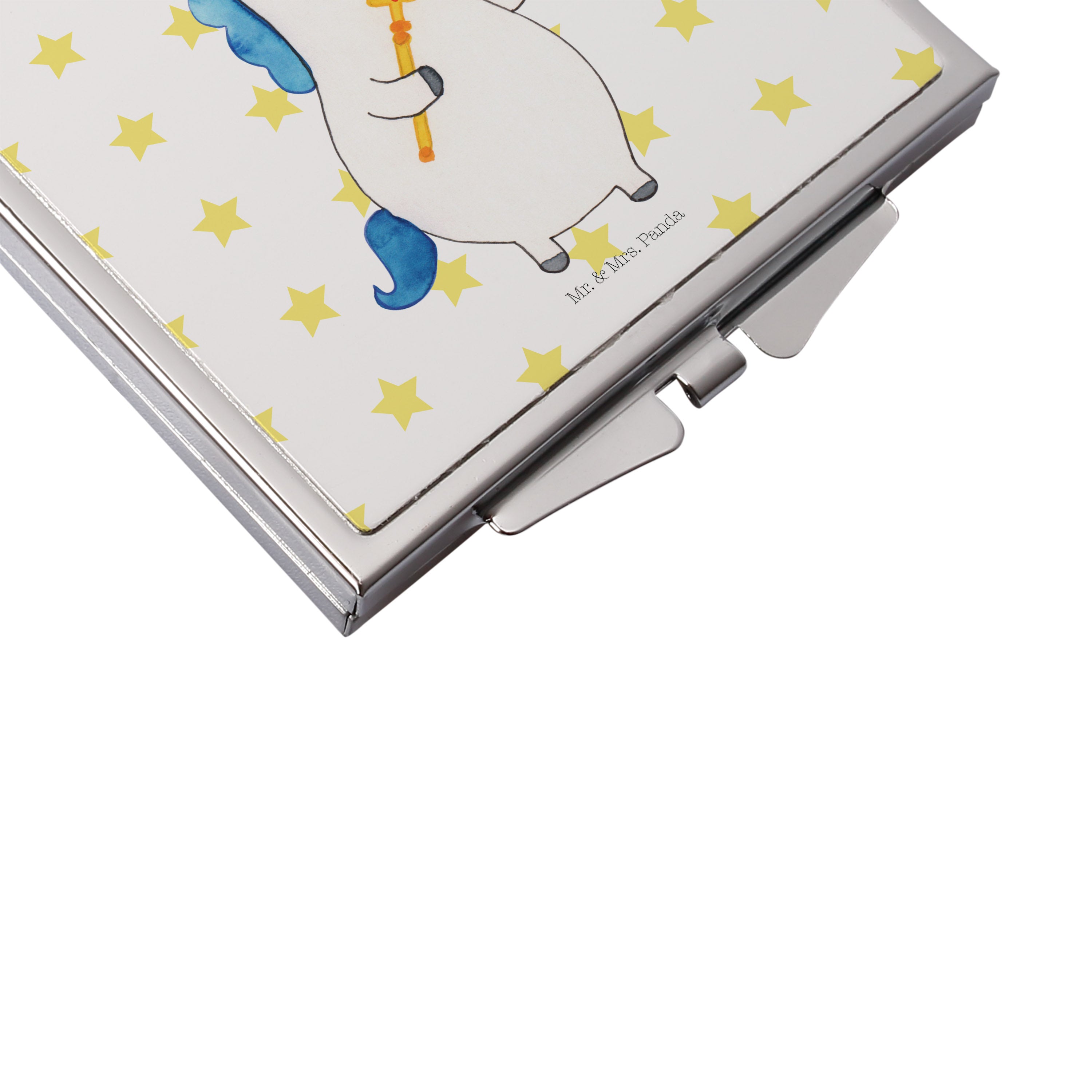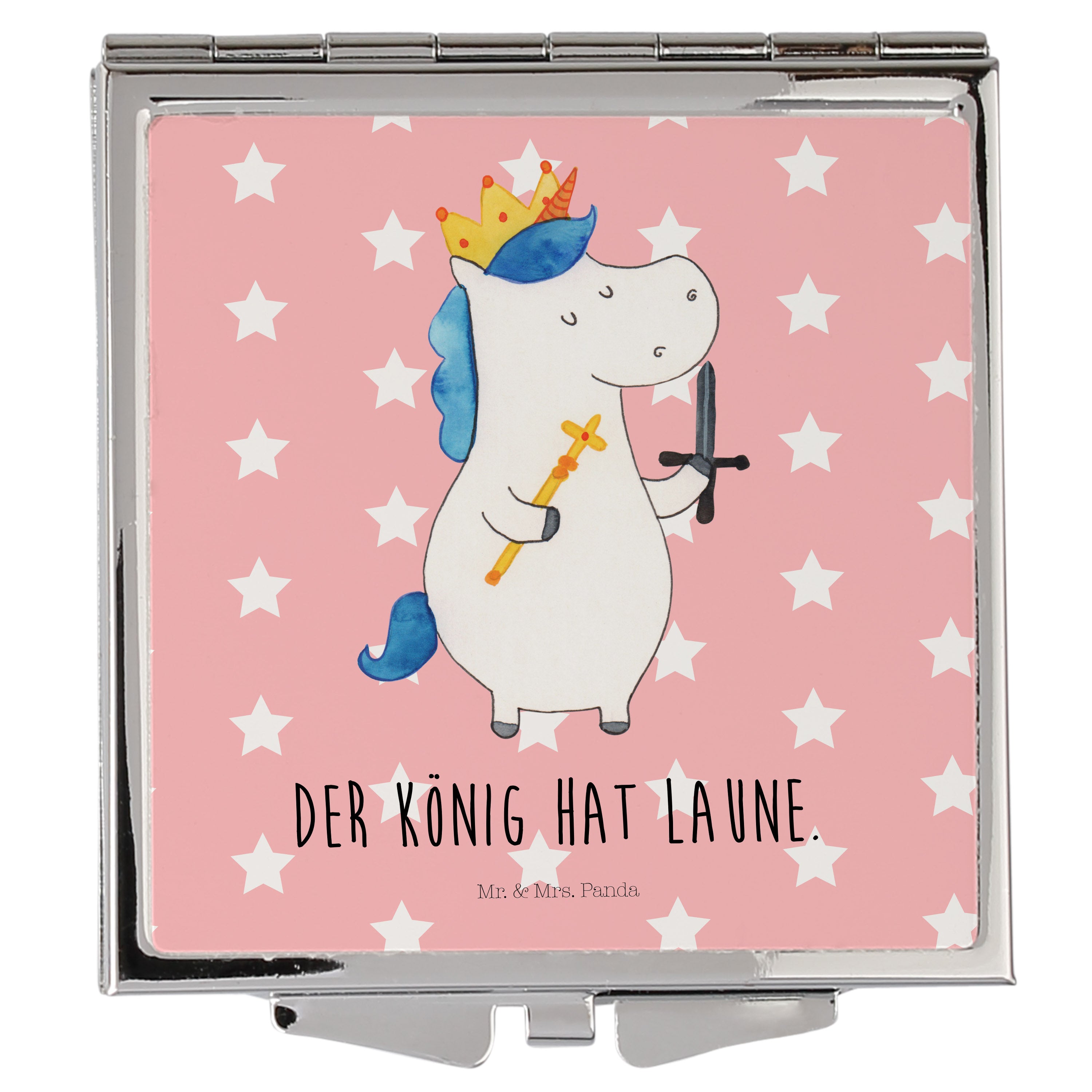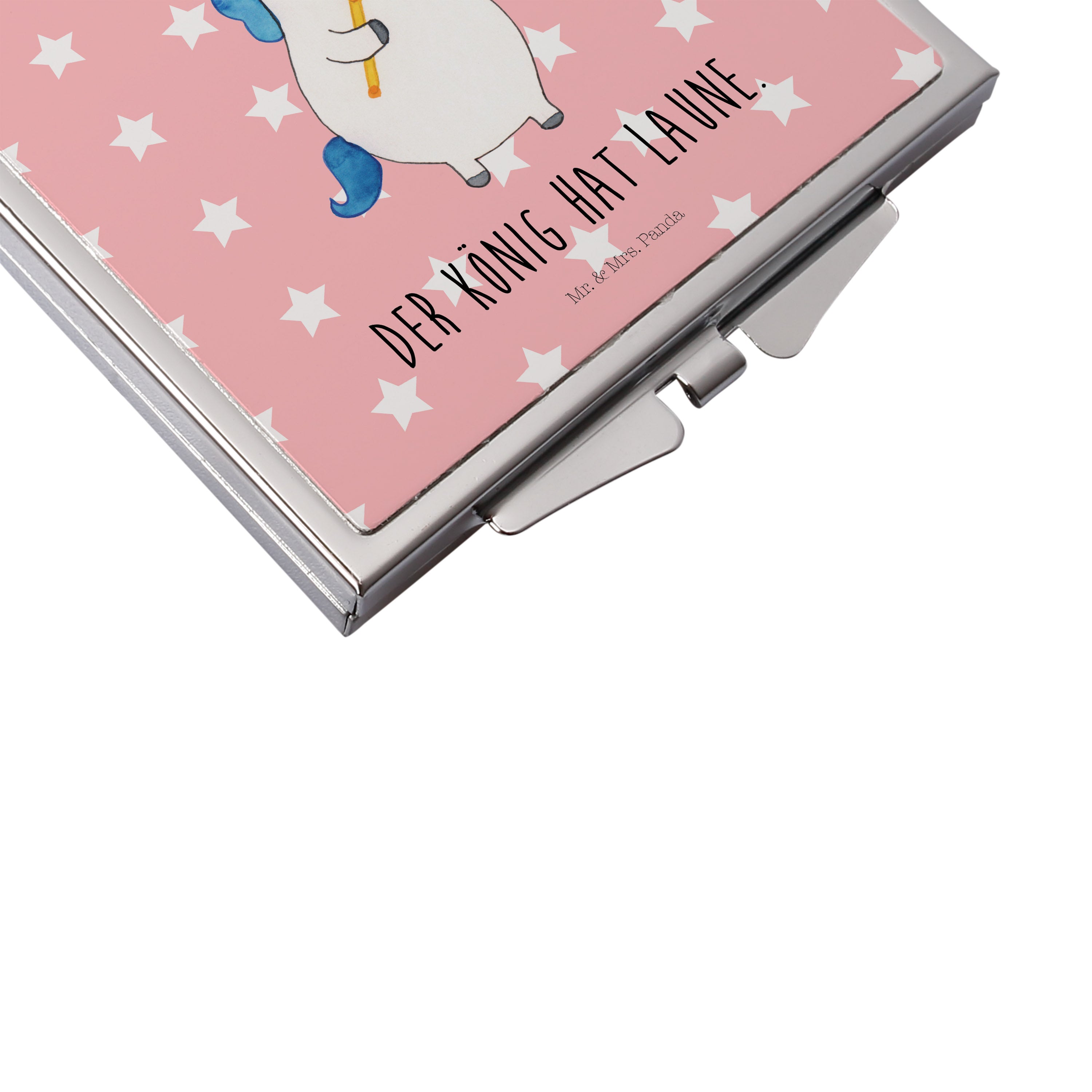 Handtaschenspiegel quadratisch Einhorn König mit Schwert - mit Spruch - Weiß