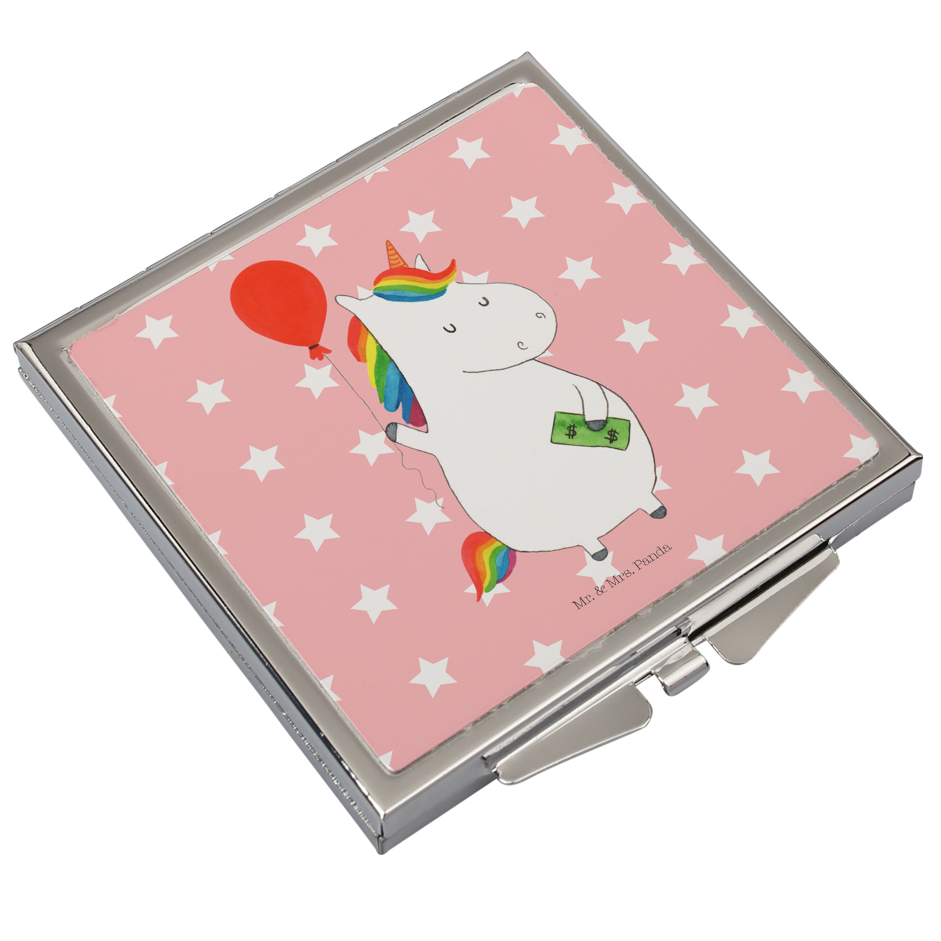 Handtaschenspiegel quadratisch Einhorn Luftballon Spiegel, Handtasche, Quadrat, silber, schminken, Schminkspiegel, Einhorn, Einhörner, Einhorn Deko, Pegasus, Unicorn, Luftballon, Geld, Lebenslust, Freude, Geschenk, Freundin