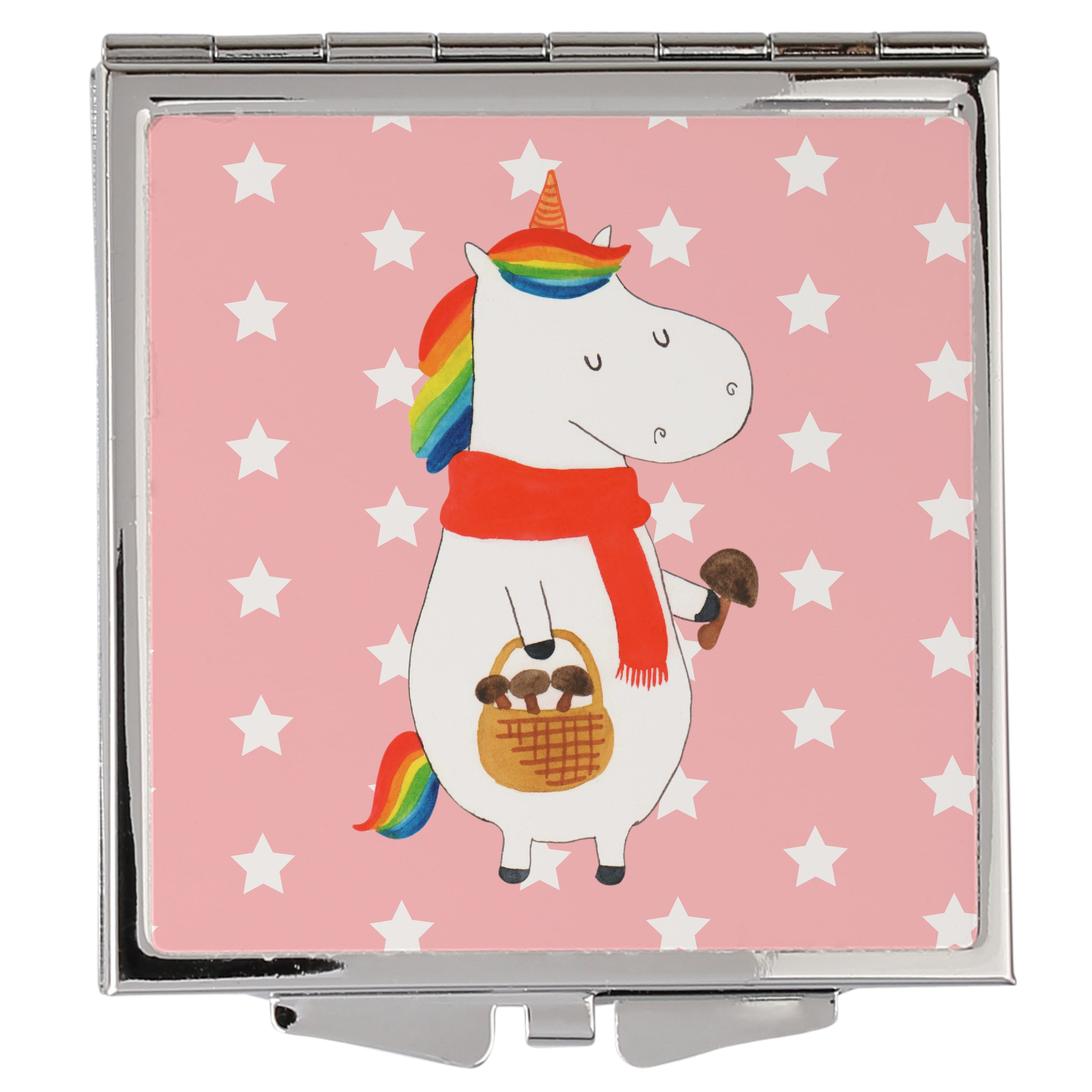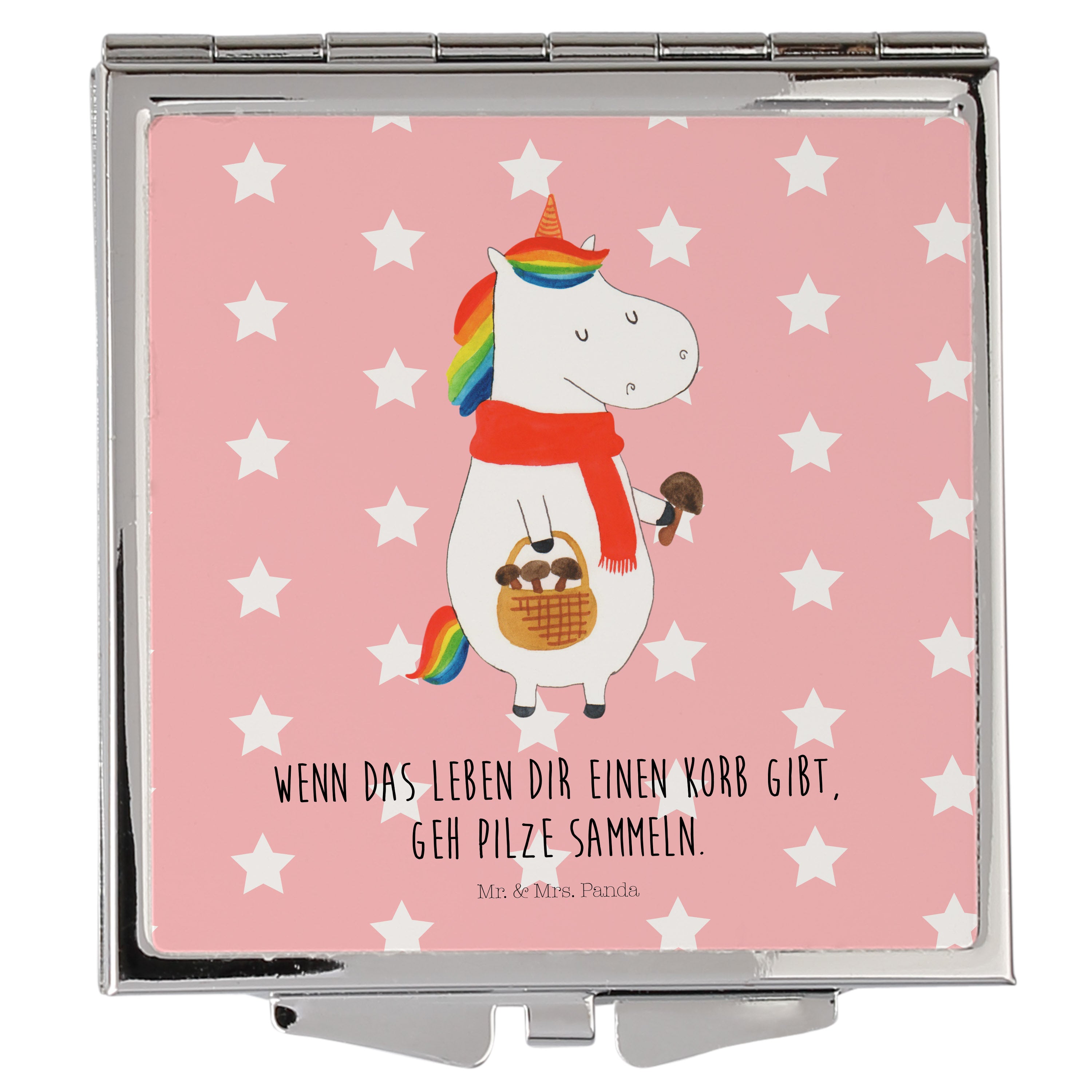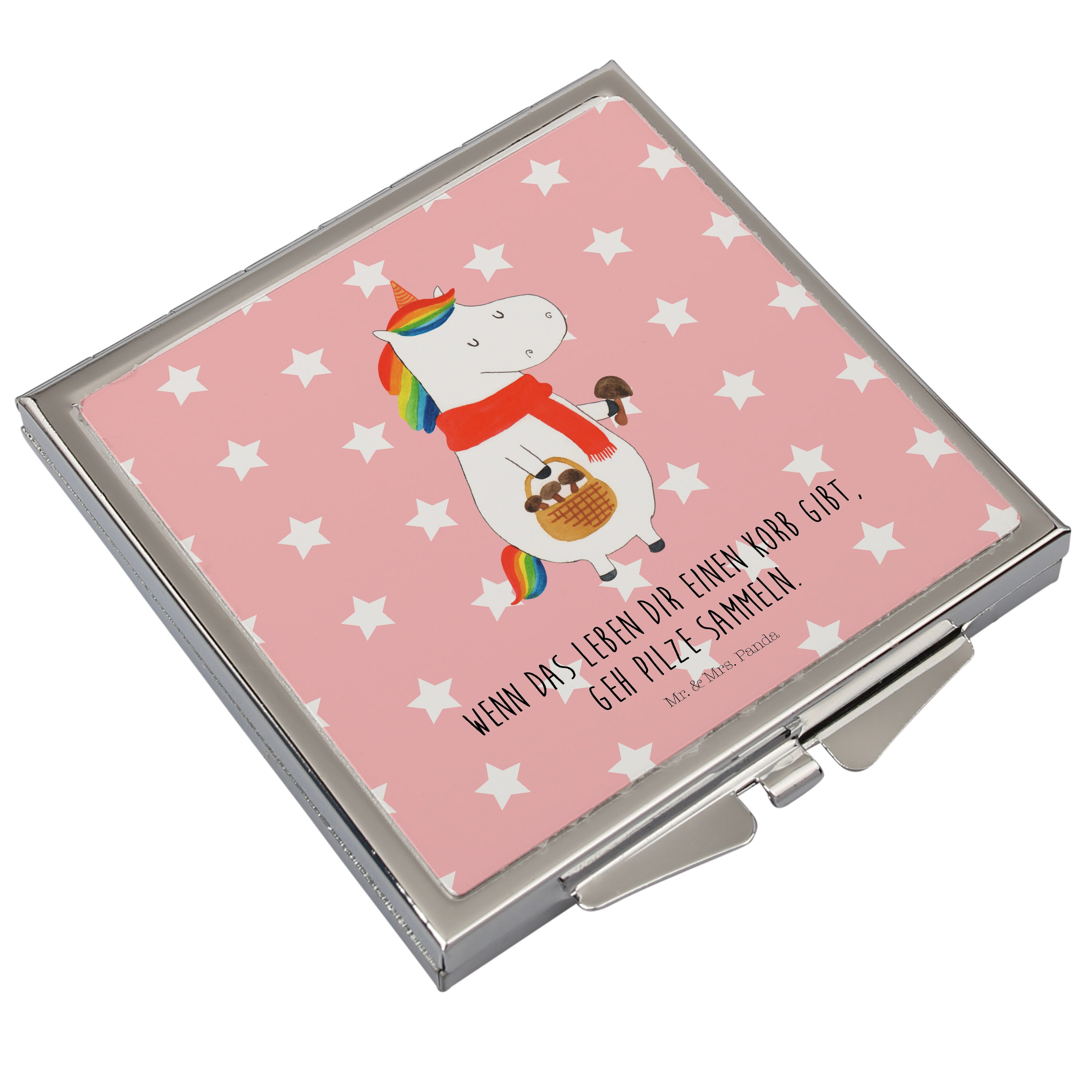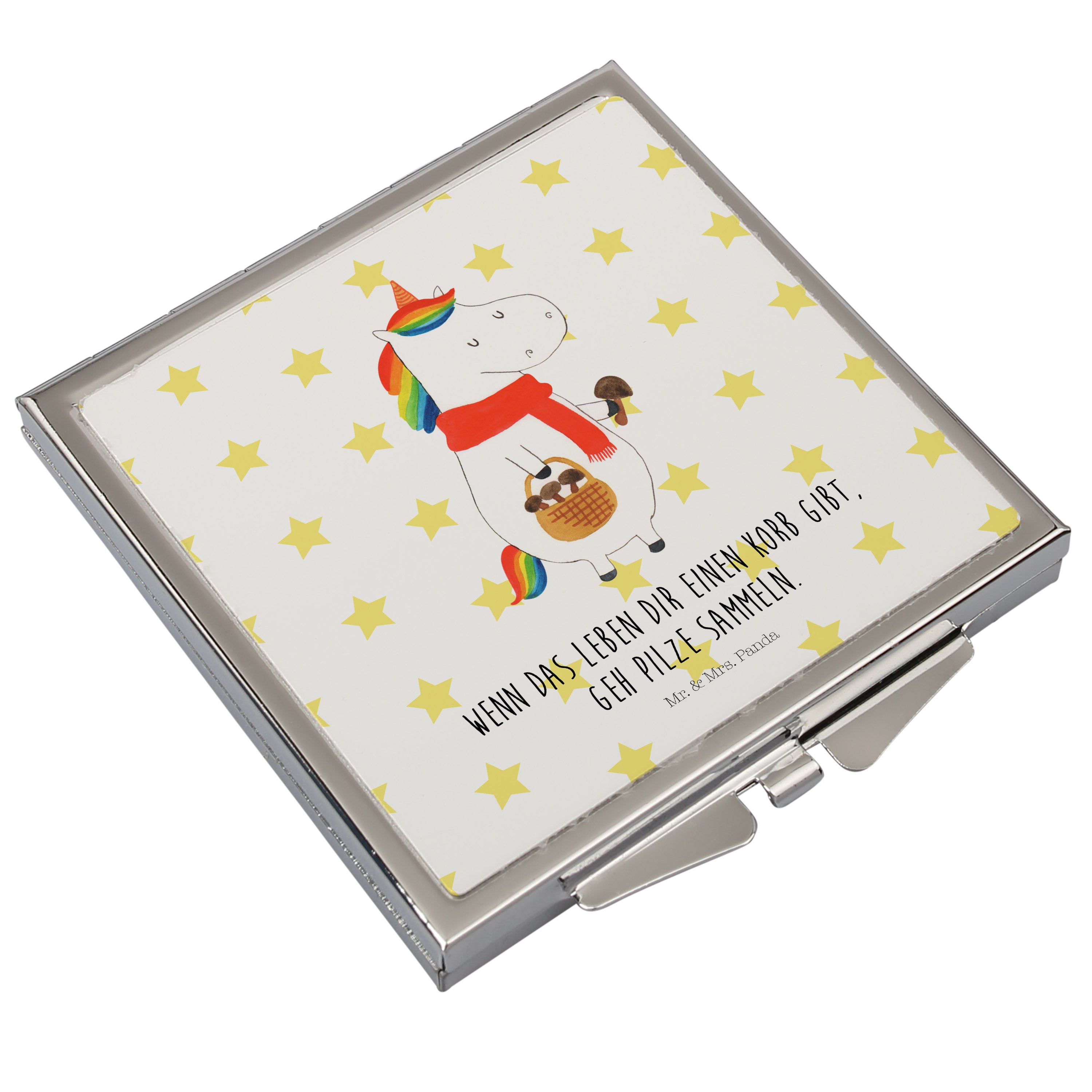 Handtaschenspiegel quadratisch Einhorn Pilz - mit Spruch - Weiß