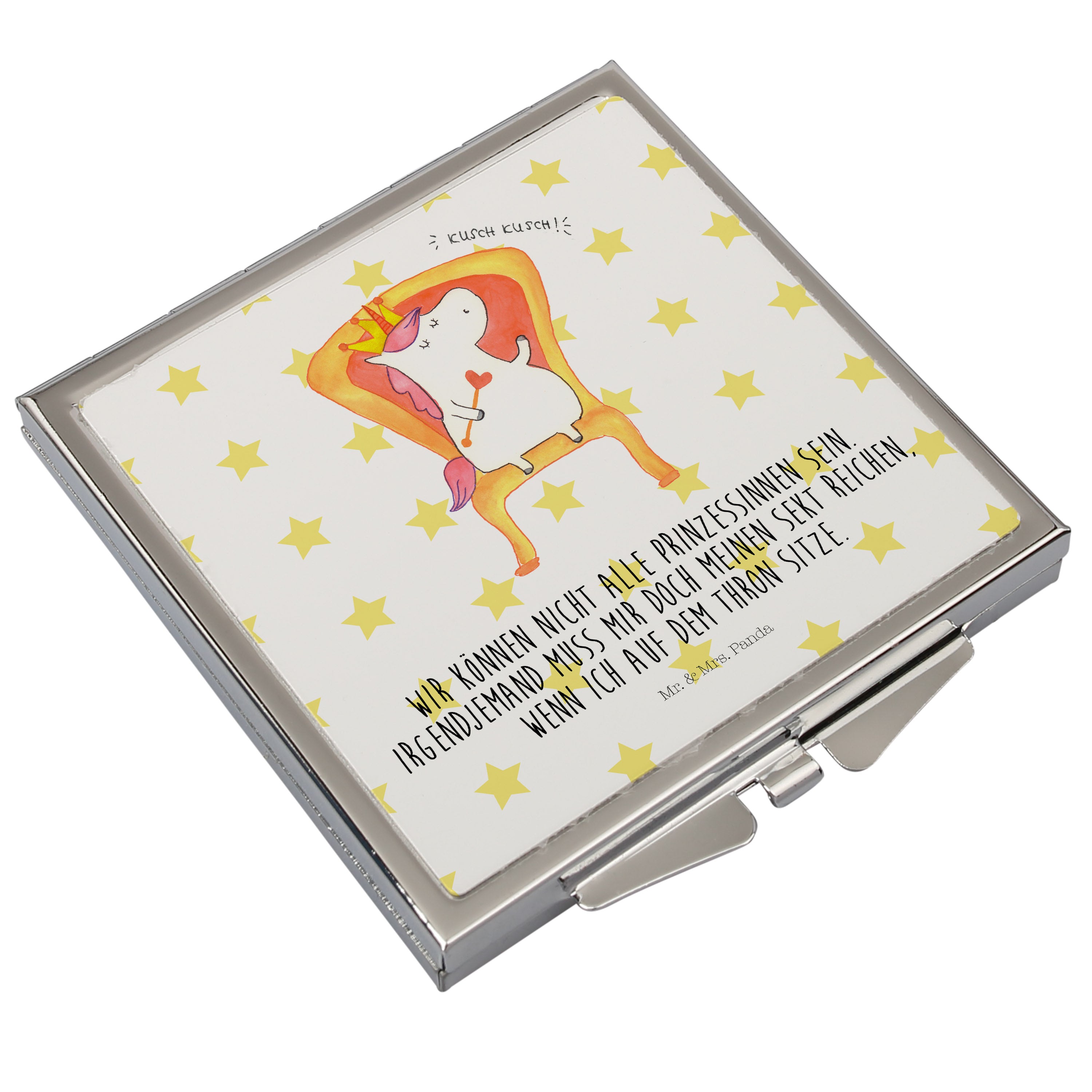Handtaschenspiegel quadratisch Einhorn Prinzessin - mit Spruch - Weiß