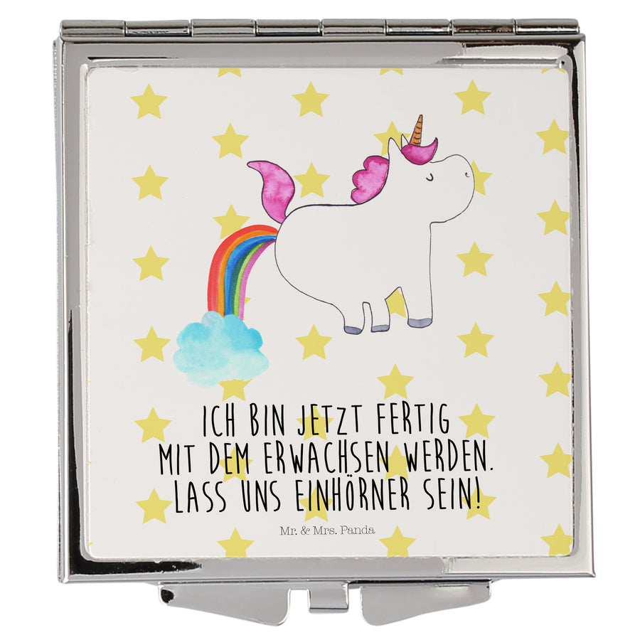Handtaschenspiegel quadratisch Einhorn Pupsend - mit Spruch - Weiß