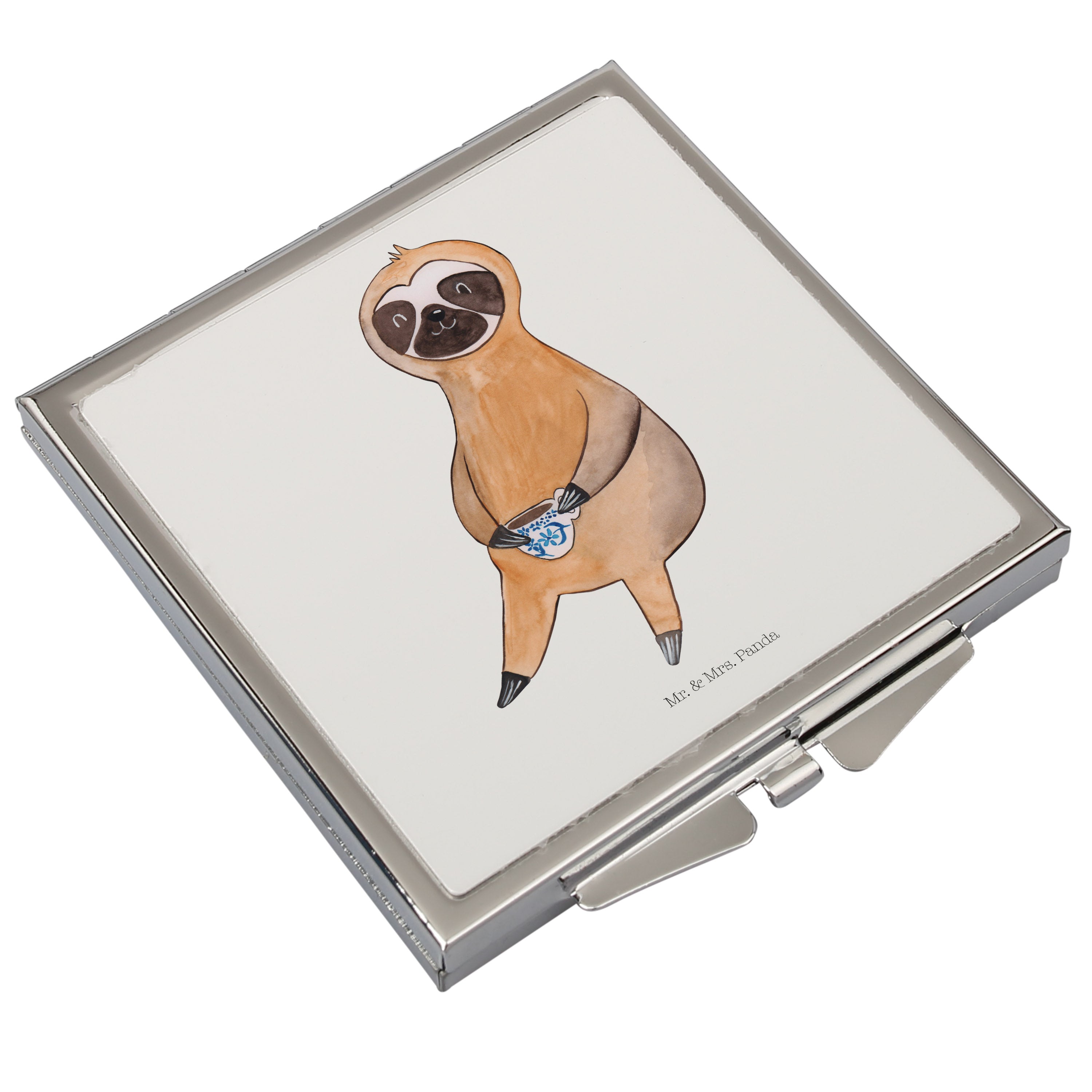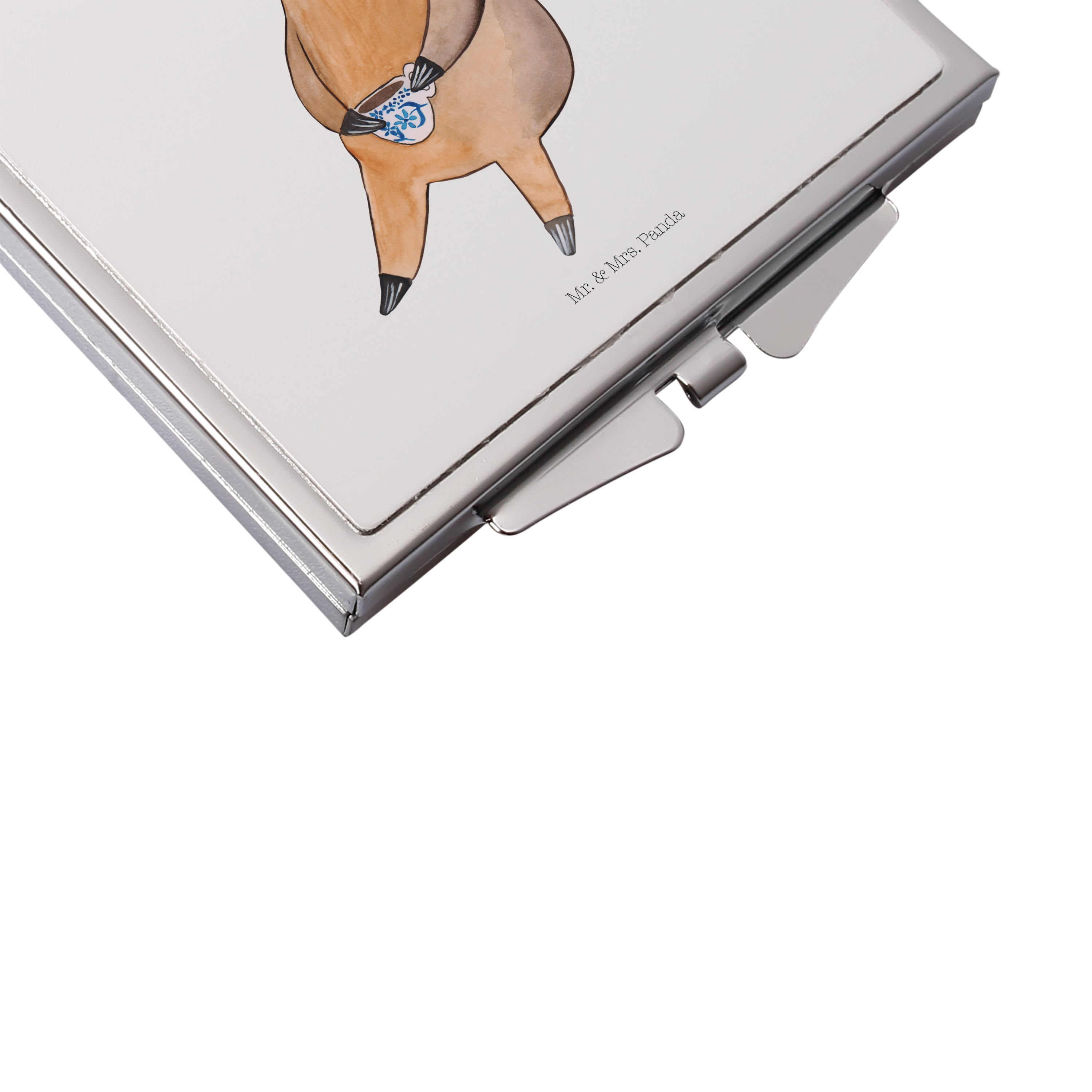 Handtaschenspiegel quadratisch Faultier Kaffee Spiegel, Handtasche, Quadrat, silber, schminken, Schminkspiegel, Faultier, Faultier Geschenk, Faultier Deko, Faultiere, faul, Lieblingstier, Kaffee, erster Kaffee, Morgenmuffel, Frühaufsteher, Kaffeetasse, Genießer, Coffee, Kaffeegetränk