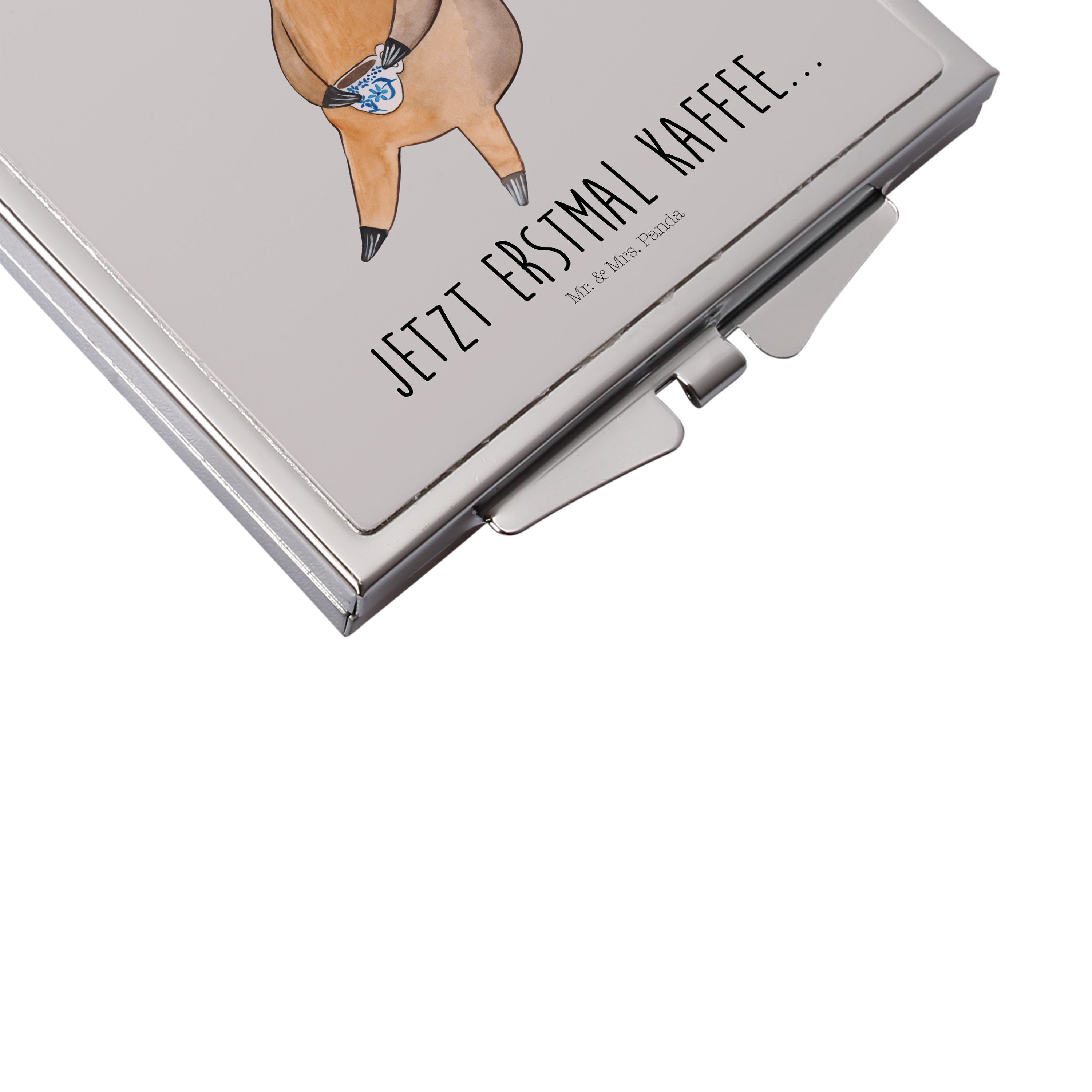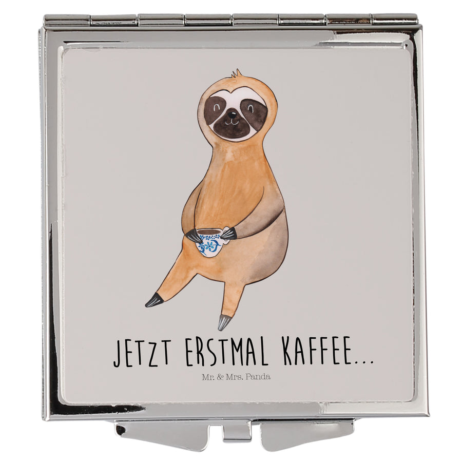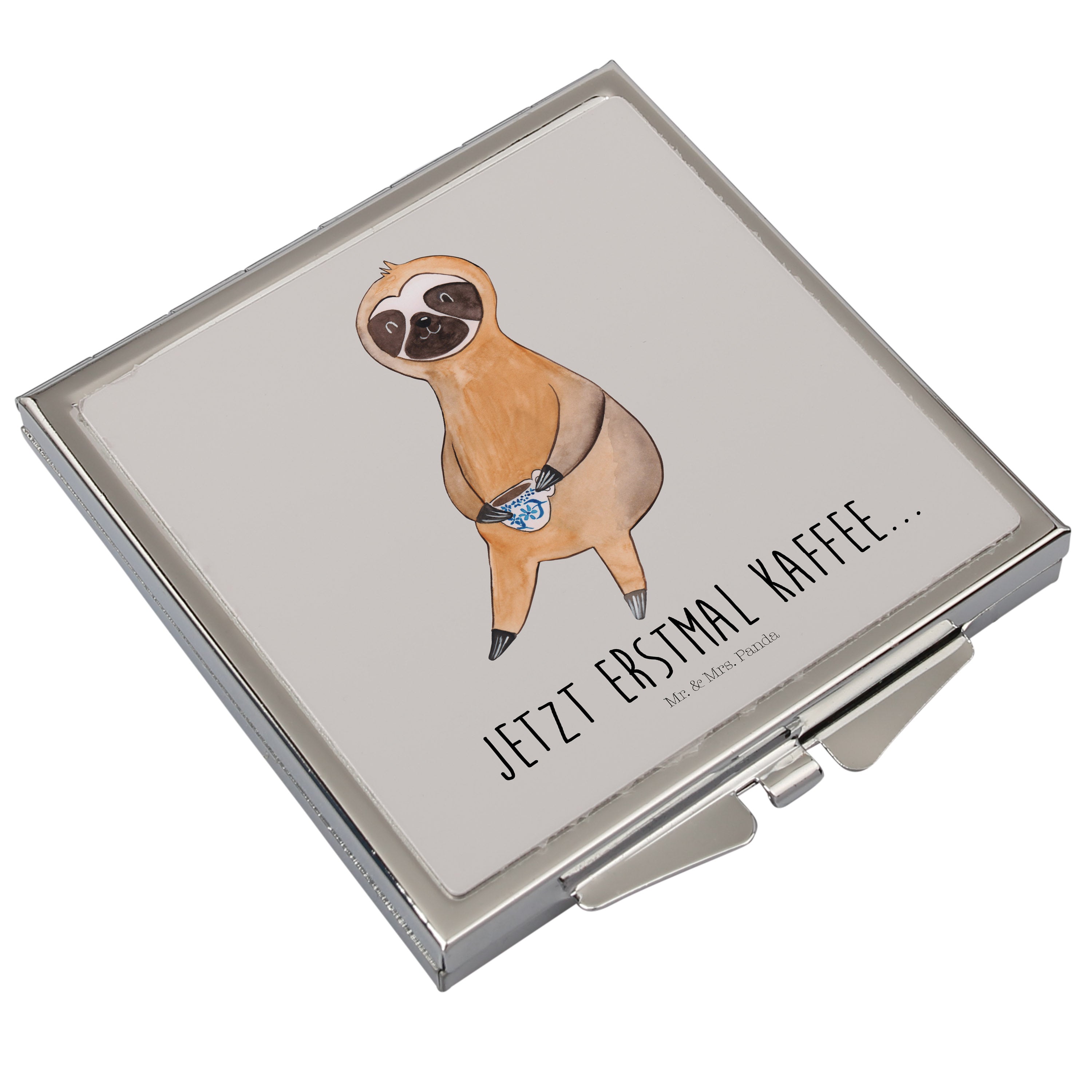 Handtaschenspiegel quadratisch Faultier Kaffee - mit Spruch - Grau Pastell