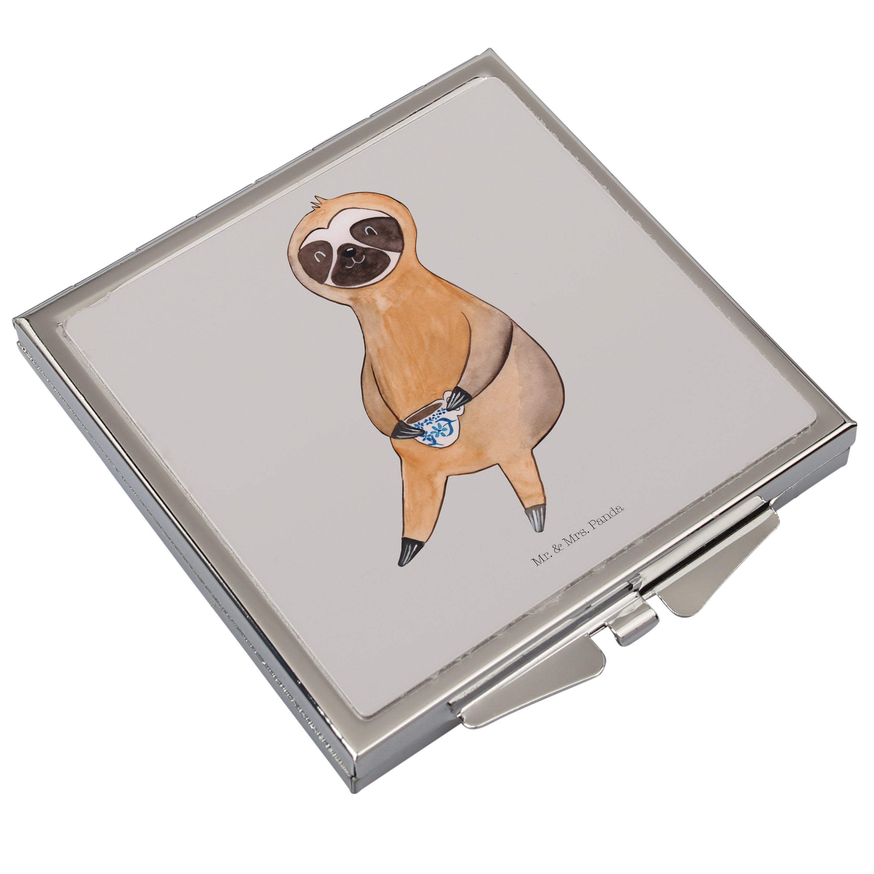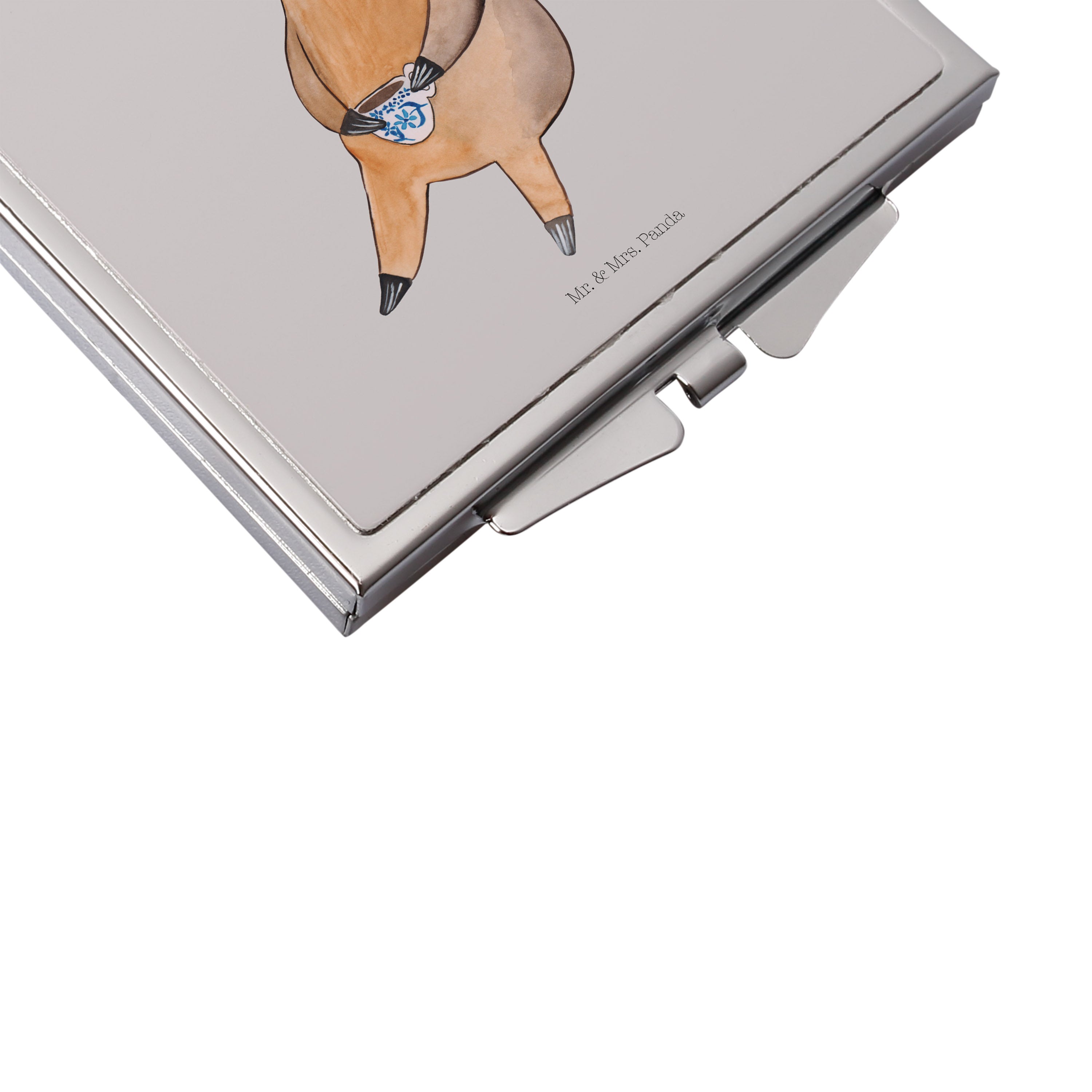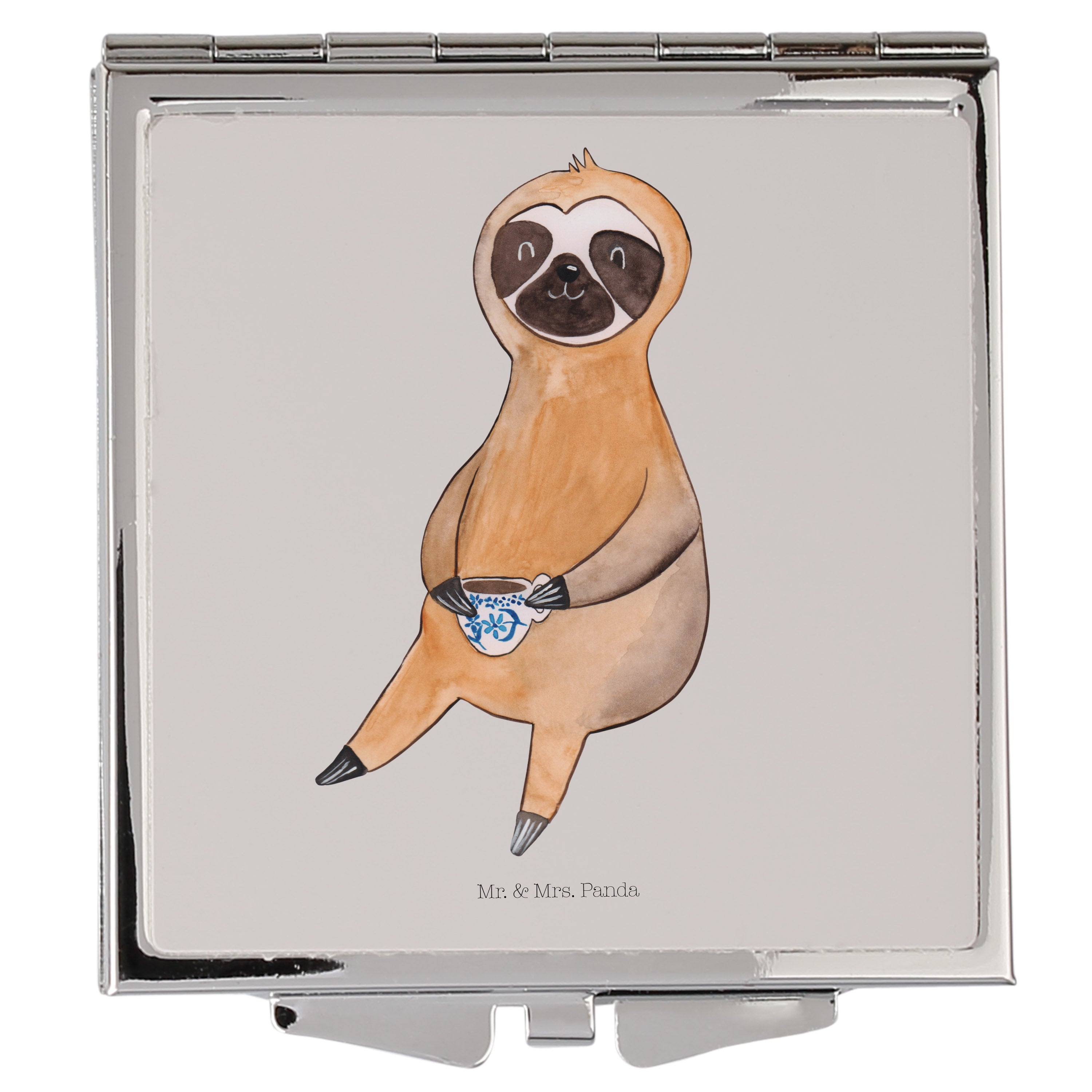 Handtaschenspiegel quadratisch Faultier Kaffee - mit Spruch - Grau Pastell