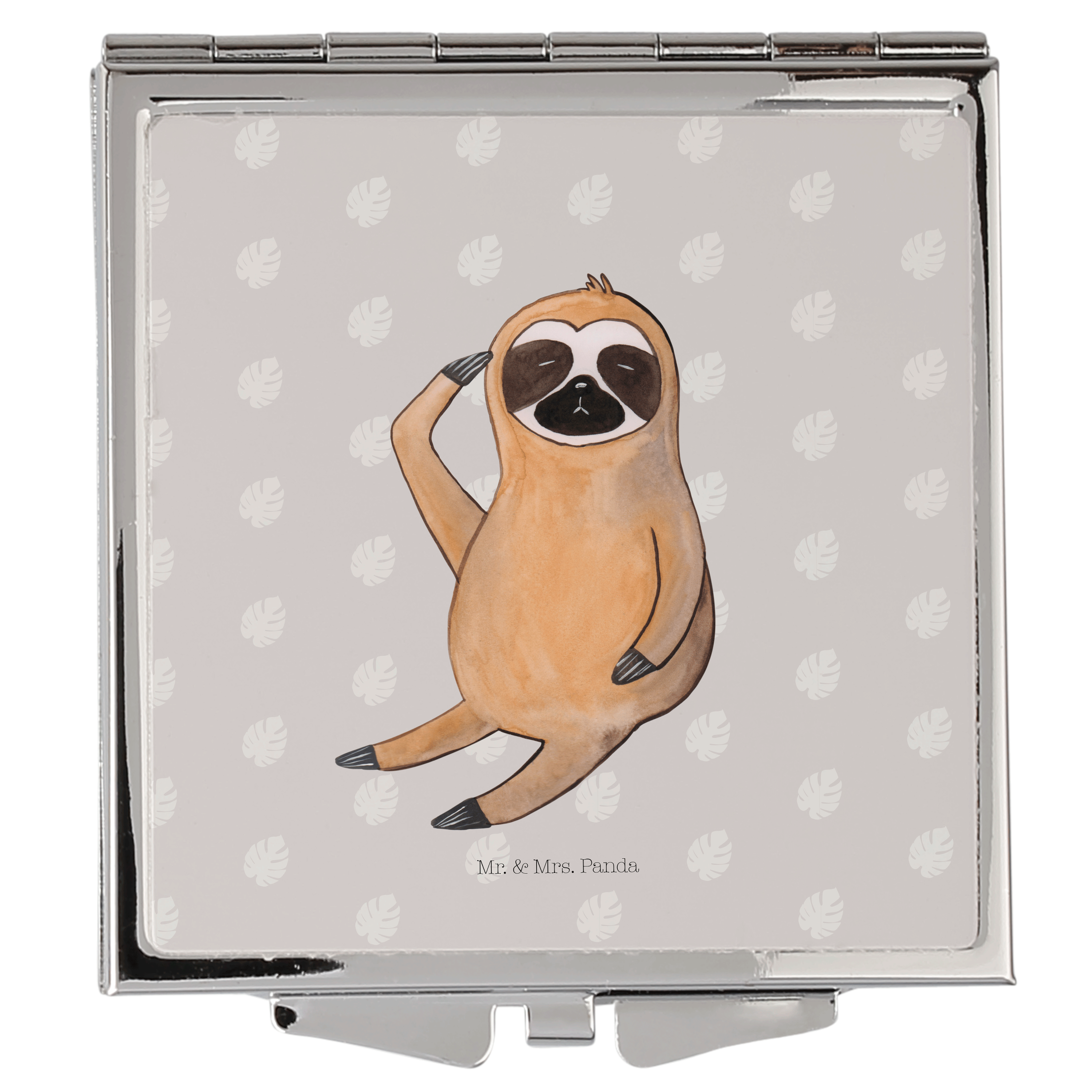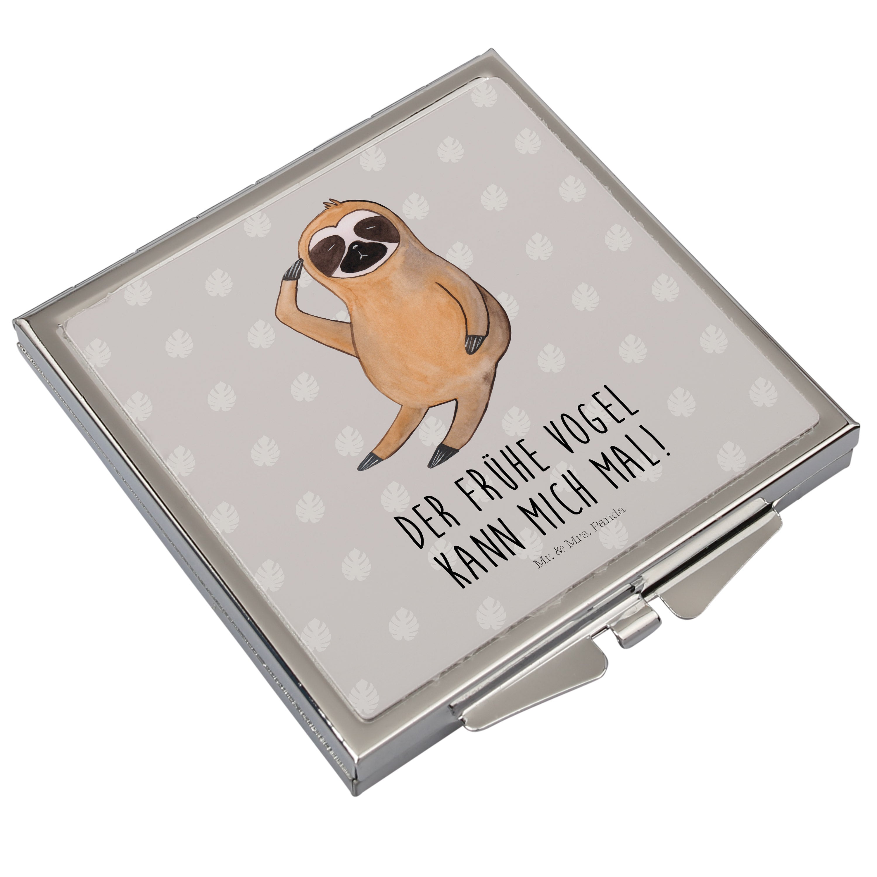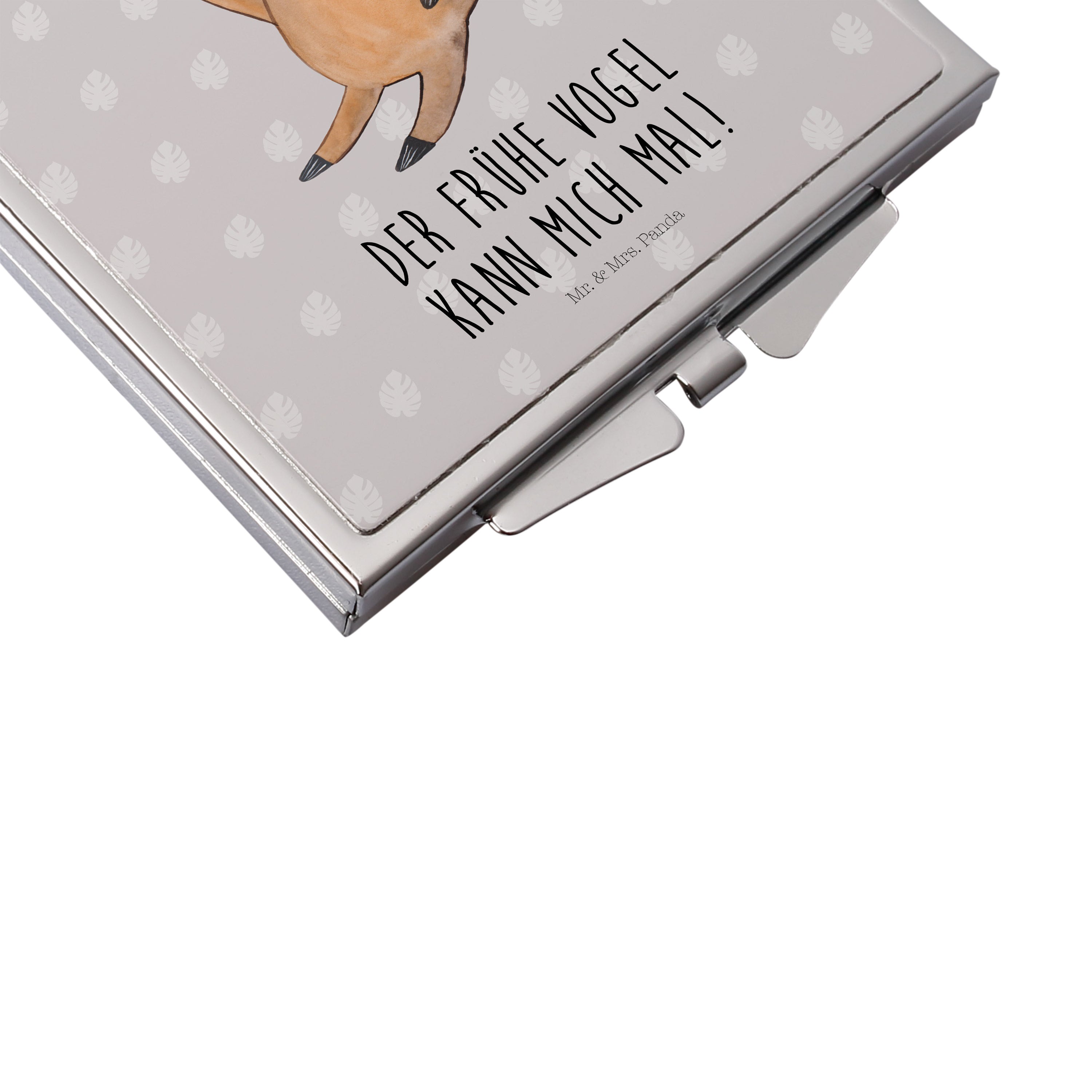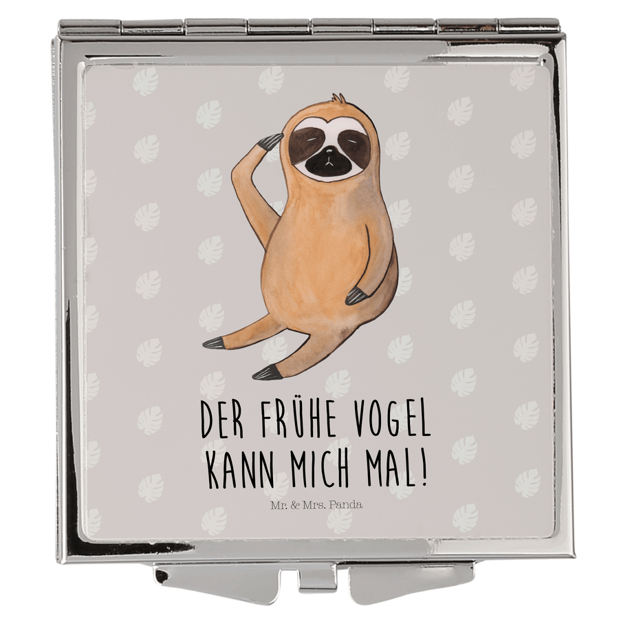 Handtaschenspiegel quadratisch Faultier Vogel zeigen - mit Spruch - Grau Pastell