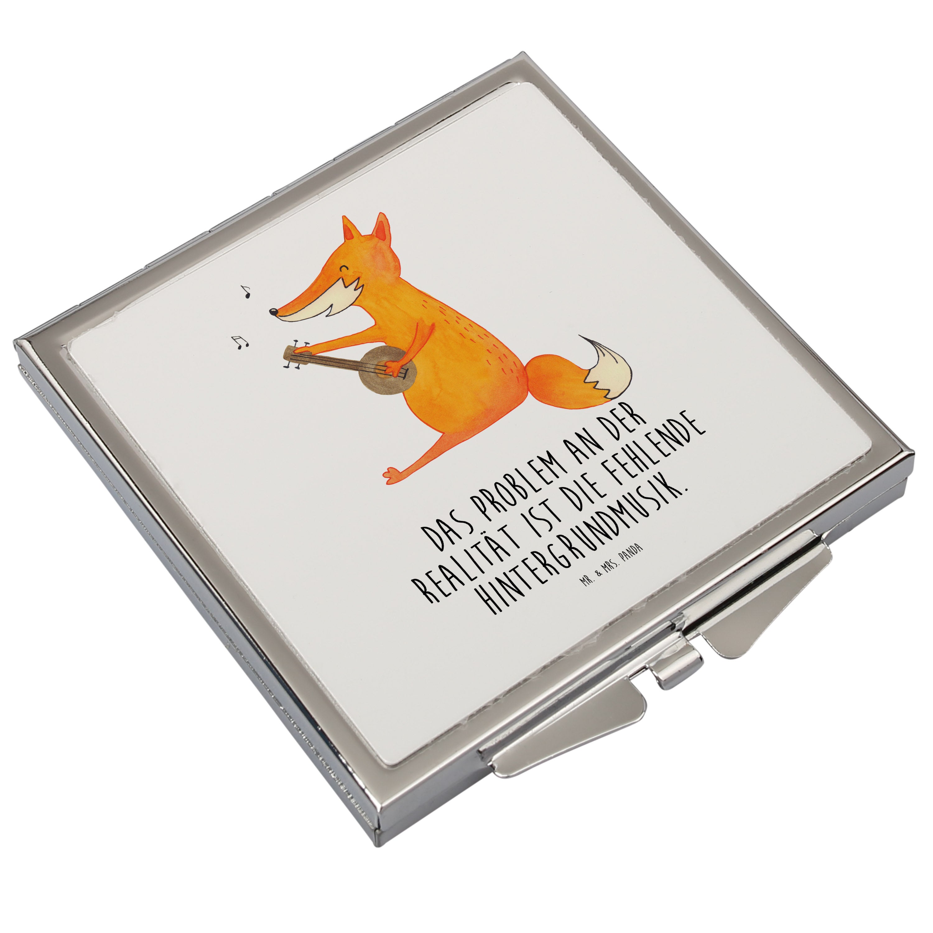 Handtaschenspiegel quadratisch Fuchs Gitarre Spiegel, Handtasche, Quadrat, silber, schminken, Schminkspiegel, Fuchs, Füchse, Geschenk Musiker, Musik Spruch, Musikerin, Sänger, Sängerin, Gitarre