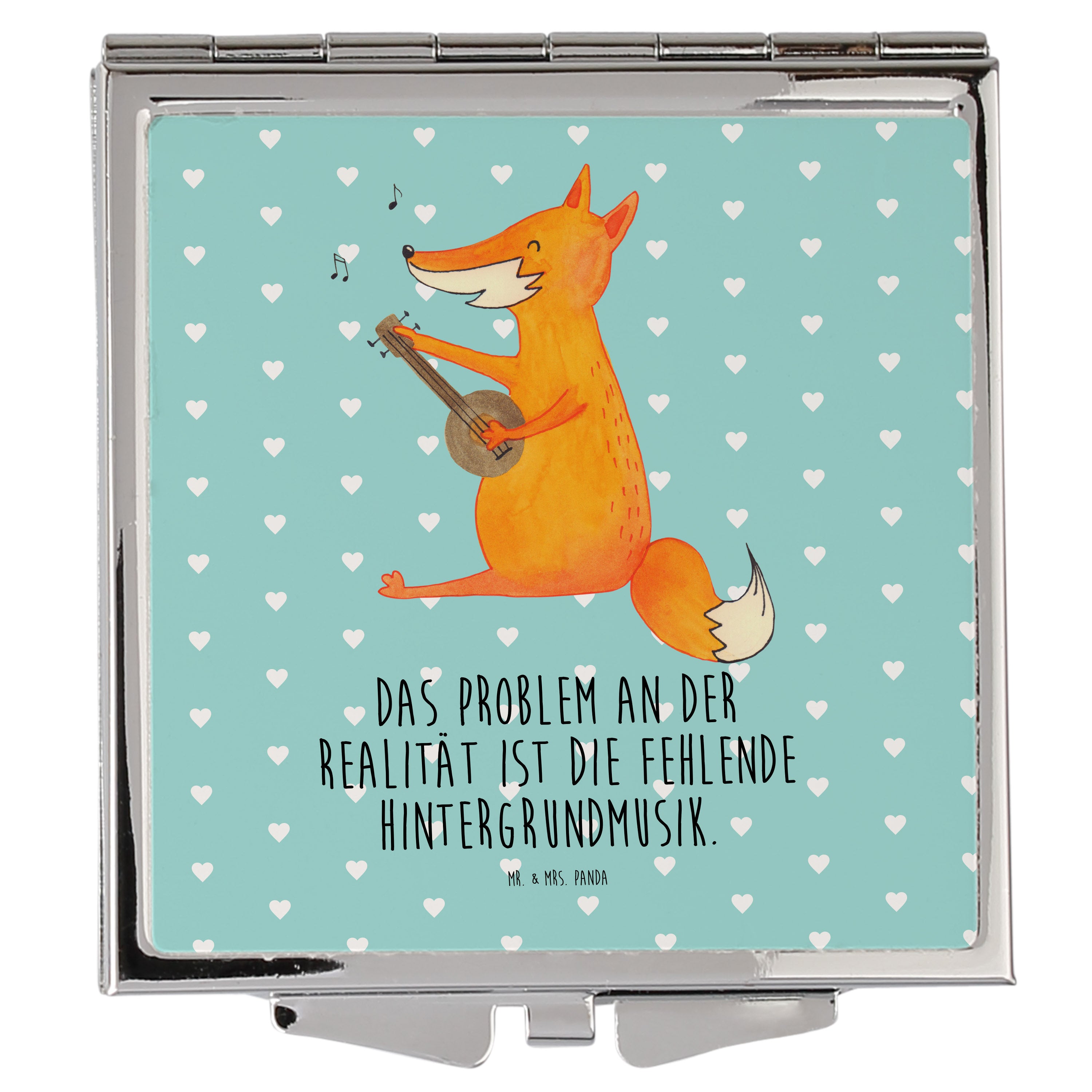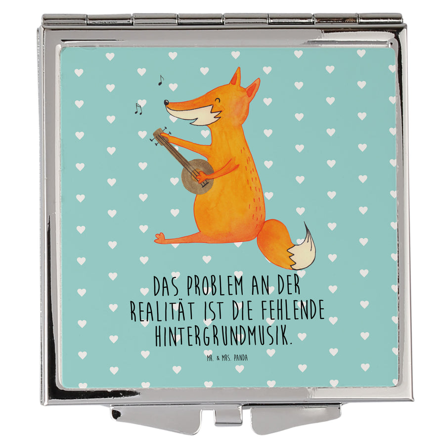 Handtaschenspiegel quadratisch Fuchs Gitarre - mit Spruch - Türkis Pastell