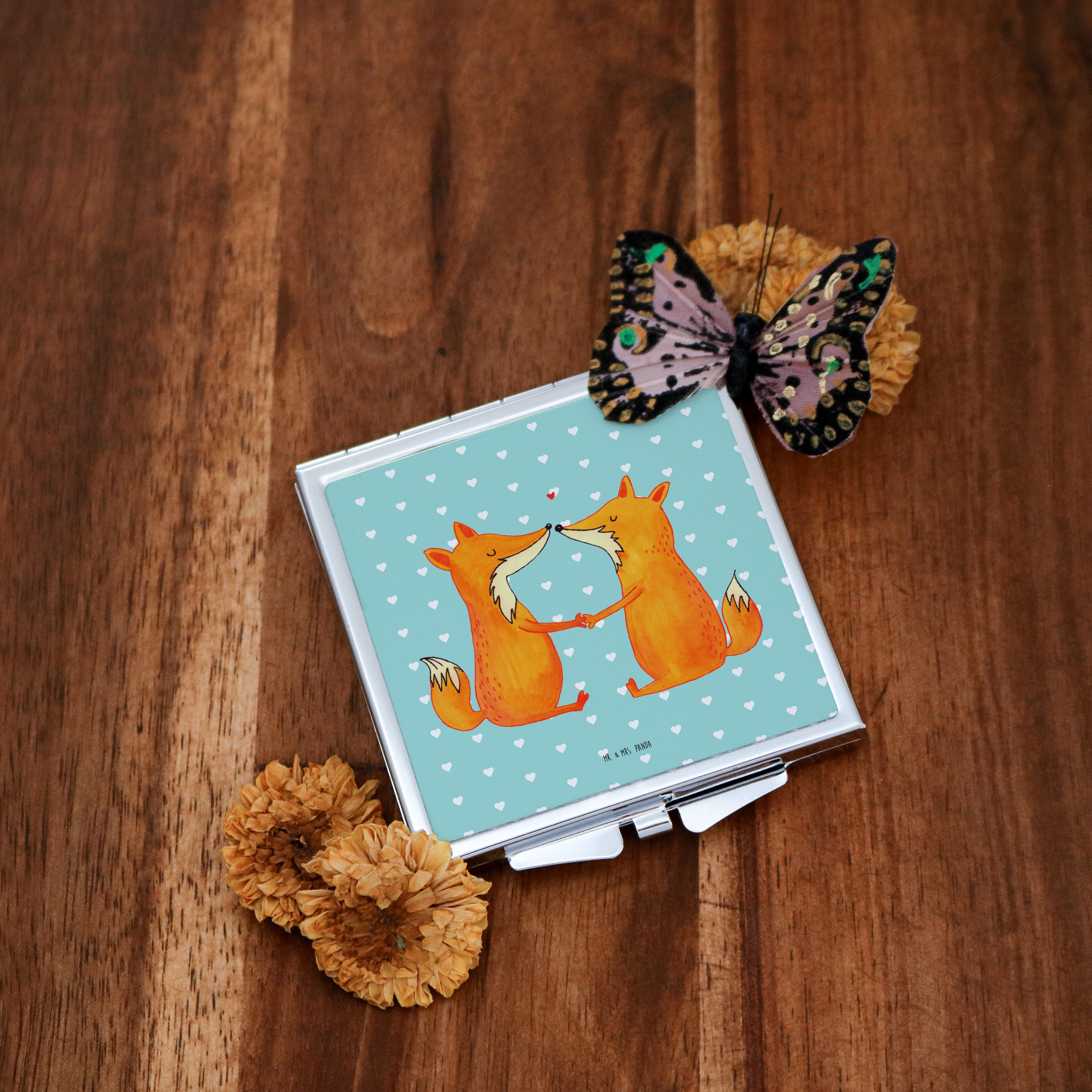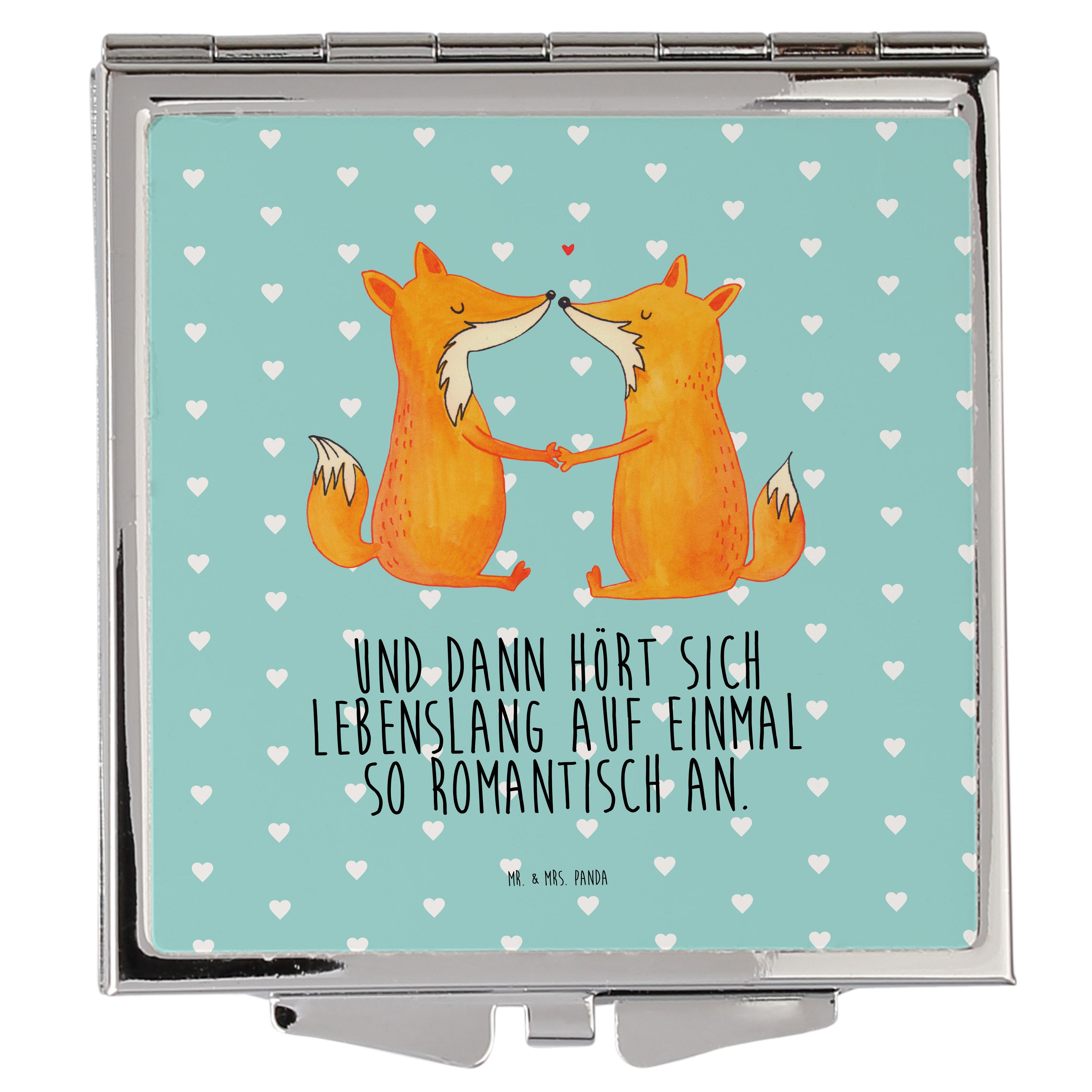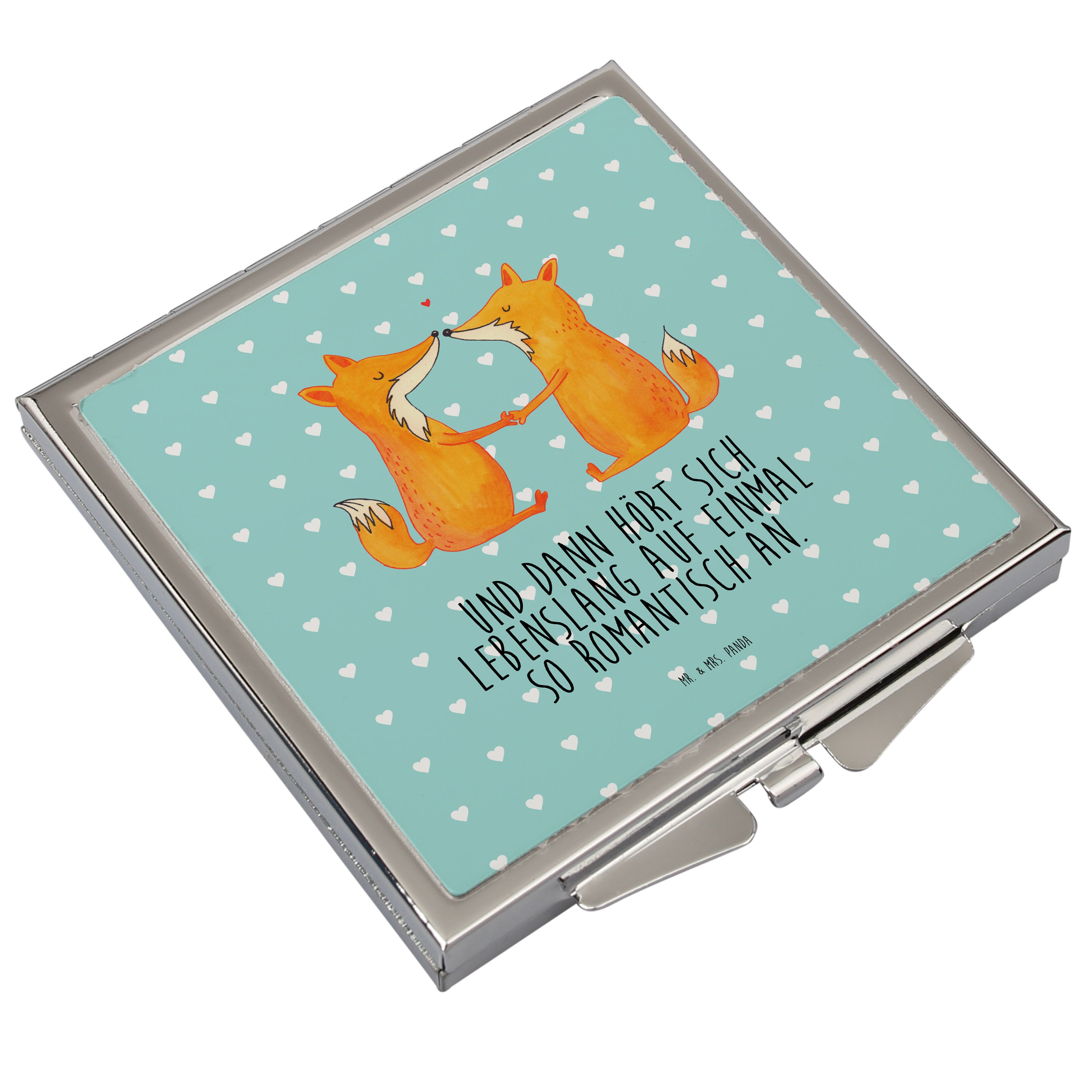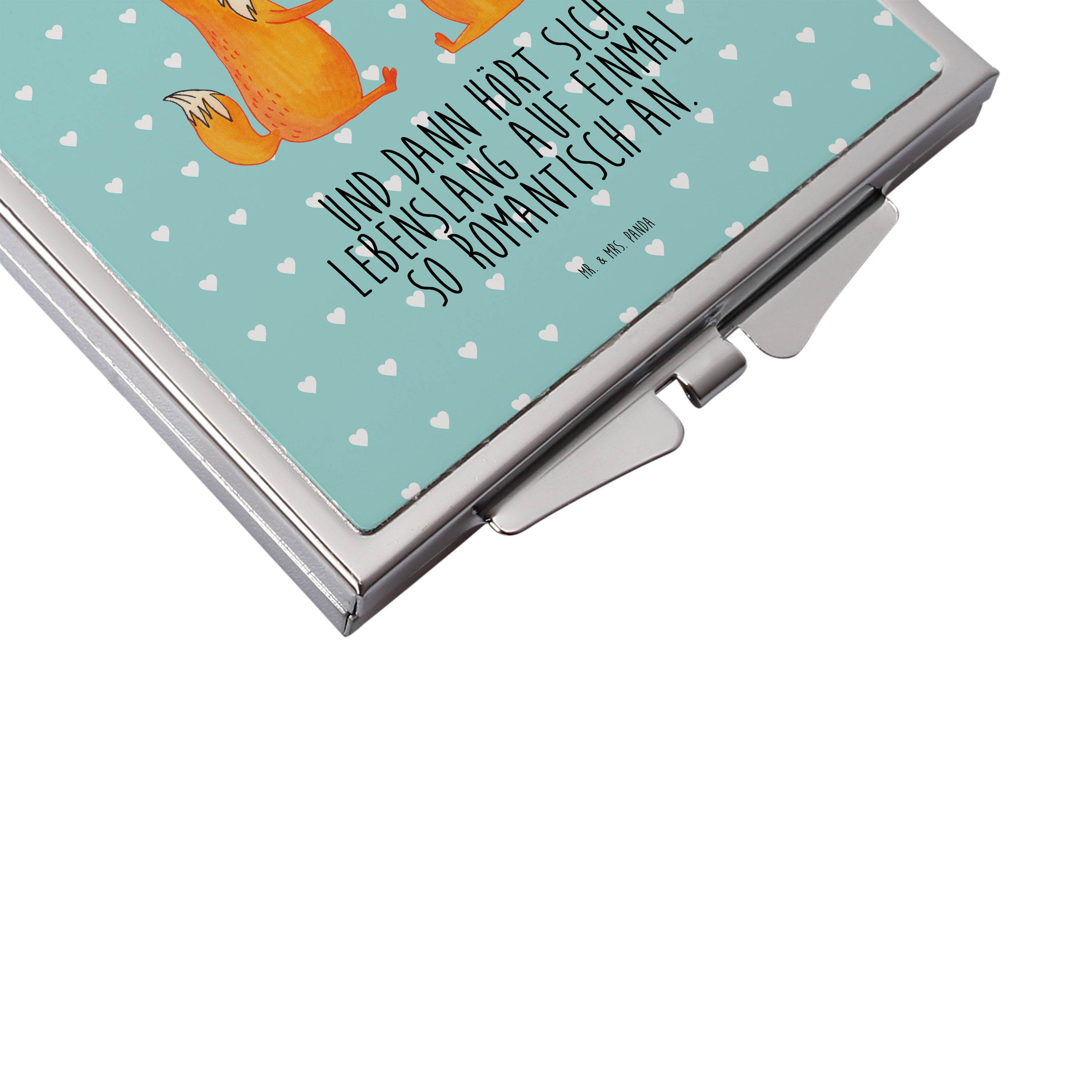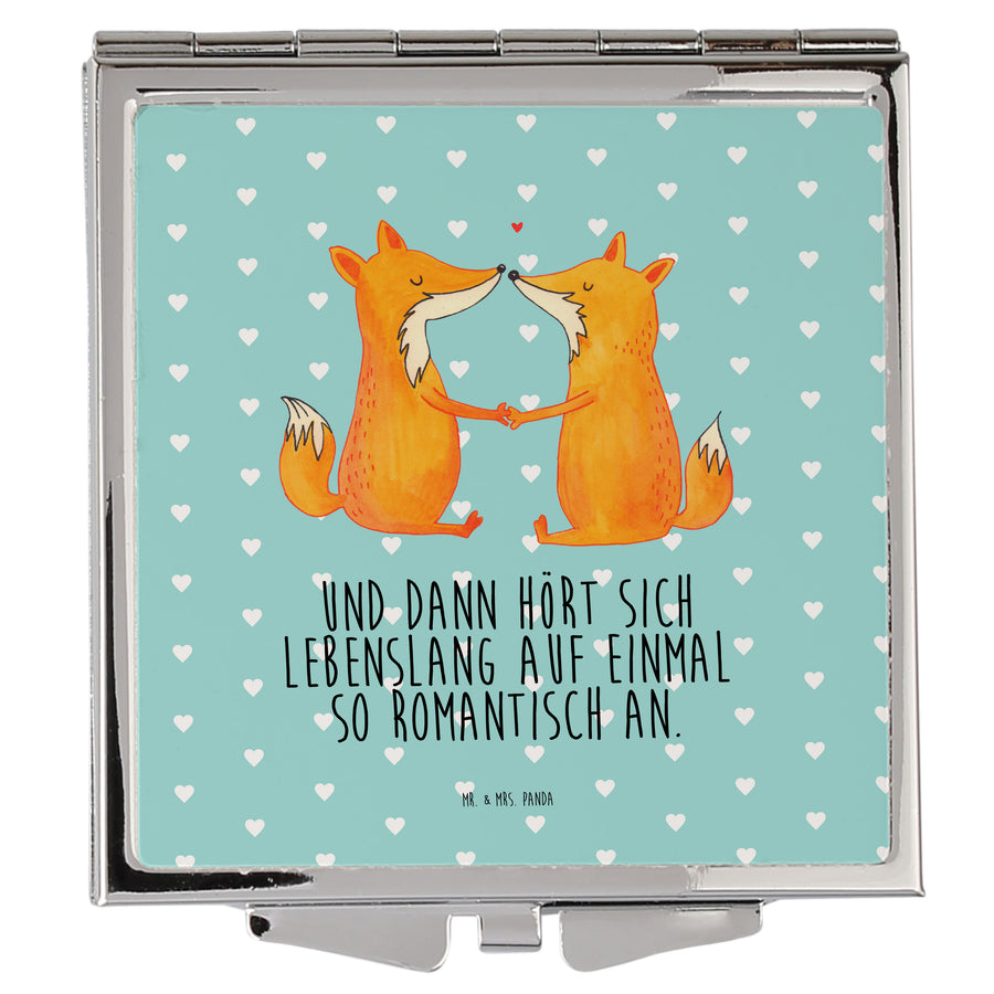 Handtaschenspiegel quadratisch Füchse Liebe - mit Spruch - Türkis Pastell