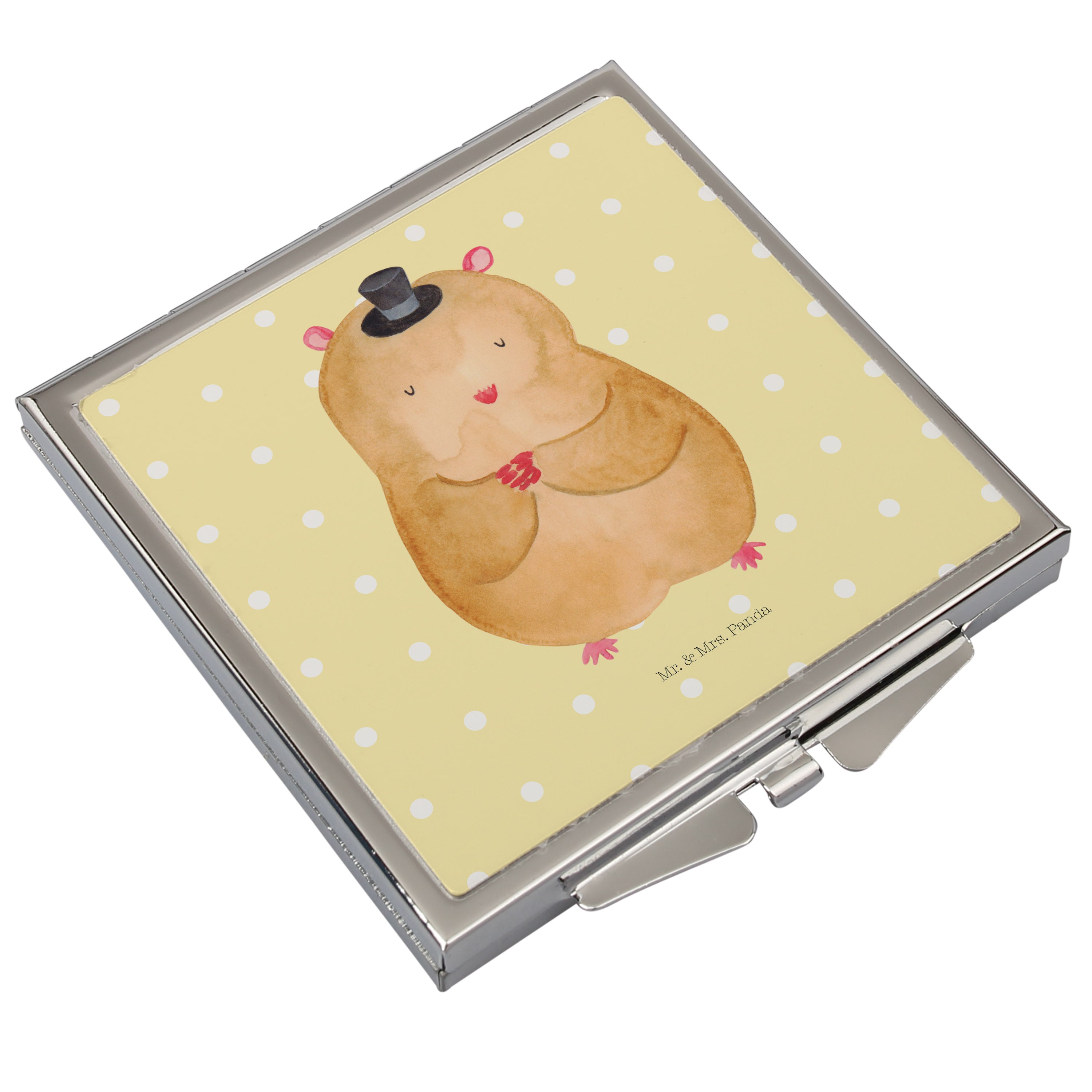 Handtaschenspiegel quadratisch Hamster mit Hut - mit Spruch - Gelb Pastell