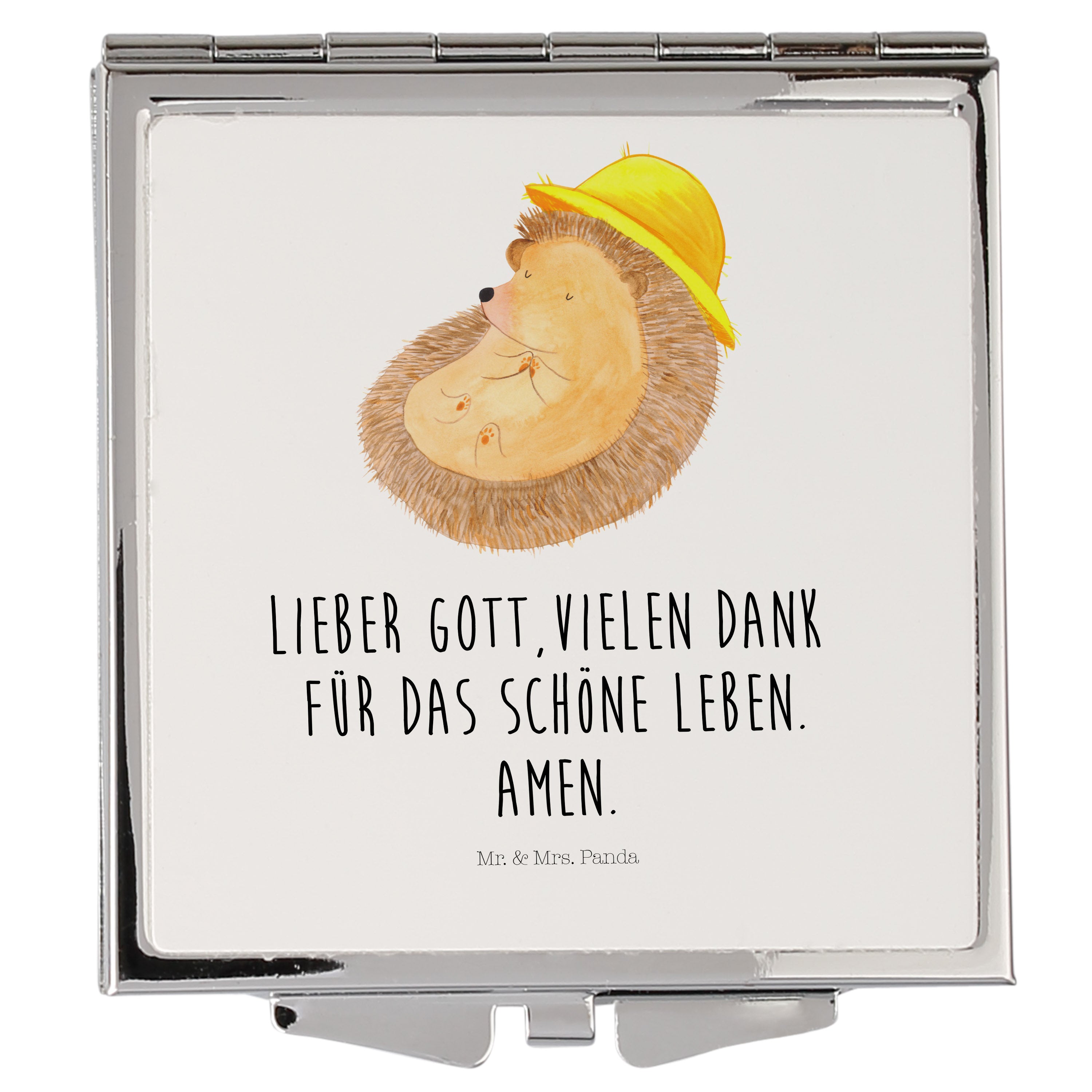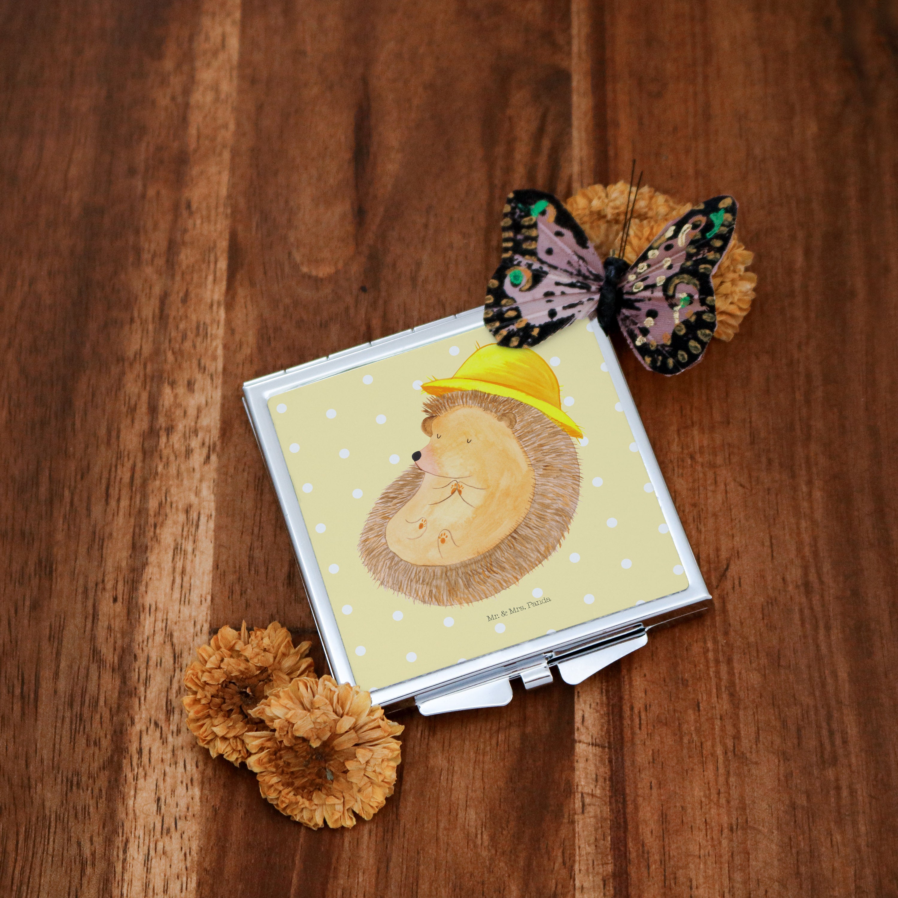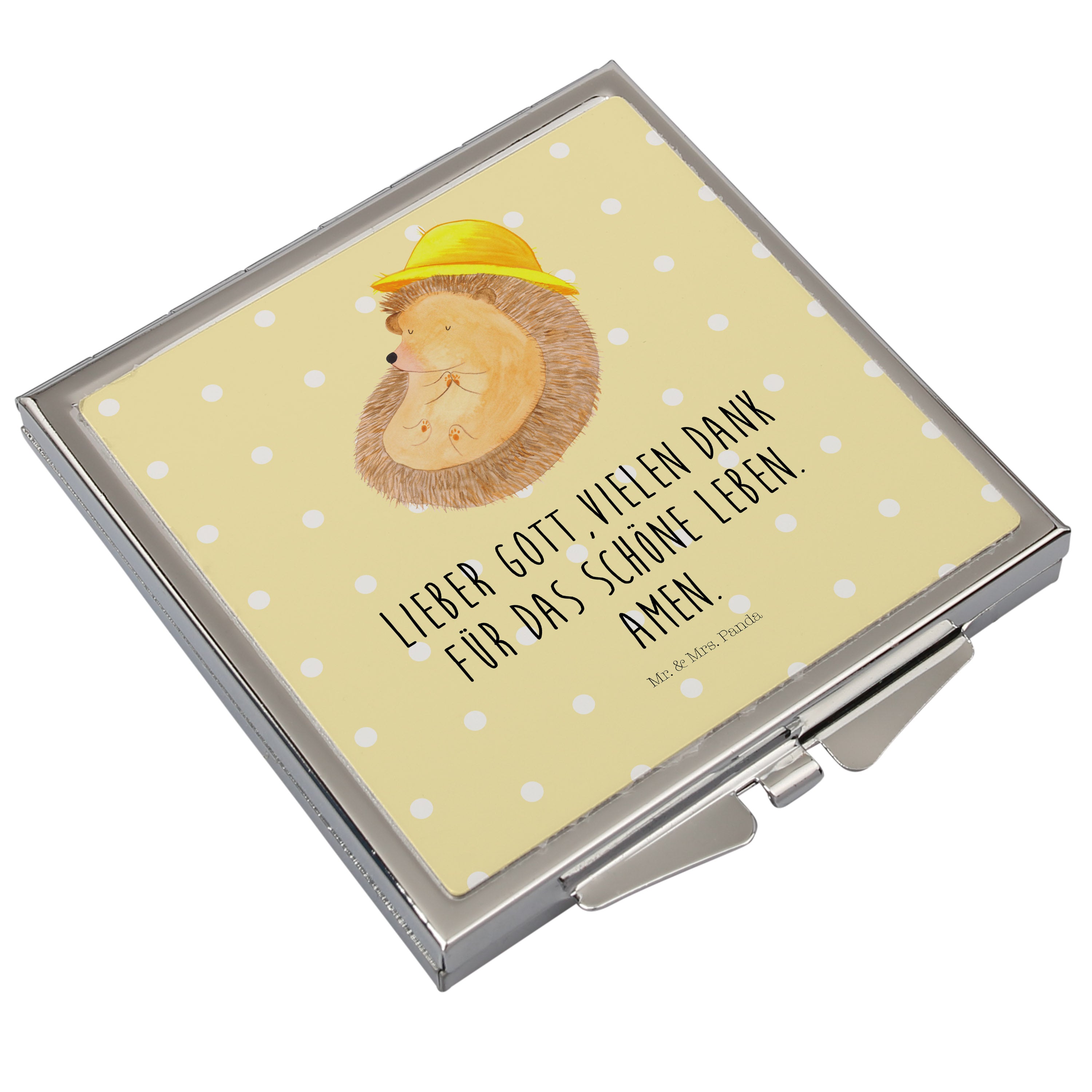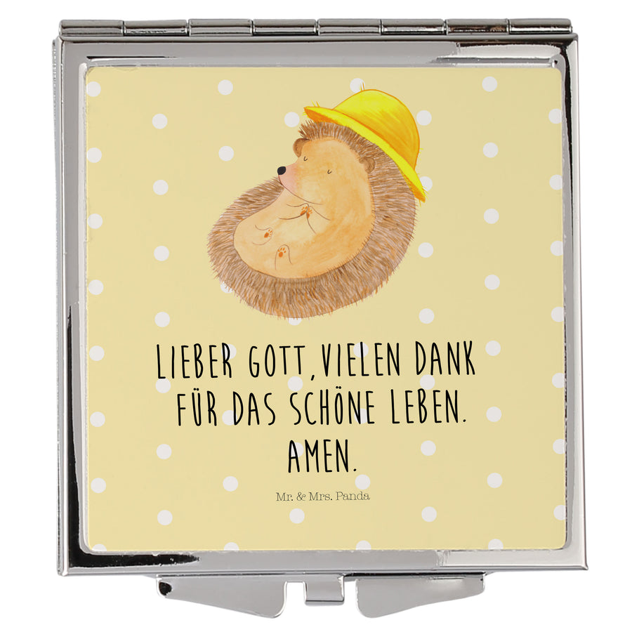 Handtaschenspiegel quadratisch Igel betet - mit Spruch - Gelb Pastell