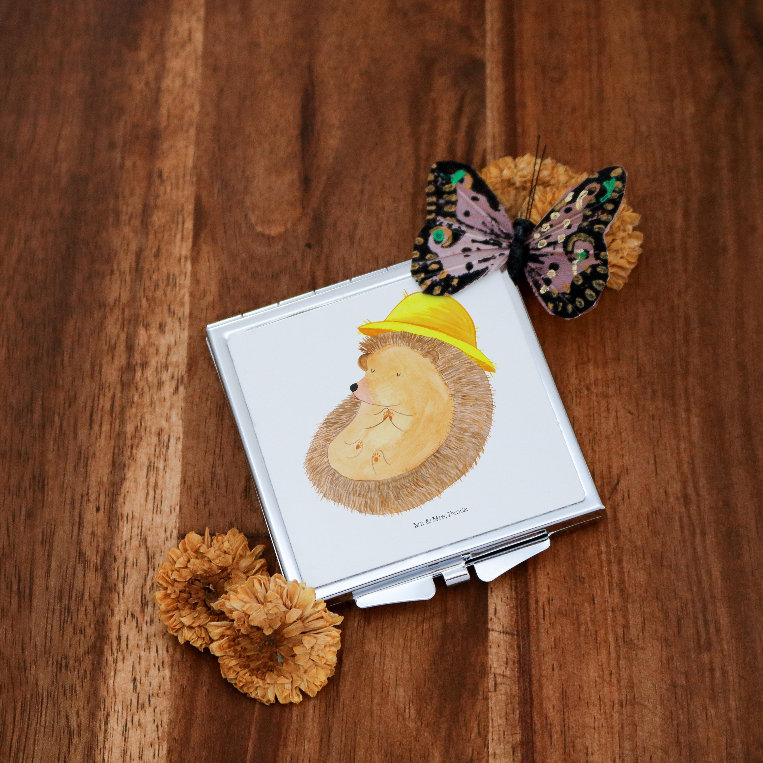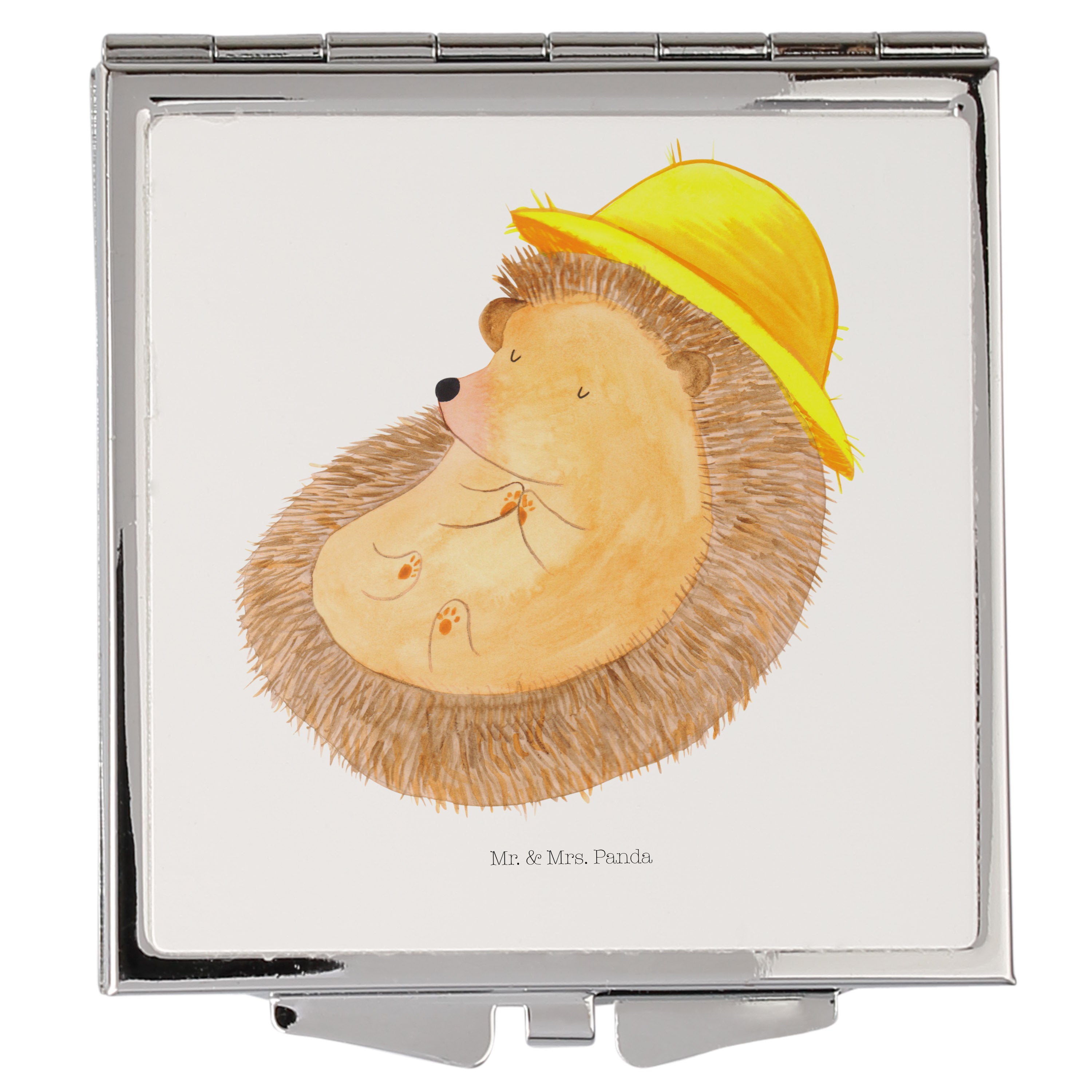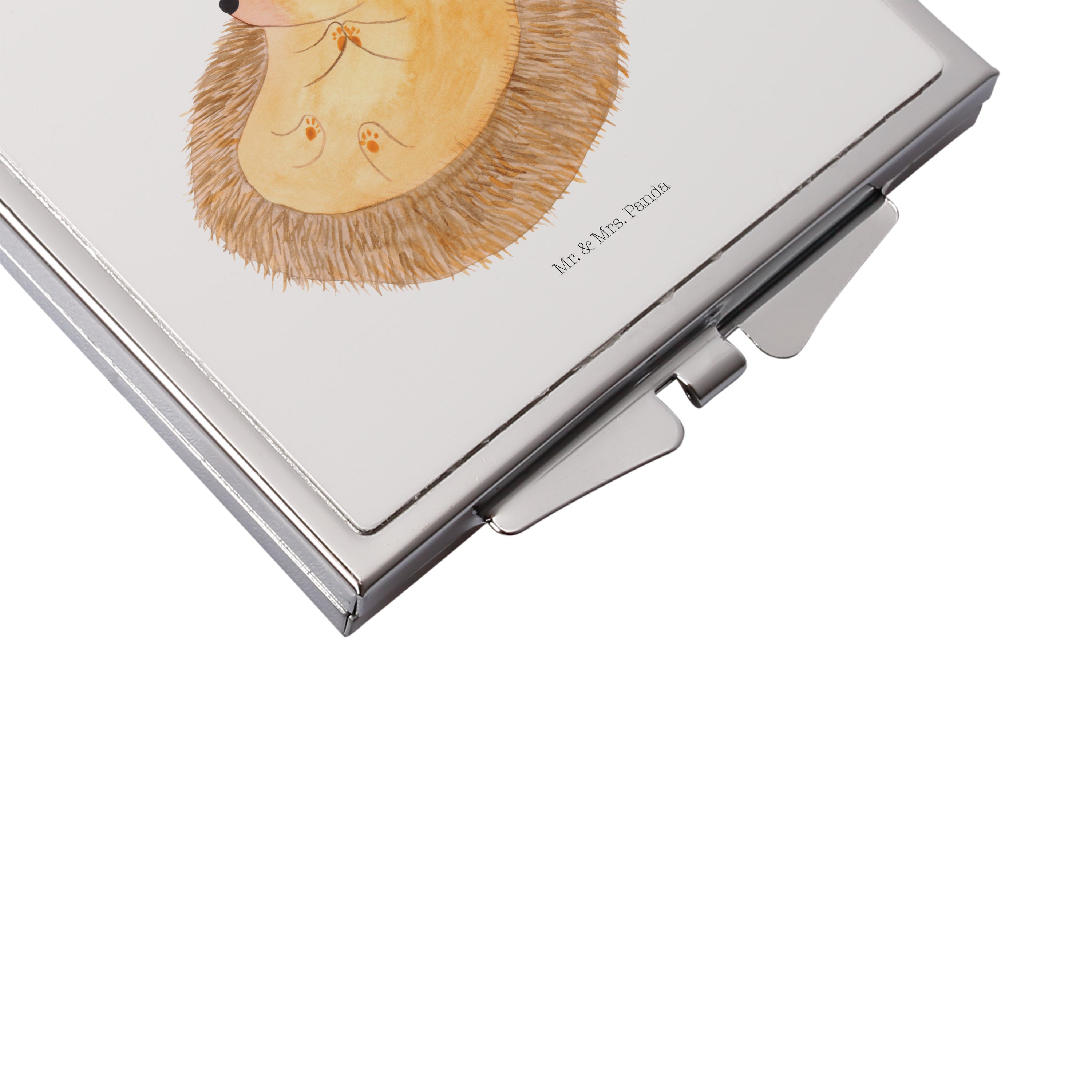 Handtaschenspiegel quadratisch Igel betet - mit Spruch - Gelb Pastell