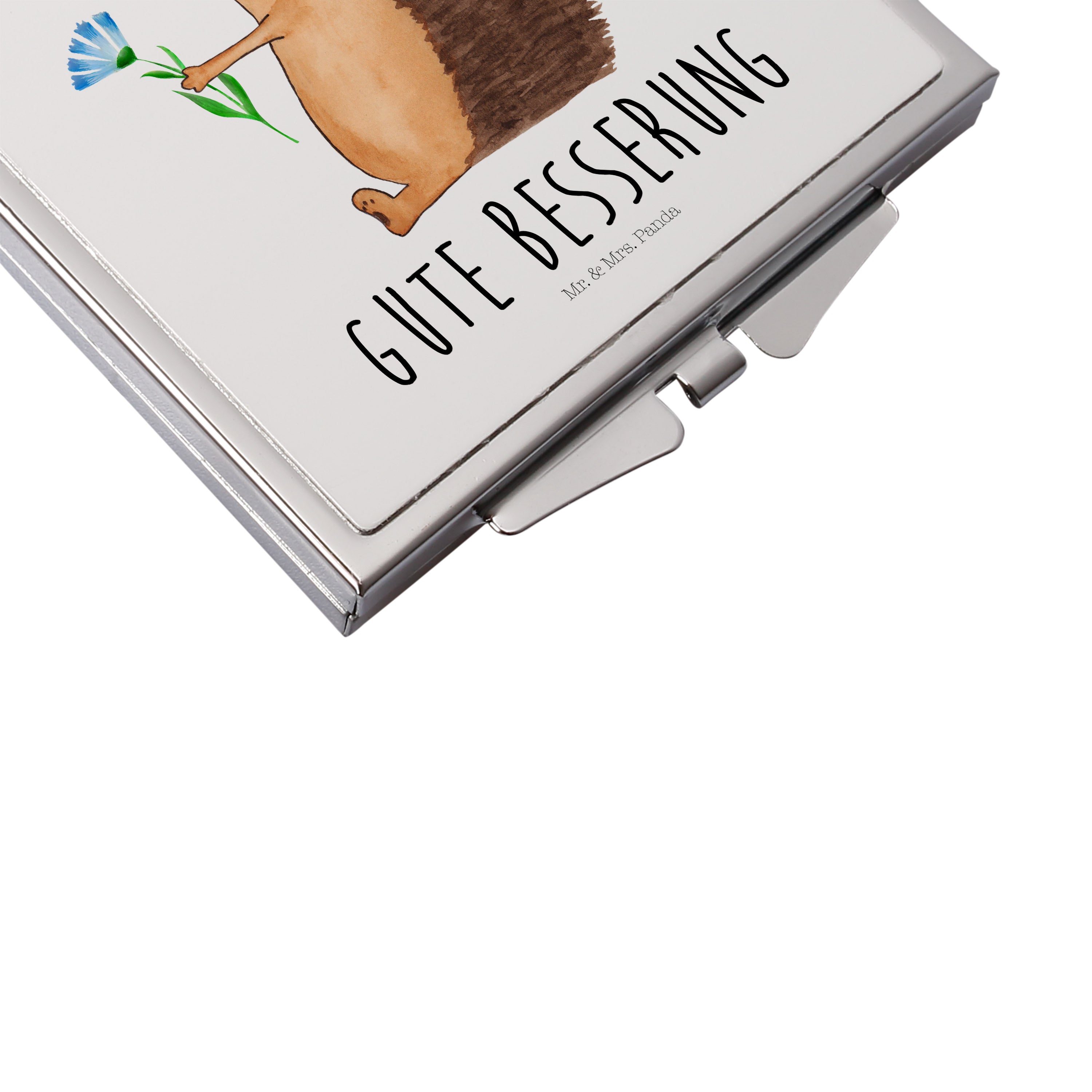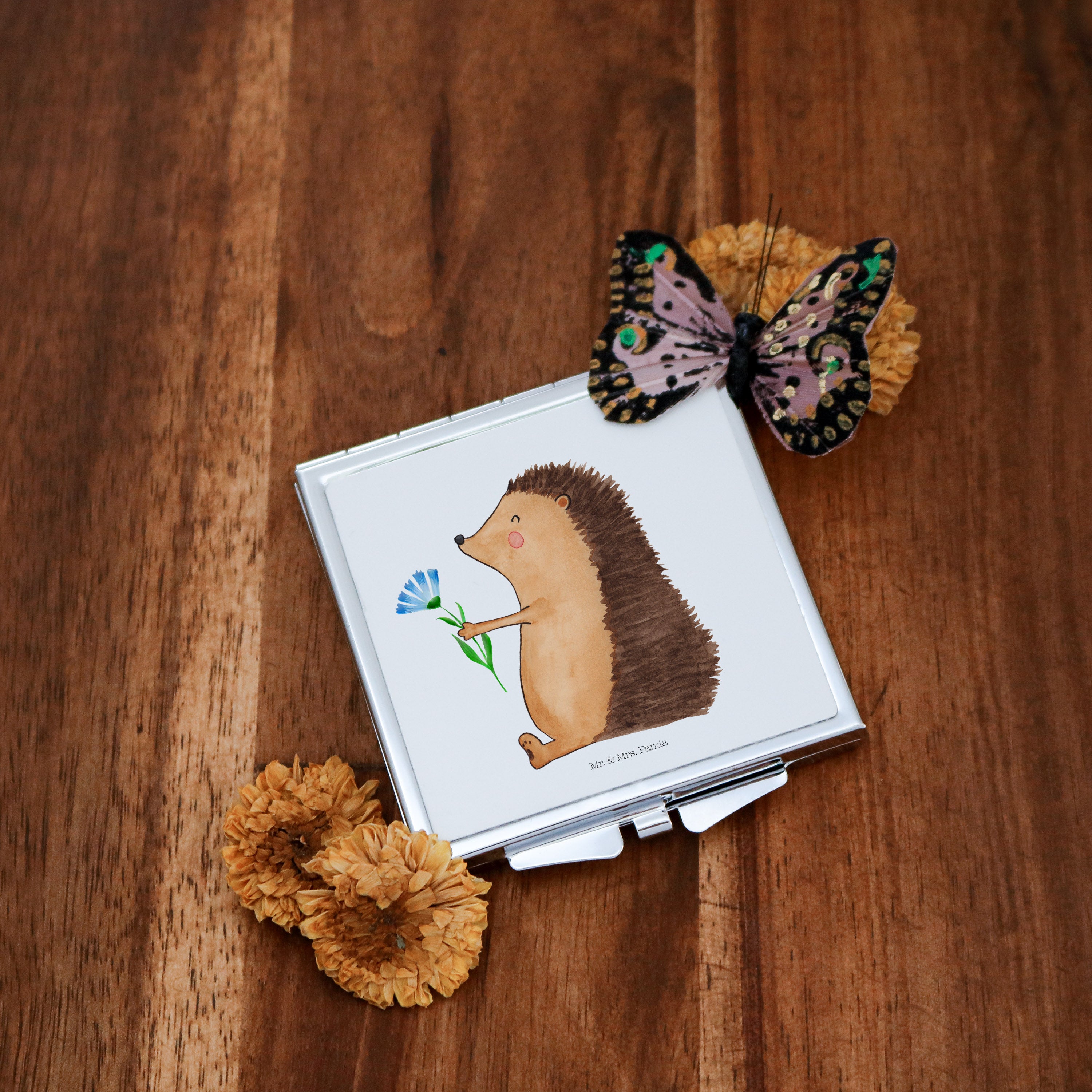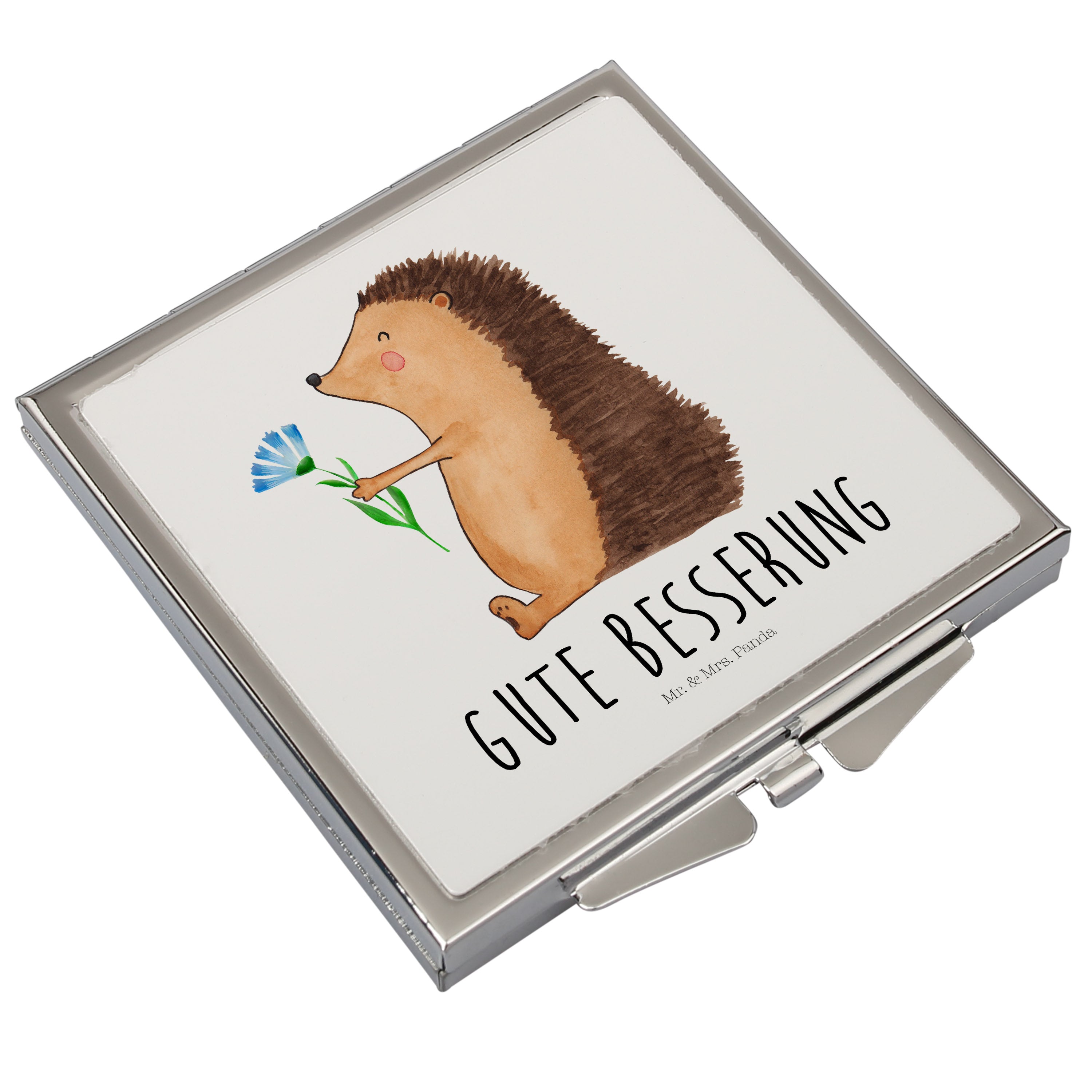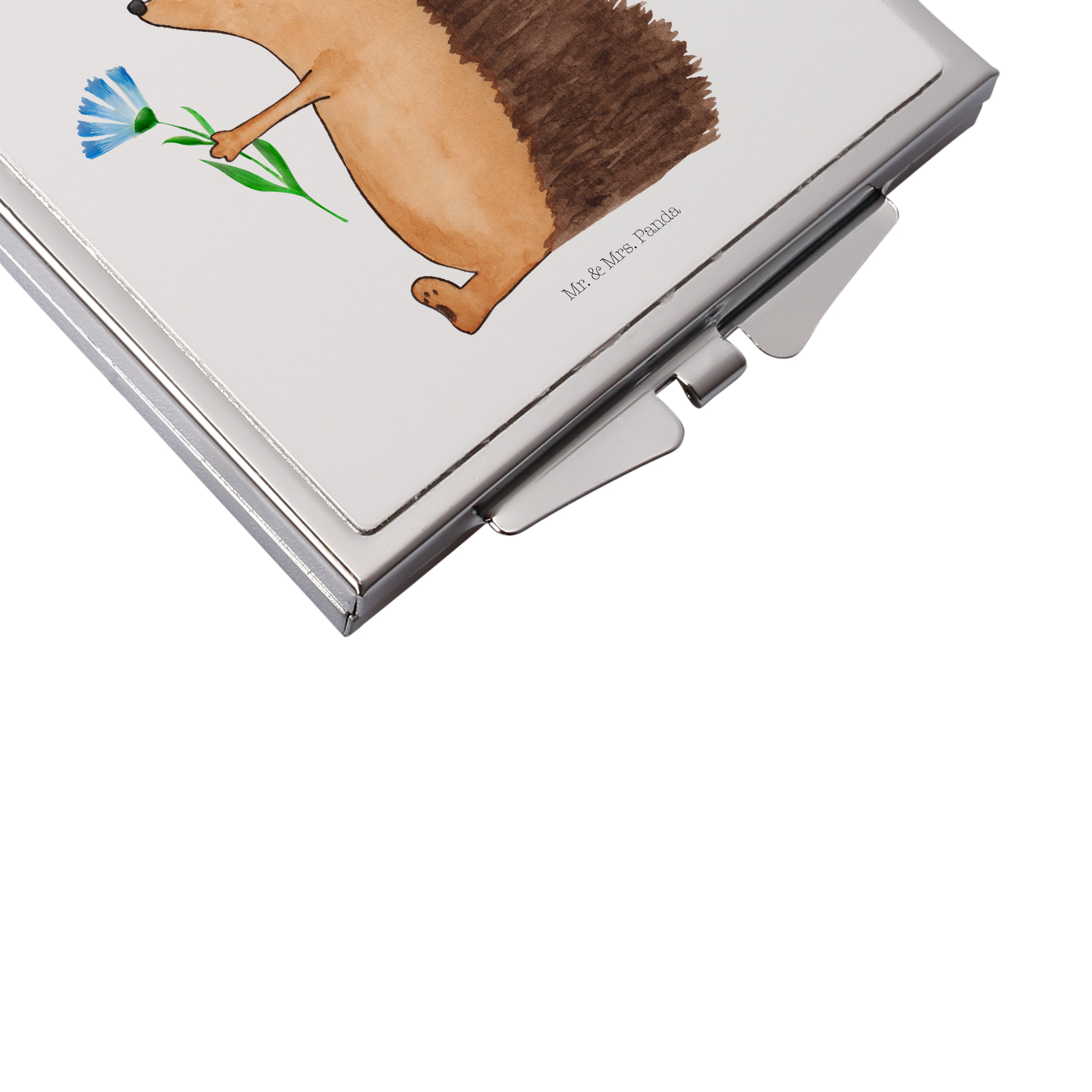 Handtaschenspiegel quadratisch Igel mit Blume - mit Spruch - Weiß
